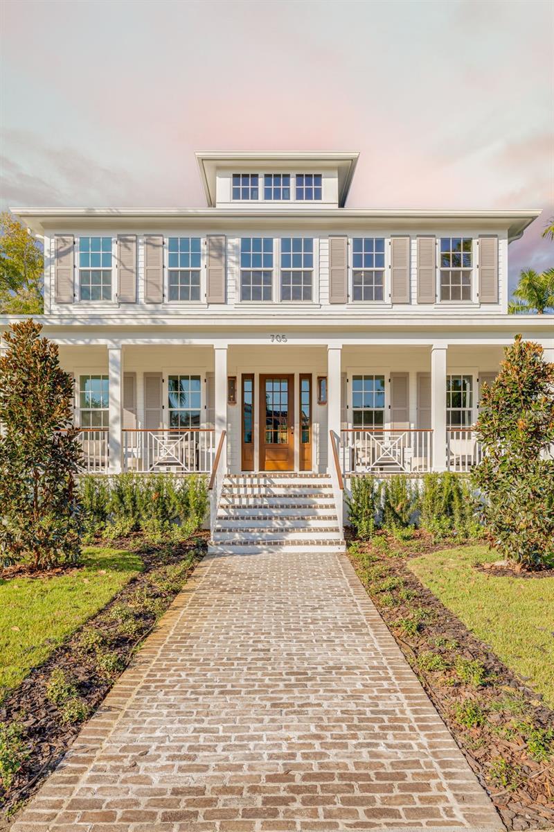 COMPLETED JANUARY 2026! This is a MOVE-IN READY CANOPY SIGNATURE HOME in collaboration with LAUREN LEITNER DESIGN. Would you love to live just steps from BEACH DRIVE in St. Petersburg’s coveted Historic Old Northeast in a custom designed Canopy Home? Here’s your chance to make that dream a reality with Canopy Builders – St. Petersburg’s most trusted name in luxury home construction. This new build sits on a desirable 89 x 110 sq ft corner lot and offers 4 Bedrooms (FIRST-FLOOR PRIMARY SUITE) + Study + Loft, 4 Baths, an oversized 2-car garage, pool and spa, plus an Accessory Dwelling Unit (ADU) with 1 bedroom and 1 bath. The main residence boasts 3,985 sq ft of living space, with the ADU adding 589 sq ft for a total of 4,574 sq ft under air. The ADU includes a full kitchen, laundry, and walk-in closet—ideal for guests, extended family, or rental income. Surrounded by brick streets and mature oak trees, this home blends modern luxury with timeless character, just a 10-minute walk to downtown St. Pete and the waterfront parks. From the welcoming front porch, you enter a foyer with tongue-and-groove paneling and designer lighting, while the formal dining room showcases grasscloth wallpaper, wainscoting, and a statement chandelier. The great room boasts a fireplace and coffered ceilings, flowing seamlessly into the kitchen, designed as both a chef’s dream and a gathering space. The kitchen features a La Cornue range, paneled Sub-Zero refrigerator, Bosch dishwasher, and inset custom cabinetry, anchored by a white oak island with Calcutta marble countertops, tongue-and-groove ceiling, and a custom reeded range hood. A breakfast nook with a gold pendant sits just beyond, while the butler’s pantry impresses with a paneled Avalon wine cooler, deep green cabinetry, brass shelving, marble counters, and gold hardware. The main level also includes a mudroom with dark cabinetry and brick herringbone flooring, a powder room with wallpaper and a soapstone vanity, and a laundry with custom cabinetry, marble checkerboard floors, and Calcutta counters. The primary suite offers wood-beamed ceilings and a spa-like bath with gold accents, fluted vanities, and Calcutta marble. Upstairs, a loft opens to three bedrooms, each with its own en suite, including designs with navy handcrafted tile and dark wood vanity, gingham tile with marble accents, and a white reeded vanity with silver hardware. The upstairs laundry includes deep green tile, Carrera marble counters, and soft white cabinetry. Canopy not only designed the interior but also customized all exterior finishes. Out back, enjoy a custom pool and spa, outdoor kitchen with grill and brick hood, and lush surroundings. The detached ADU includes quartz counters, white cabinetry, and subway tile backsplash. Planned features include Hardie Board siding, a tankless gas water heater, impact-resistant windows, and engineered hardwood floors throughout. Dual digital thermostats allow independent climate control. Additional luxuries include 10’ ceilings on the first floor, 9’ ceilings on the second, 8’ interior doors, and Canopy’s signature gas sconces on the porch. This home is walking distance to waterfront North Shore Park, biking distance to downtown, and just a 20-minute drive to St. Pete Beach or Tampa. Contact us to learn more about the custom finishes that make this home truly one of a kind.