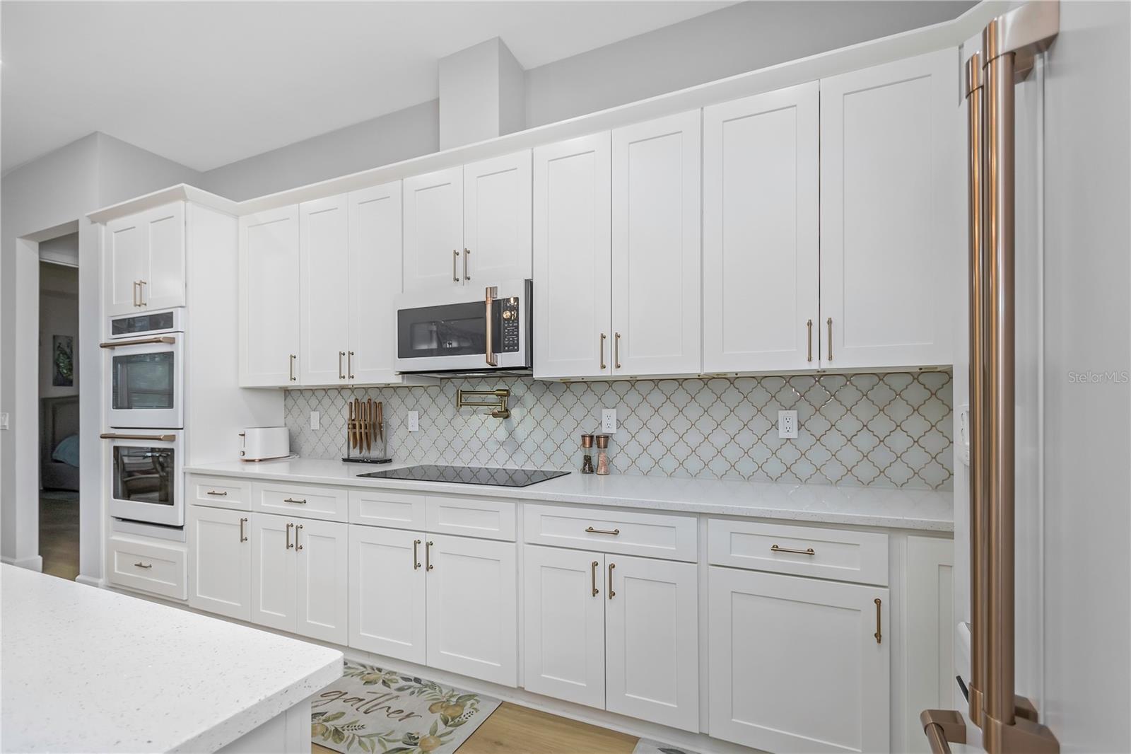 New Price Reduction $$$ - Custom-Built Elegance with Luxurious Touches Throughout Discover timeless sophistication in this exquisite two-year-old custom-built residence, designed to blend luxurious comfort with effortless style. From the moment you enter, you’ll be captivated by the attention to detail and high-end finishes throughout. The expansive primary suite offers a private retreat, highlighted by an oversized wet room with a rain shower, bench seating, and a deep soaking tub—perfect for unwinding. Step directly into a Sex and the City-inspired custom closet that balances function with fashion. Ideal for entertaining, the gourmet kitchen boasts top-of-the-line Café Collection appliances, double wall ovens, and a massive 9-foot island with quartz countertops (which also continues throughout the entire home) that seats six comfortably. Open-concept living continues through collapsible patio doors to the walk-out lanai, where a heated saltwater pool and hot tub await. With both gas and electric heaters, you’ll enjoy year-round relaxation in your private outdoor oasis. The pool also features modern conveniences including automatic refill when water levels are low, auto-dump to prevent overflow during heavy rains or hurricanes, and dual control panels—one conveniently located in the primary suite and another at the pump for ease of maintenance. The guest wing features three generously sized bedrooms, a full bath, and a well-appointed laundry room with direct access to the oversized 3-car garage, which includes walk-up attic access for convenient storage. Charming gas lanterns at the front entrance offer a warm, inviting glow, while hurricane impact windows and doors provide peace of mind throughout. Additional upgrades include a 16-channel security camera system, a hardwired fire detection system, and an underground drainage system, all supported by a GENERAC whole home generator for your piece of mind. The home is also fully prepped for an outdoor kitchen, with existing hookups for gas, electric, plumbing, and a vent hood. Less than one mile to the Gulf of Mexico and outside of an HOA, this home offers added security, sitting 14.5 feet above flood level and in flood zone X which means its location is outside of the flood plains. This great home and location provides both confidence and savings with no flood insurance required. This isn’t just a home—it’s a lifestyle of elevated comfort, thoughtful design, and modern convenience