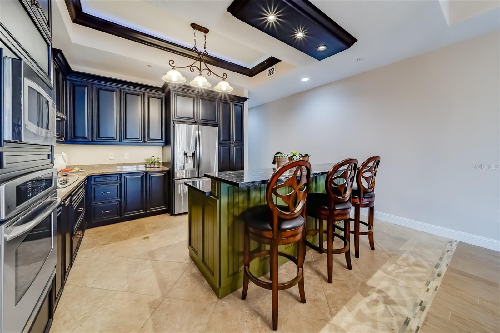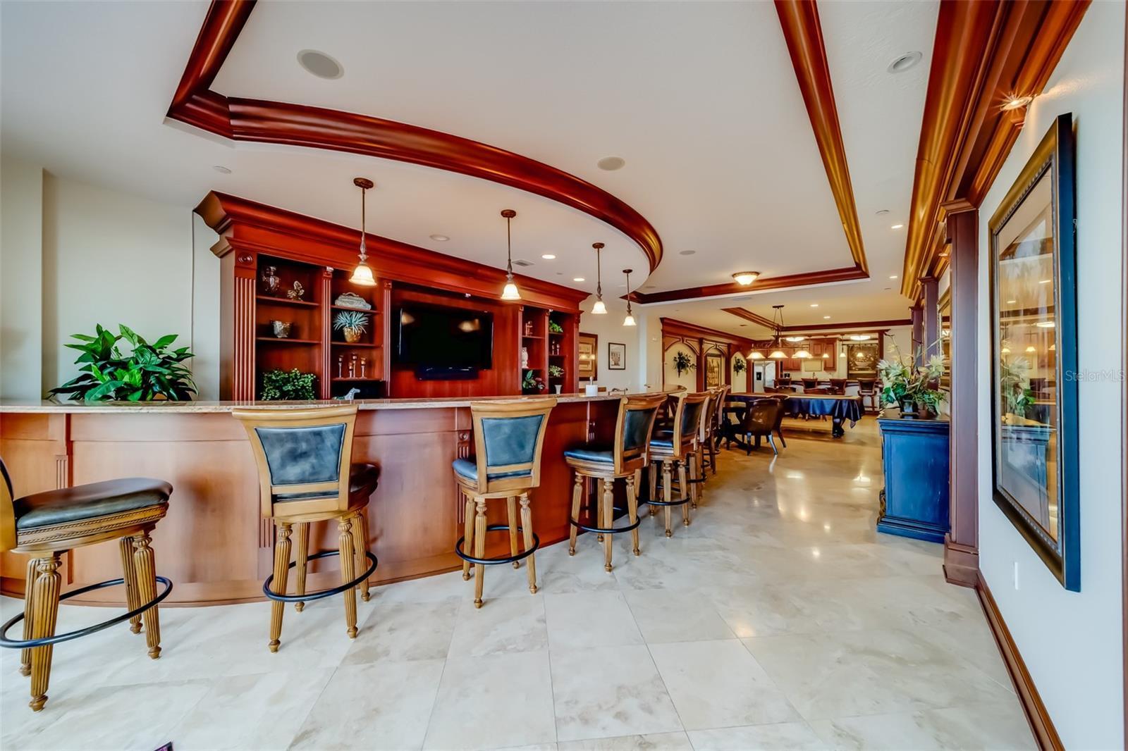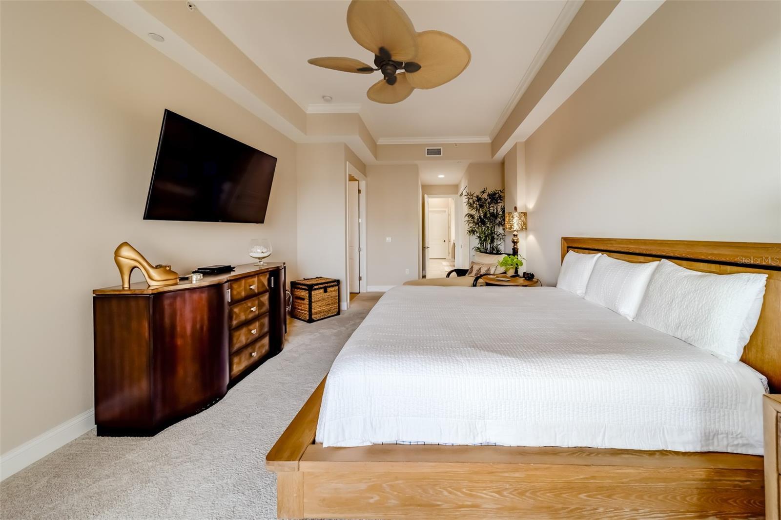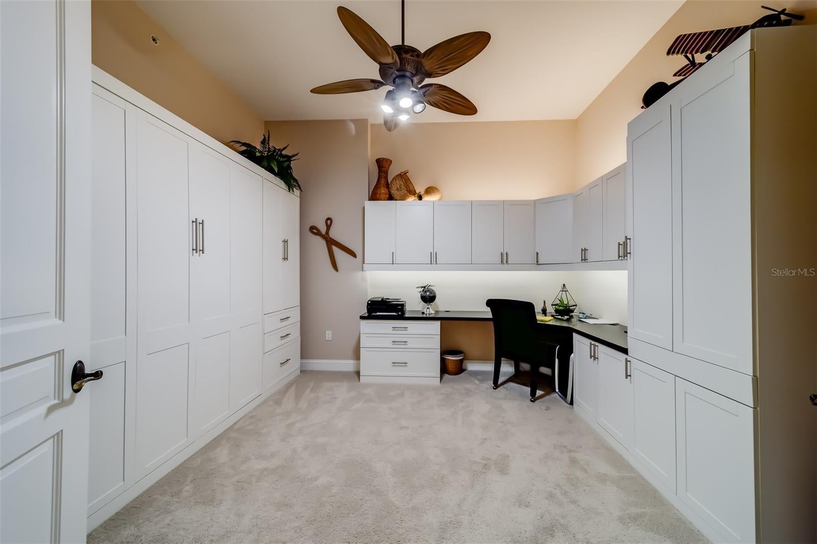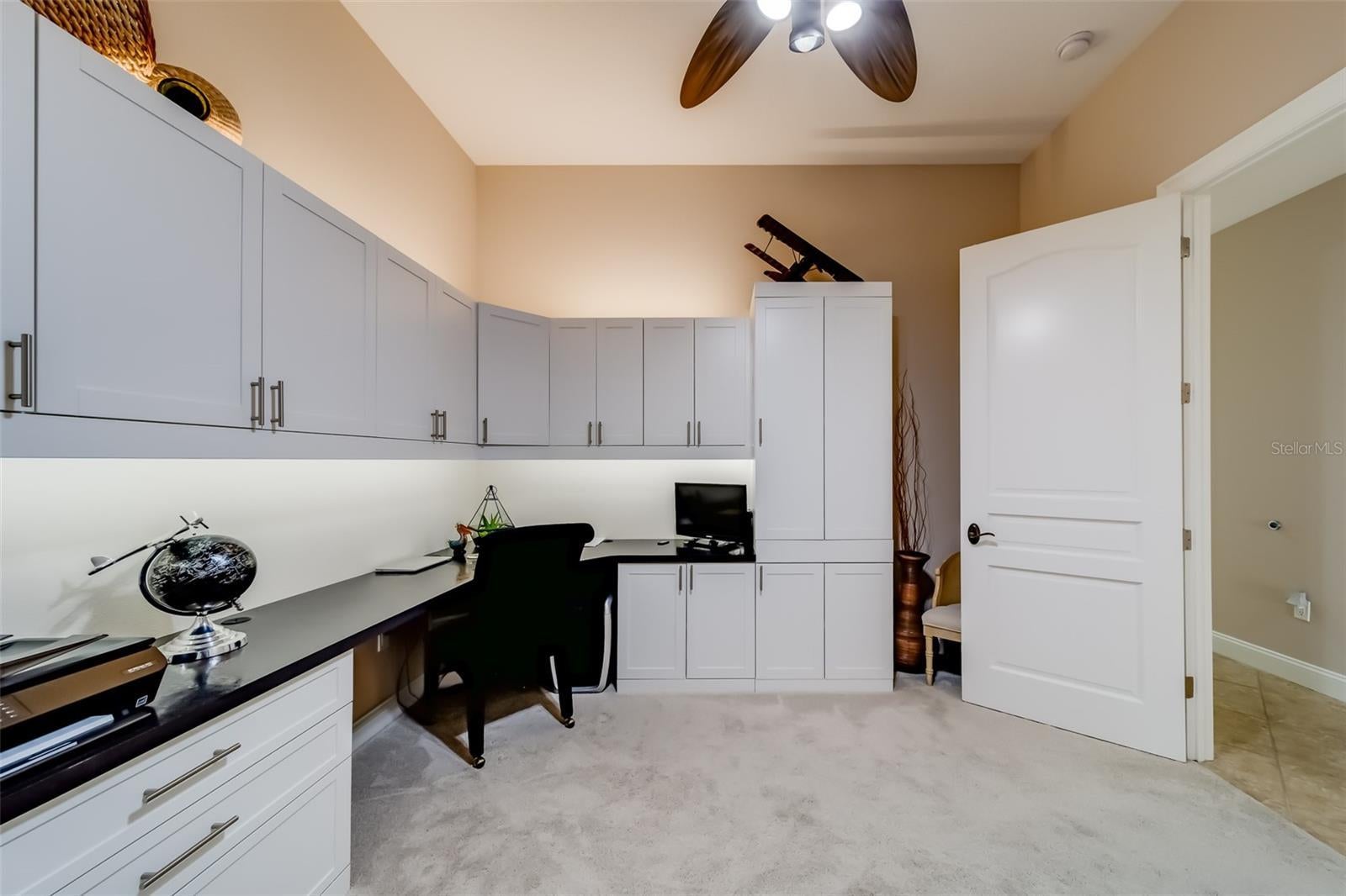 - Built-in Features, Ceiling Fans(s), High Ceilings, Open Floorplan, Solid Wood Cabinets, Thermostat, Tray Ceiling(s), Window Treatments