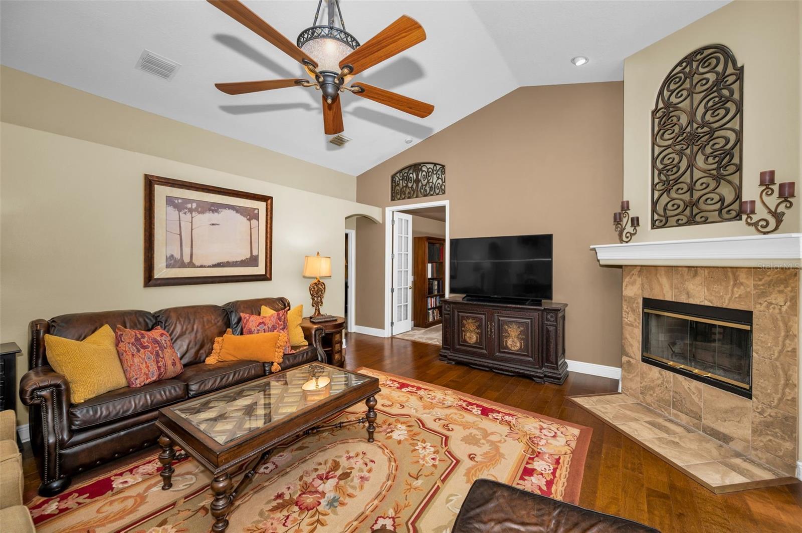 MASSIVE PRICE IMPROVEMENT! BEAUTIFUL GREY HAWK AT LAKE POLO HOME. QUALITY & CHARACTER ABOUND IN THIS PRISTINE HOME AND IT TRULY SHOWS LIKE A MODEL. SPACIOUS 4BR, 3 BATH HOME WITH A LARGE BONUS ROOM WHICH COULD BE A GUEST SUITE OR IN-LAW W/SEPARATE, OUTSIDE ENTRY. THERE IS AN OVERSIZE THREE CAR SIDE-ENTRY GARAGE. SPARKLING SCREEN POOL WITH DECORATIVE STONE WATERFALL FOR A VERY RELAXING VIEW. THE CHARMING COVERED FRONT PORCH W/BRICK PAVERS, GLASS DOUBLE DOORS AND GLEAMING HARDWOOD FLOORING IN THE ENTRY, LR, DR, FR & KIT PROVIDES AN ELEGANT ENTRY TO YOUR FORMAL AREAS. THE LR HAS A TREY CEILING, W/DOUBLE GLASS FRENCH DOORS TO THE LANAI. THE KITCHEN IS DELIGHTFUL, W/BEAUTIFUL GRANITE COUNTERTOPS, NEW STOVE & MICROWAVE (AUGUST 2025), AN ABUNDANCE OF WOOD CABINETS AND A LARGE BREAKFAST BAR FOR ADDITIONAL SEATING. THE KITCHEN IS OPEN TO THE FR AND EATING AREA WITH MITERED GLASS WINDOW THAT PROVIDES A PICTURESQUE VIEW OF THE POOL AND WATERFALL. THE MITERED WINDOW HAS A CUSTOM VALANCE WITH RETRACTABLE SHADES. THERE IS ALSO A SINGLE GLASS FRENCH DOOR LEADING TO THE COVERED/SCREENED LANAI. THE FR HAS A BEAUTIFUL CATHEDRAL CEILING, WOOD BURNING FIREPLACE WITH A LOVELY MANTLE AND DECORATIVE NICHE. THE FANTASTIC BONUS ROOM HAS TRIPLE SLIDING GLASS DOORS, WITH RETRACTABLE SHADES, THAT LEAD TO THE LANAI/POOL AND DOUBLE FRENCH DOORS TO THE FR. ALL BATHS HAVE TILE FLOORS (TILE GROUT WORK AND CALKING IN ALL BATHS AND LAUNDRY WAS COMPLETED/UPDATED (MARCH 2025). WHILE THE BEDROOMS AND BONUS ROOM HAVE NEW CARPET (MARCH 2025). THE HOME ALSO HAS MULTIPLE SETS OF PLANTATION SHUTTERS AND CUSTOM VALANCES. ALSO 2 NEW A/C UNITS (COMPRESSOR & AIR HANDLER (JULY 2023), WROUGHT IRON FENCED BACK YARD WITH NEWLY INSTALLED PRIVACY LANDSCAPING (MARCH 2025). NEW ROOF (JULY, 2024). NEW HOT WATER HEATER (MARCH 2025). NEW EXTERIOR PATIO FANS AND NEW EXTERIOR DOOR NOBS (2025). THERE IS NO CDD. THERE IS A ONE-TIME CAPITAL CONTRIBUTION TO THE HOA FOR NEW RESIDENTS OF $3,000. THE COMMUNITY ALSO HAS A PLAYGROUND, TENNIS COUNTS, BASKETBALL COURT, BEACH VOLLEYBALL, FISHING PIER AND WALKING TRAILS.