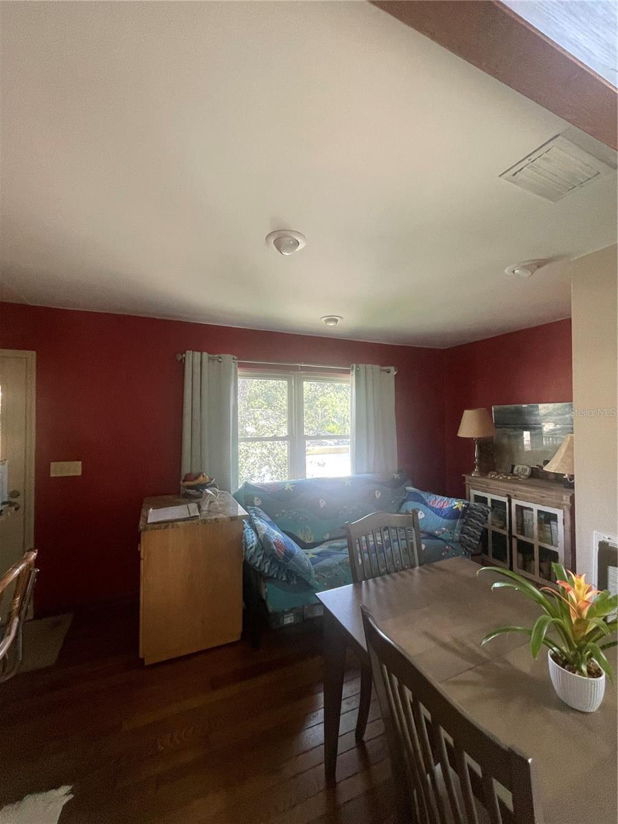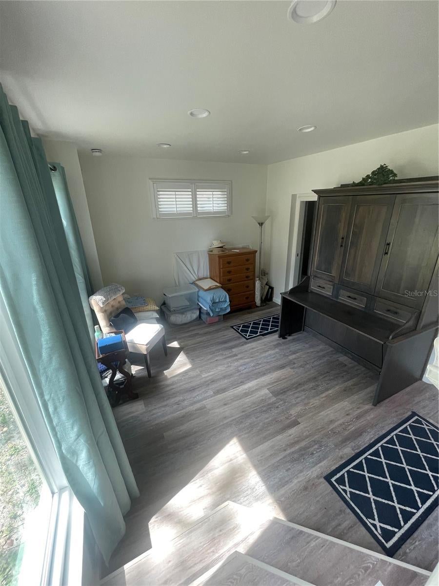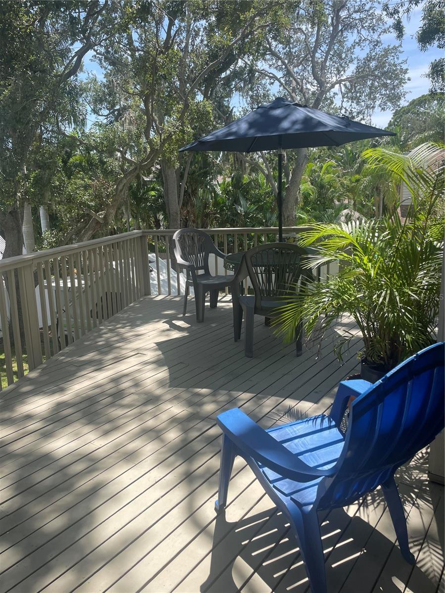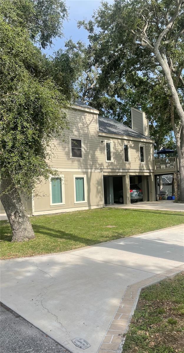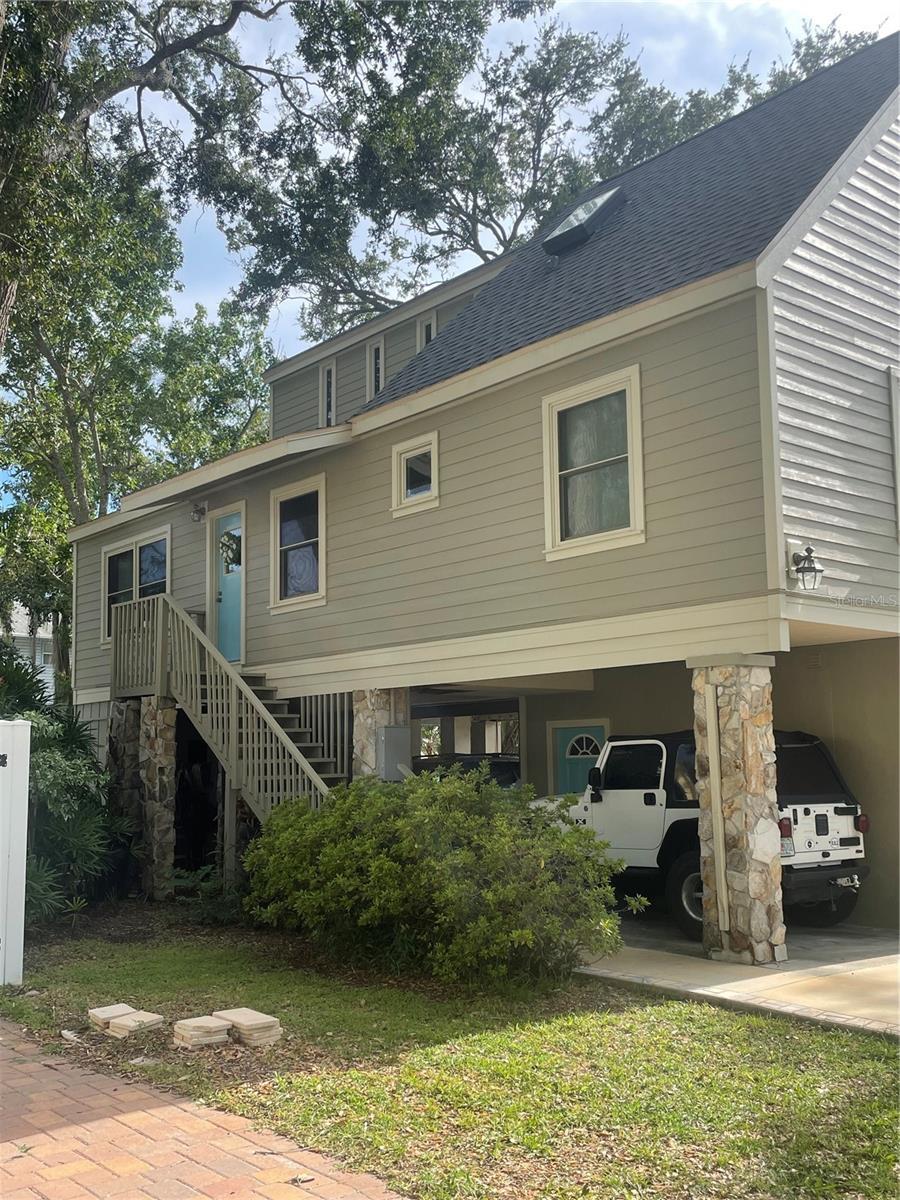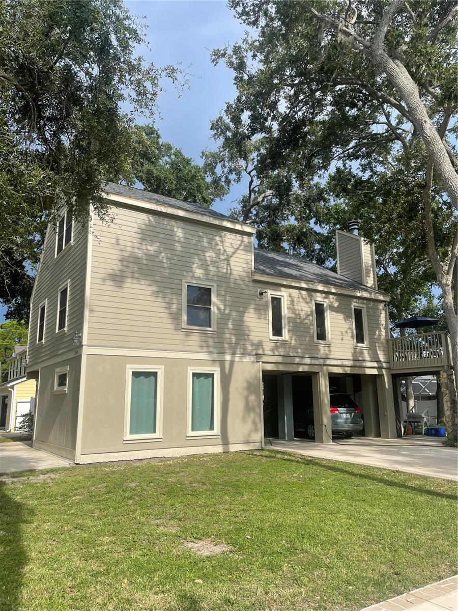 Location! Location! Highly desired Seminole neighborhood. Just minutes from beach, parks, grocery and pharmacies, highly rated public schools and Seminole City Center. Unique contemporary designed home nestled in the shade among a dozen established live oak trees on an oversized lot (1.5x) of average size lot on the street. Deep back yard open for multiple opportunities for your personal desires - custom pool, pickleball court, animal exercise area, putting green - to name a few. Constructed of Hardee board siding and hurricane rated windows. New roof installed and exterior painted in 2022. Open floor plan with 3/4” oak hardwood floors in living and dining room area, newly installed carpet in 3 bedrooms. Post and beam construction. Wood burning fireplace with vents. Ceiling fans throughout. Gorgeous granite countertops and movable island made of solid maple. Propane stove, water heater (replaced 2022), and dryer resulting in lower utility costs, especially in summer. Lots of natural light. An indoor jacuzzi tub on the main floor. Exterior stairwell was rebuilt in 2022 along with renovated deck. There is 662 sq ft of covered area under the 10’ high stilts with space for parking 2 vehicles plus added available space. Concrete driveway was replaced and extended in 2021. 8’ x 10’ storage shed under the deck. The 4th bedroom/office has a Murphy desk/bed on the ground level and was newly finished in 2022 and has it’s own private full bath and exterior entrance. The private deck off the living room extends your enjoyment of being outdoors. You will also enjoy many beautiful sunsets from there.