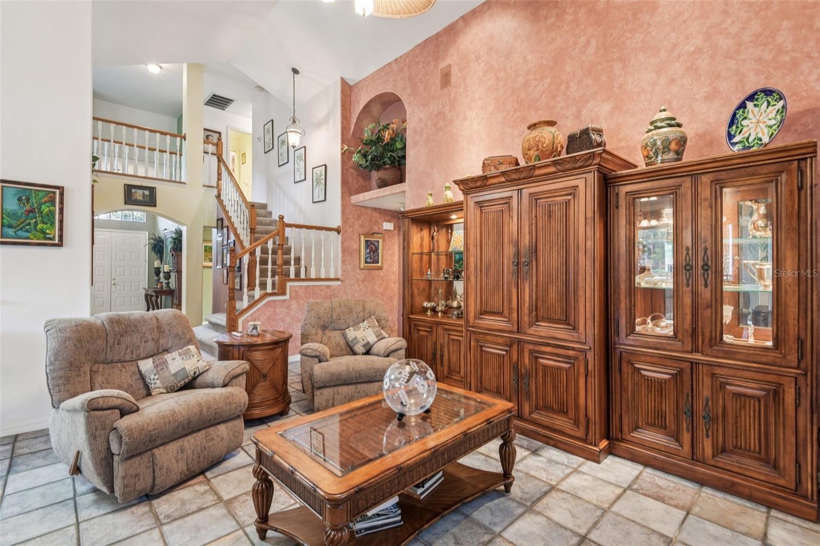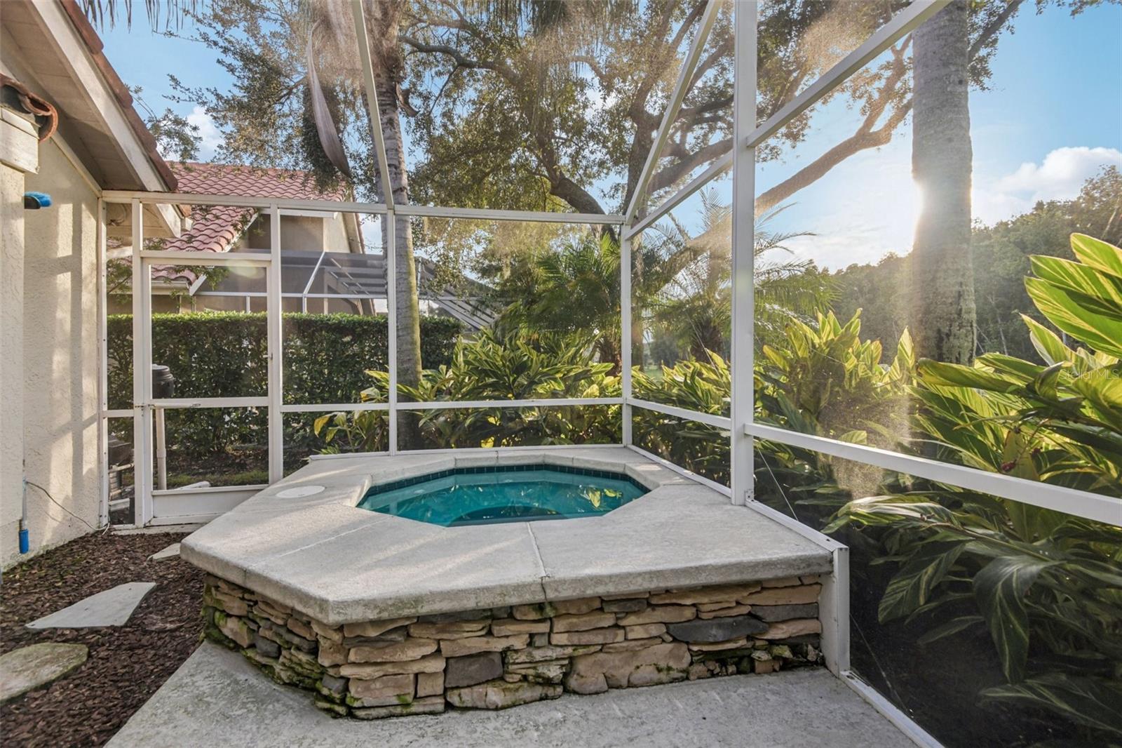 Discover refined living in the sought-after gated Cheval community, with this 4-bedroom, 3-bathroom home set on a premium cul-de-sac lot, offering serene pond views and a backdrop of the newly reopened Cheval Golf Course. The property is served by a deep well, providing a private water source. Inside, soaring ceilings create a sense of openness from the moment you enter. A welcoming sitting room and adjacent dining area flow seamlessly into the kitchen, complete with stainless steel appliances, ample storage, and a breakfast nook overlooking the fairway. The living area is a showstopper, with a cozy fireplace as its focal point and remote-controlled blinds framing the views. The primary suite is generous in size and features private access to the lanai, a spacious walk-in closet, and an ensuite bath with dual sinks, a soaking tub, and a dual shower-head shower. A large den/office and full bathroom are also located on the main floor. Upstairs, two additional bedrooms share a full bath, complemented by a versatile loft area ideal for a second living space. Both bathrooms are spacious with tiled flooring. Upgrades include a tankless water heater providing instant heat, filtered drinking water, a water softener, attic spray foam insulation, seamless gutters with LeafGuard, all interior walls insulated, and the block home finished with colored worm coat that eliminates the need for future painting. Outdoors, enjoy tranquil evenings on the expansive lanai with an in-ground hot tub, lush landscaping, and beautiful pond and golf course views—perfect for sunsets. It’s not uncommon to see deer and other wildlife from the lanai, adding to the serene and natural setting. A new roof was installed in October 2025, and the HVAC system includes a 2-year warranty with a freshly replaced ultraviolet bulb in 2025 for improved air quality and peace of mind. Cheval offers a wealth of amenities including a clubhouse, community pool, basketball and tennis courts, and a championship golf course, enhancing the lifestyle this home provides. With negotiable furnishings, this property combines comfort, elegance, and the security of a gated, amenity-rich community. Don’t miss this opportunity to own a spectacular Cheval home—luxury, location, and lifestyle all in one!