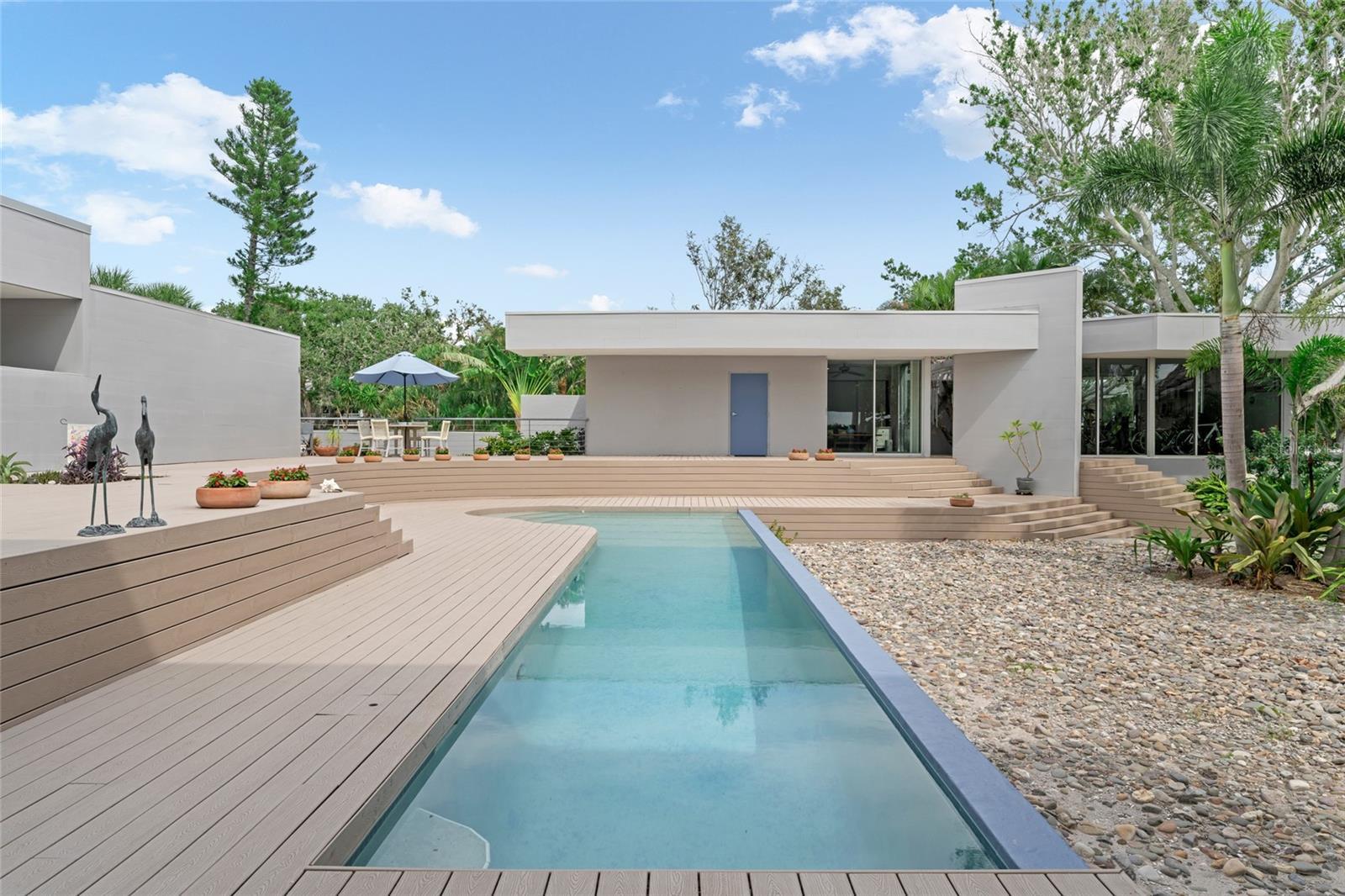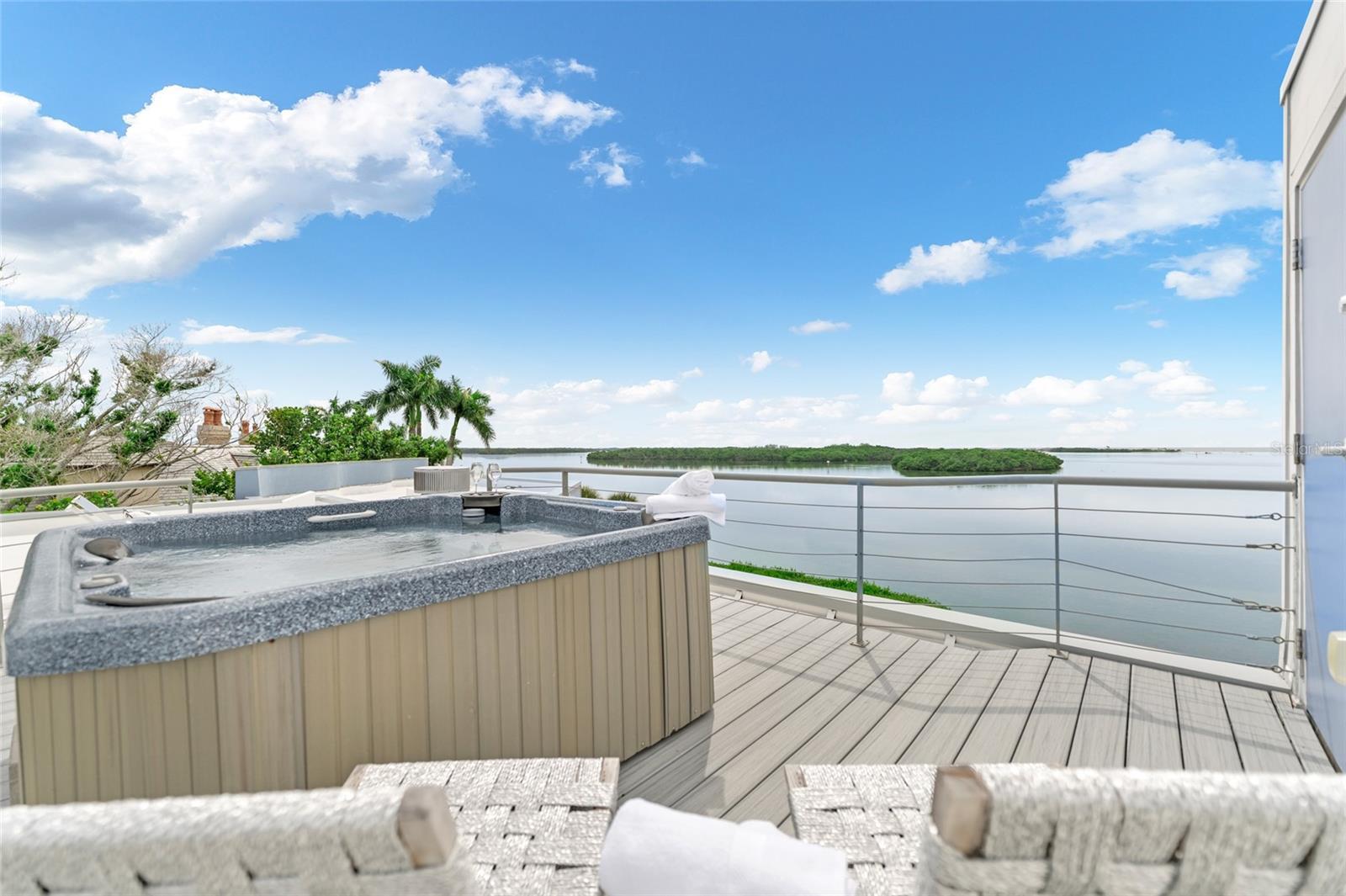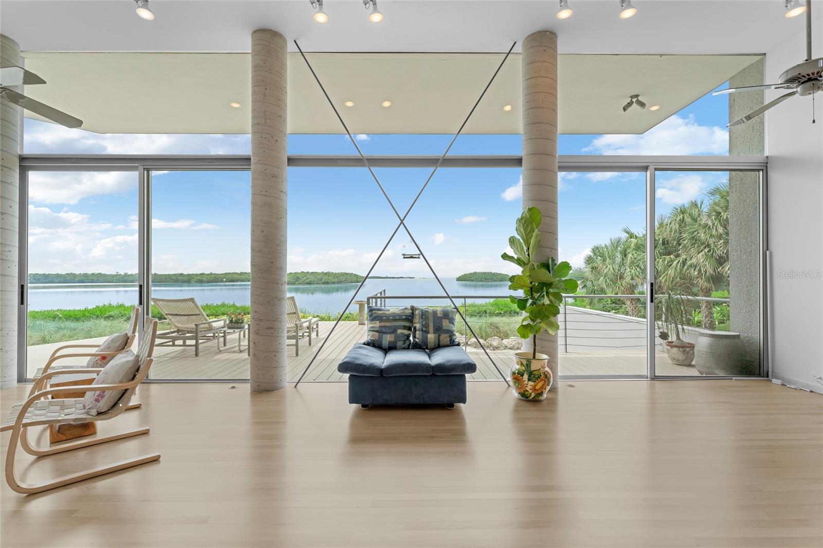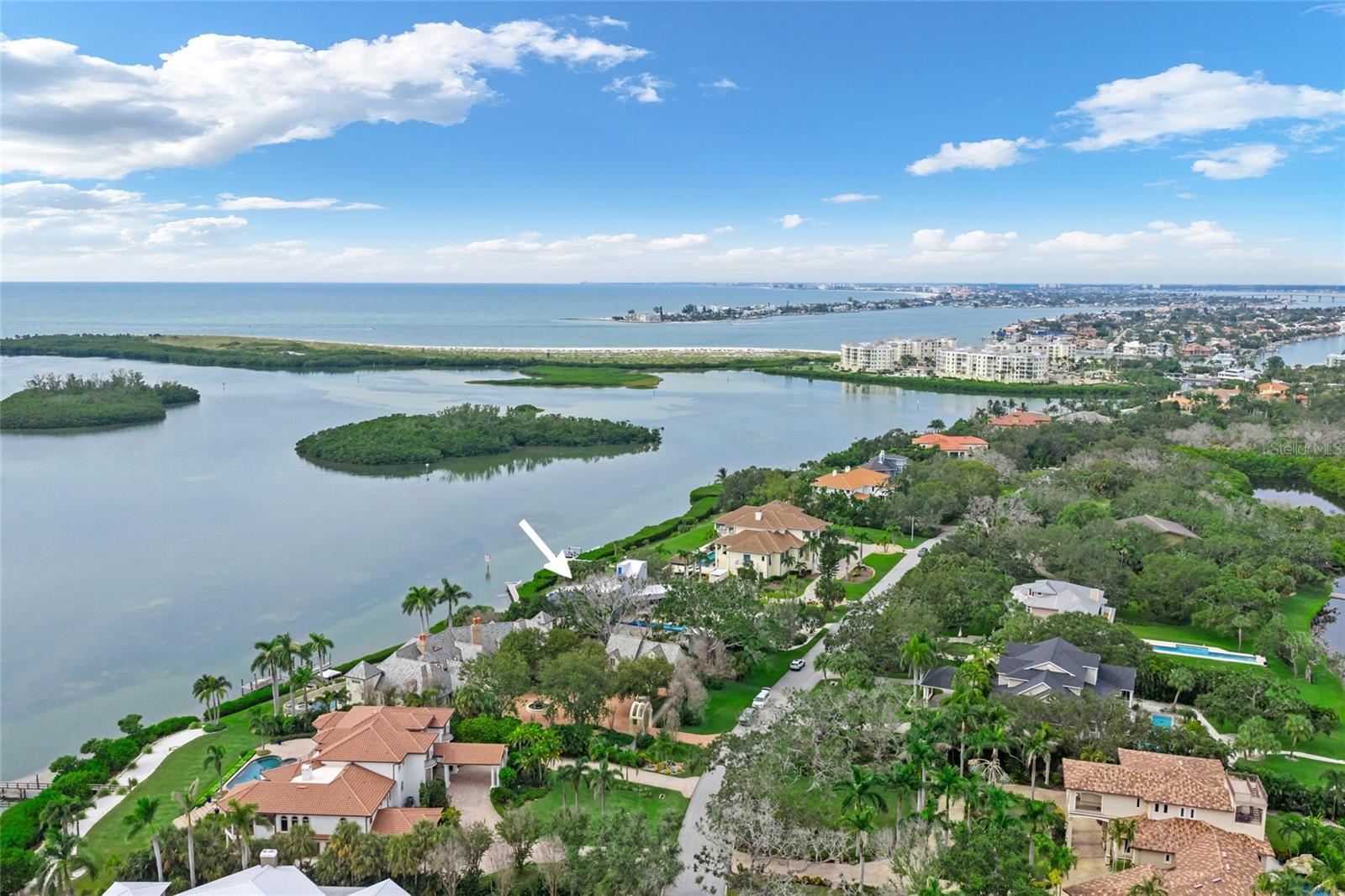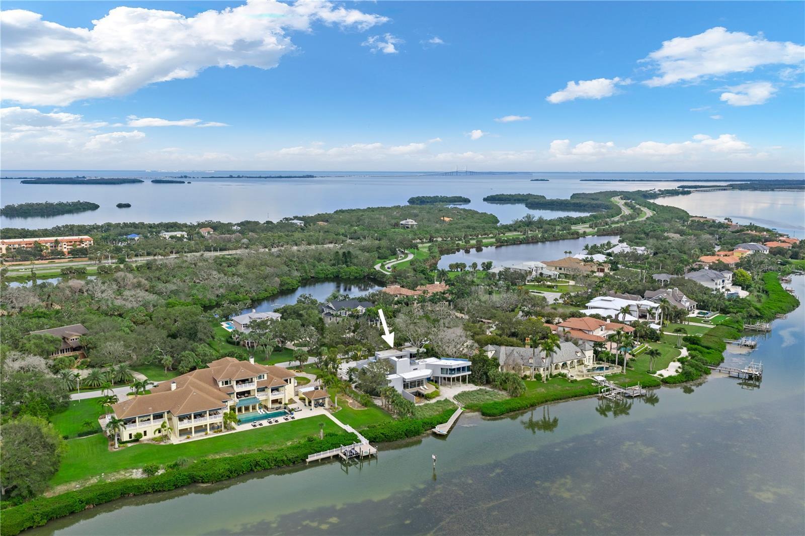 Enjoy modern coastal living on your own private waterfront beach with exquisite, unobstructed open water views of the Gulf of Mexico. Situated on nearly an acre with the prestigious Oceanview Drive address of Tierra Verde, this architecturally unique waterfront residence offers a wonderful opportunity to create your dream home in one of Tampa Bay’s most desirable locations. Built in 1988 with a forward-thinking open-concept design, the home features expansive floor-to-ceiling windows that blur the lines between indoors and out, offering panoramic views from nearly every room. White Oak hardwood floors span the main living areas, enhancing the warm, modern aesthetic. The upper-level primary suite present an exceptional opportunity for a redesign to your own specific vision - allowing you to fully personalize and elevate the living experience to today’s luxury standards. The flexible floor plan includes a loft-style second level with current drawings for a reconfiguration and expansion—add bedrooms, baths, or an entertaining 'sky deck' to suit your lifestyle. Outdoor living is just as impressive, with the rooftop deck and hot tub offering 360-degree views, a secluded private beach, expansive sun decks, lush landscaped gardens, and a detached guest retreat complete with its own personal gym. Located just 10 - 15 minutes from St. Pete Beach, Downtown St. Petersburg, Fort De Soto Park, and the I-275 corridor, this property combines privacy, potential, and prime waterfront access. Bring your vision and make this iconic Gulf-front property your own!