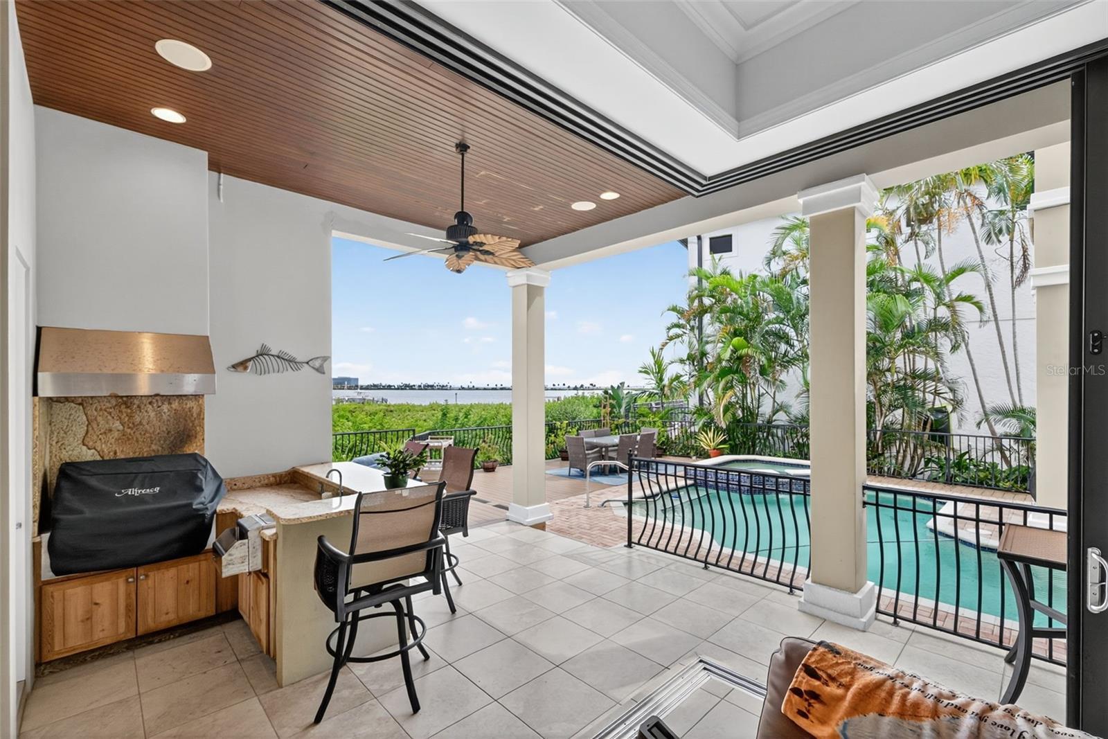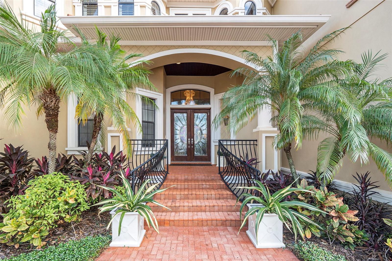 Welcome to The Reserve of Old Tampa Bay—Tampa Bay’s most coveted gated waterfront enclave, where timeless elegance meets resort-style living. Tucked away behind lush tropical palms, this renowned community offers unparalleled privacy, direct water access, and the kind of sunrises and sunsets that define Florida’s West Coast lifestyle. Custom-built in 2006 by the esteemed Alvarez Homes, this architectural masterpiece makes an unforgettable impression from the moment you arrive, as double custom entry doors open into a grand two-story foyer crowned by a dazzling crystal chandelier. To the left, an elegant formal dining room sets the stage for exquisite dinner parties, while the formal living room offers dramatic floor-to-ceiling bay views anchored by a Baby Grand player piano. The first level is designed for both luxury and convenience, featuring a guest or mini-owner’s suite complete with a private balcony perfect for morning coffee with serene views, direct poolside access, an ensuite bath, and a walk-in closet—ideal for multigenerational living or extended stays. A statement powder room showcases an artistic floor-to-ceiling Florida mural, while a discreet private entrance to the one-car garage ensures privacy. The chef’s kitchen is nothing short of extraordinary, outfitted with professional-grade appliances including a Wolf gas cooktop, Bosch convection oven, Profile microwave, Sub-Zero refrigerator, wine chiller, and Bosch dishwasher, all complemented by custom cabinetry, granite counters, and an expansive island that elevate both form and function. Nearby, the laundry suite connects to a two-car garage with a custom lift, tankless water heater, water softener, and reverse osmosis system. Designed for entertaining, the open-concept family and dining areas boast custom built-ins, an in-house audio system, and fully pocketing glass sliders that dissolve the boundary between indoor luxury and outdoor splendor. Step onto the expansive patio and experience resort living at its finest with a private heated saltwater pool, cascading spa, and sauna, all framed by panoramic bay views, while a poolside half bath and fully equipped outdoor kitchen—complete with granite bar, counter seating, and gas grill—make alfresco entertaining effortless. After dinner, launch your boat from the private lift and cruise the sparkling waters of Old Tampa Bay. Ascending via the chandelier-lit elevator, the second level is equally impressive, with a dramatic catwalk leading to two spacious guest suites, each with walk-in closets, a shared Jack-and-Jill bath, and private balconies. Across the way, a loft and bonus room conceal a hidden passage to the show-stopping primary suite, where indulgence awaits in a spa-inspired retreat featuring dual vanities, two private water closets, a deep jetted soaking tub, and a grand walk-in shower. Additional upgrades include a brand-new metal roof 2025, ensuring long-lasting durability and peace of mind. Just minutes from Downtown Tampa, the Gulf Beaches, and Tampa International Airport, The Reserve of Old Tampa Bay offers the perfect balance of exclusivity and convenience—more than a residence, it is a statement of prestige, comfort, and unparalleled waterfront living.
