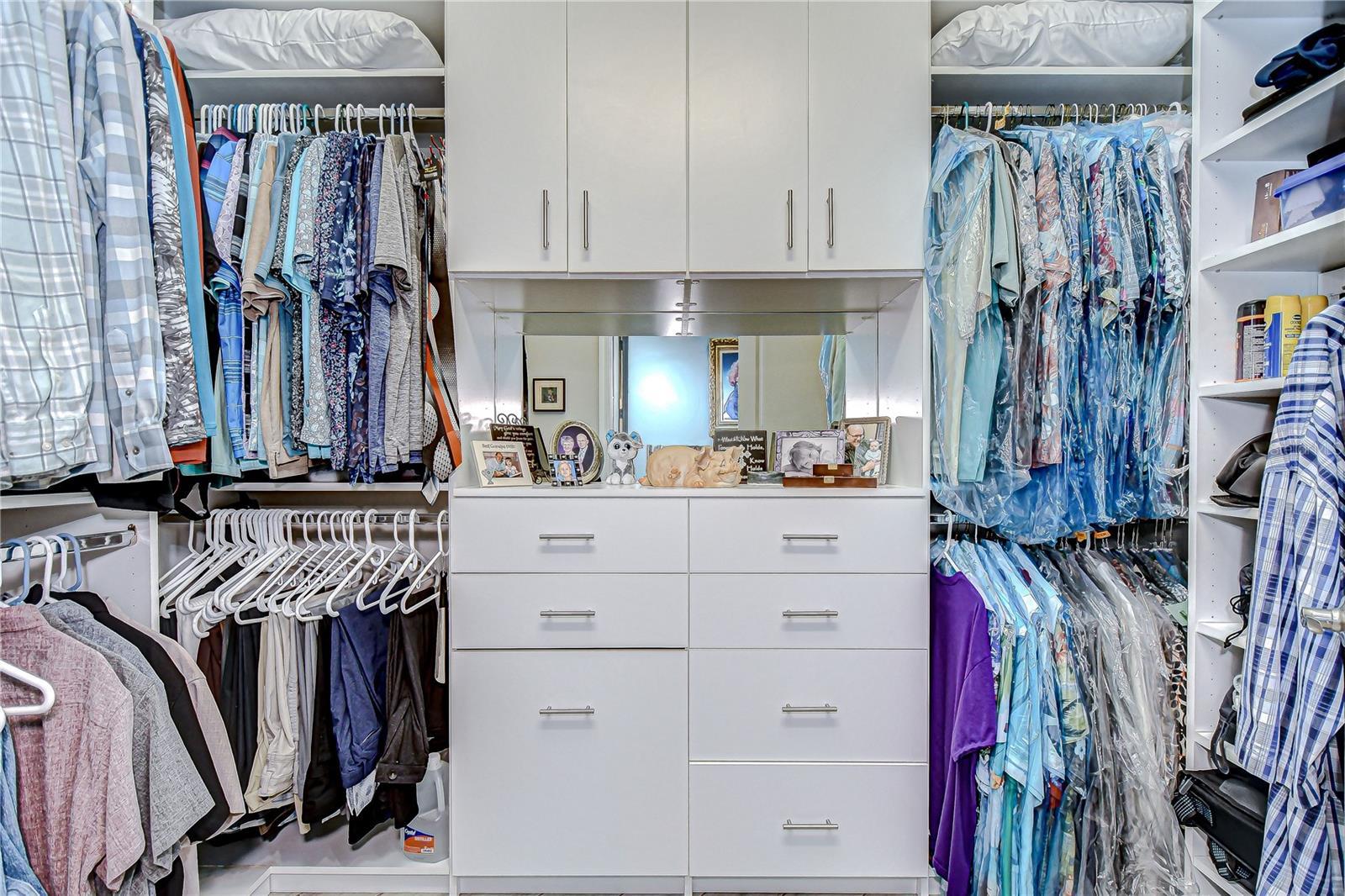 - Built-in Features, Cathedral Ceiling(s), Ceiling Fans(s), Coffered Ceiling(s), Crown Molding, Eat-in Kitchen, High Ceilings, Open Floorplan, Primary Bedroom Main Floor, Solid Wood Cabinets, Split Bedroom, Stone Counters, Thermostat, Tray Ceiling(s), Walk-In Closet(s), Window Treatments