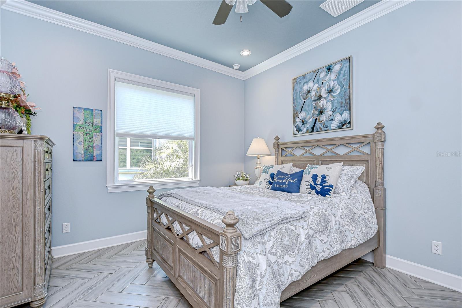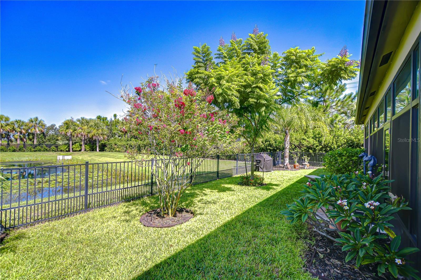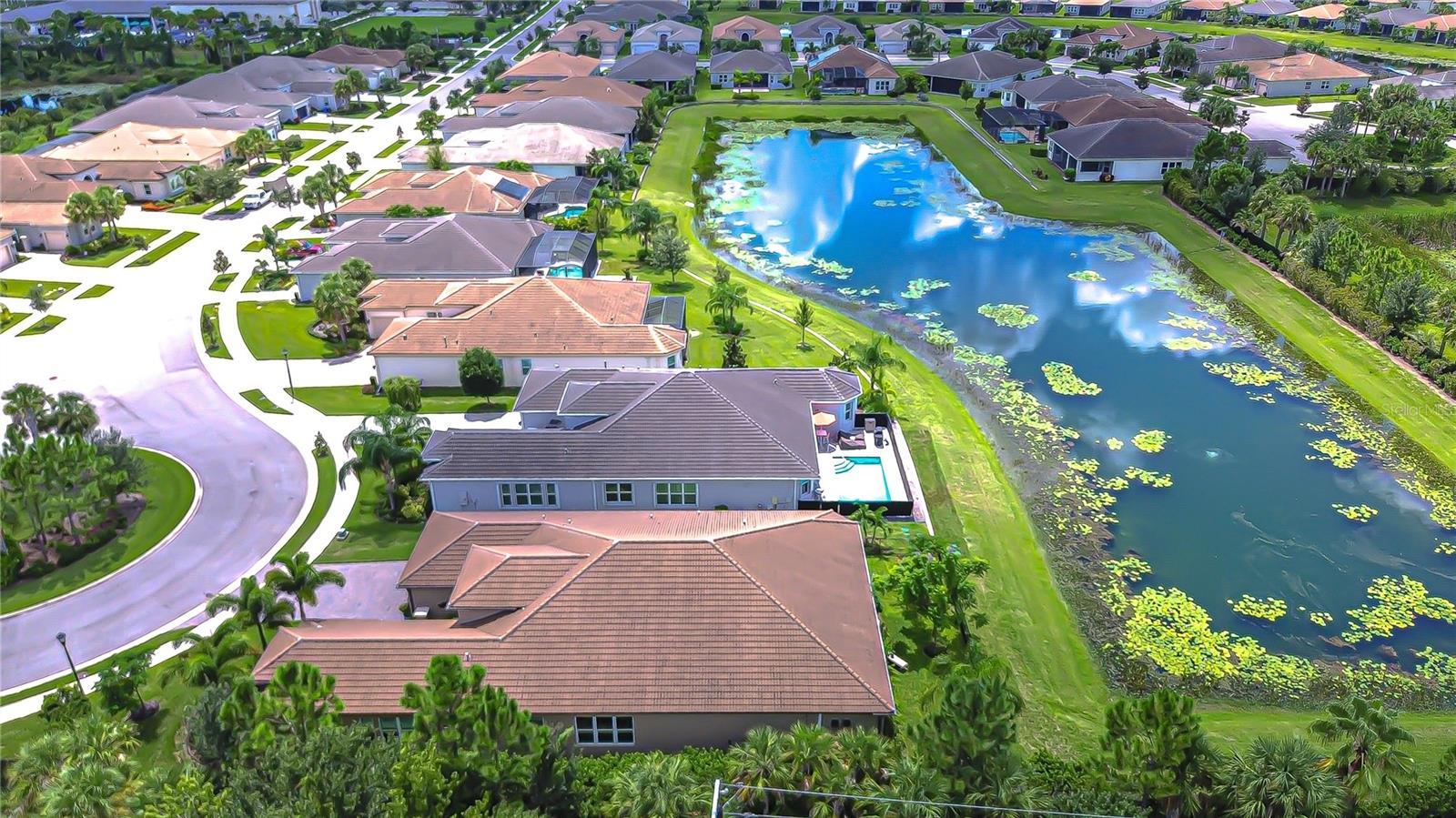 Welcome to the resort-style, 55+ gated community of Valencia Del Sol—where active, hands-free living is truly redefined! With an on-site activity director, your calendar will be filled with exciting events, and the Valencia Del Sol Club offers residents a full fitness center, meeting rooms, art and card rooms, a party room, PICKLEBALL courts, a resort-style pool, bocce ball, fire pits, and an on-site restaurant & bar. This stunning home, featuring over $200K in upgrades, offers 3 bedrooms, 3.5 baths, a bonus room, an oversized 772 SqFt Florida room, and a 3-car split garage, spanning over 3,855 sq. ft. Every detail exudes quality and elegance—from the Herringbone wood-look porcelain tile floors that flow throughout, double tray coffered ceiling and stone accent wall in the great room, crown moulding, and designer fixtures, to the custom window treatments and high-end finishes throughout. Step into the expansive, climate-controlled Florida room with automatic window shades, where peaceful water views and unforgettable Florida sunsets set the scene for seamless indoor-outdoor living. Entertain with ease in the custom-built outdoor kitchen featuring a commercial-grade extractor, and enjoy privacy in the fenced backyard surrounded by beautiful tropical landscaping. The gourmet kitchen is a chef’s dream, complete with quartz waterfall countertops, high-end cabinetry with custom pull-outs and soft-close drawers, stainless appliances, including a Cafe gas range with dual ovens, pantry pullouts, and a bright breakfast area with breakfast bar. The primary suite is truly remarkable, featuring stunning pond views, two walk-in California closets, and a private en-suite with dual vanities, a walk-in shower, and a soaking tub. One secondary bedroom offers a walk-in closet and private en-suite, while the third bedroom also features a walk-in closet with a nearby full bath highlighted by elegant fish scale tilework. Additional upgrades for peace of mind include whole-home high-impact windows and sliding glass doors, a transfer switch and portable generator setup so you’ll never be left in the dark, rain gutters, and a Culligan water softener/filter. The bonus room with built-in shelves and a desk is perfect for working from home, and the laundry room includes additional cabinetry for extra storage. Valencia Del Sol takes care of the details so you don’t have to, with community-provided pest control, lawn maintenance, mulching, and fertilizing, allowing you to focus on the lifestyle you deserve. Ideally located less than 40 minutes from both Sarasota and Tampa International Airports, this meticulously maintained and thoughtfully upgraded waterfront property combines luxurious comfort with convenience. Schedule your private tour today—you won’t be disappointed!