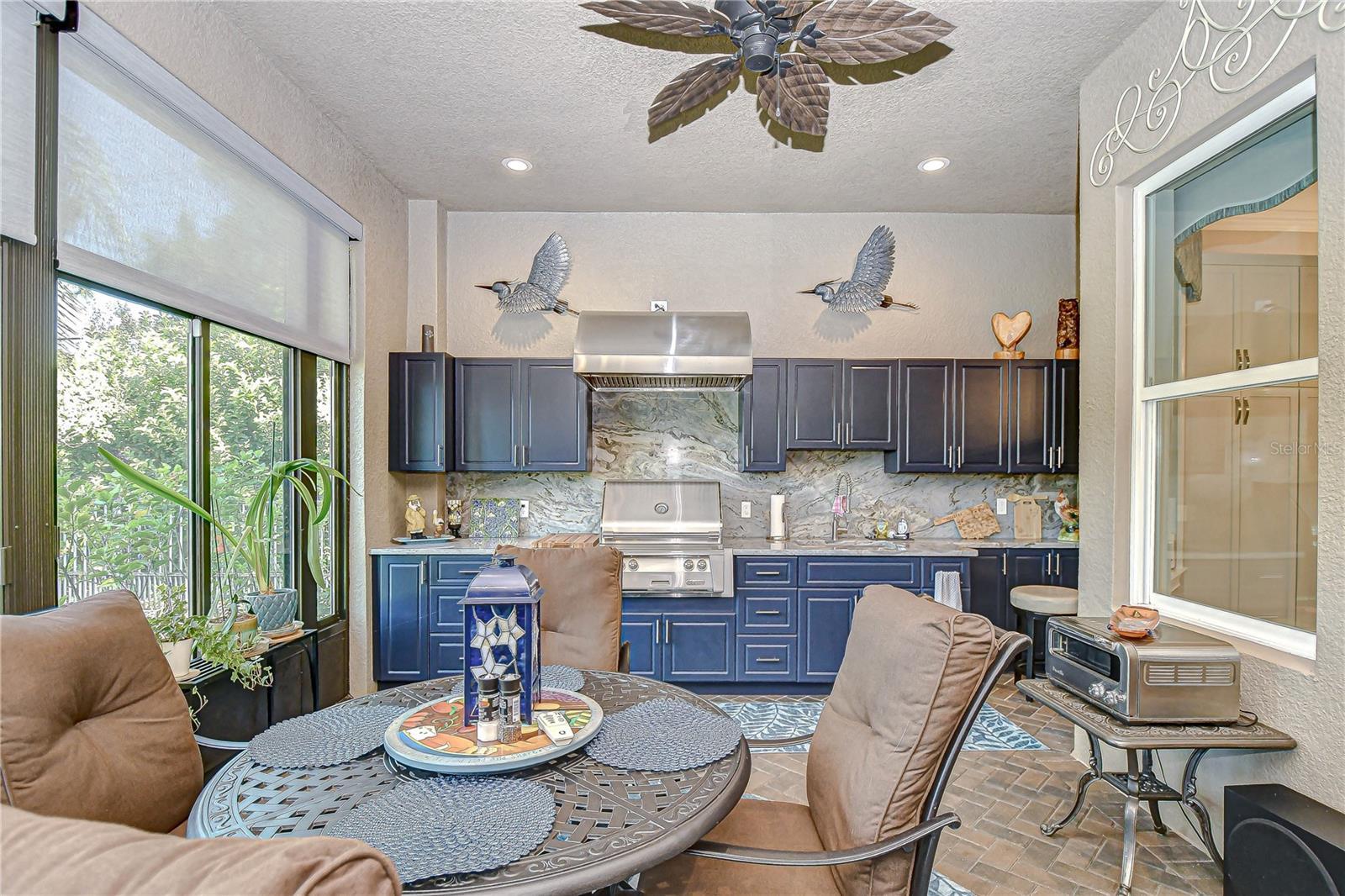 - Outdoor Grill, Outdoor Kitchen, Rain Gutters, Sidewalk, Sliding Doors, Sprinkler Metered