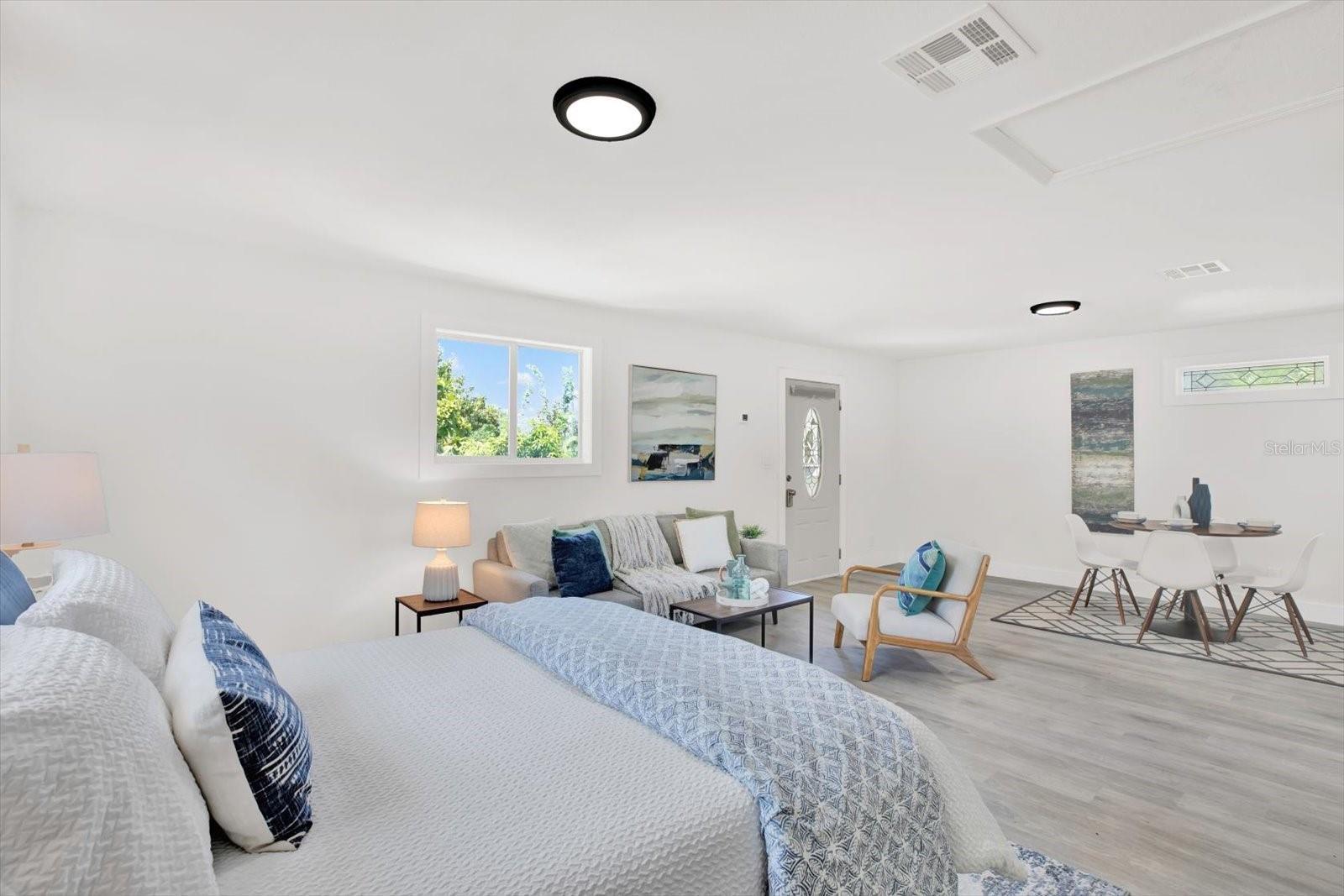 This versatile retreat is unlike anything else on the market. A rare Gulfport estate sitting on a truly private double lot, this property blends timeless character with modern upgrades across three separate residences- the main home, a stand-alone cottage, and a garage apartment overlooking a resort-style pool. Whether you’re envisioning multi-generational living, private guest retreats, or income-producing opportunities, the versatility and lifestyle here are unmatched. The main Dutch Colonial home spans over 2,200 sq ft with 3 bedrooms, 2.5 baths, and rich hardwood floors. A spacious updated family room opens directly to the pool deck, while a covered porch overlooks the lush backyard-creating the perfect setting for indoor-outdoor living. The standalone cottage has been completely remodeled from top to bottom and never lived in since. Bright and airy, it features a full kitchen with stone countertops, modern appliances, a stylish bath, lofted bedroom, and luxury vinyl plank flooring. Above the oversized two-car garage, the freshly renovated studio apartment offers abundant natural light, sleek stone counters, and luxury vinyl flooring - plus a bird’s-eye view of the backyard and pool that makes every day feel like a private resort. Step outside and this estate transforms into a tropical sanctuary: a sparkling in-ground pool, outdoor kitchen, travertine patio, and fruit-bearing trees (including mango), all surrounded by privacy fencing. Recent upgrades include one of the roofs (2017), electrical, plumbing, irrigation, gutters, pool resurfacing, tankless water heater, refinished oak and bamboo floors, landscaping, driveway, full interior renovation of the guest apartment, cottage and more - blending peace of mind with lasting appeal. All three residences enjoy private entries both to exterior roadways and interior pool/backyard, making this one of the most flexible and unique estates in Gulfport. Just blocks from the city’s historic waterfront district, vibrant arts and dining scene, and less than 10 minutes to both the Gulf beaches and downtown St. Petersburg- this home offers a one-of-a-kind lifestyle in a prime location without the added cost of being in a flood zone!