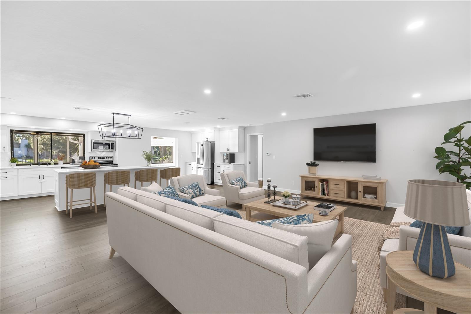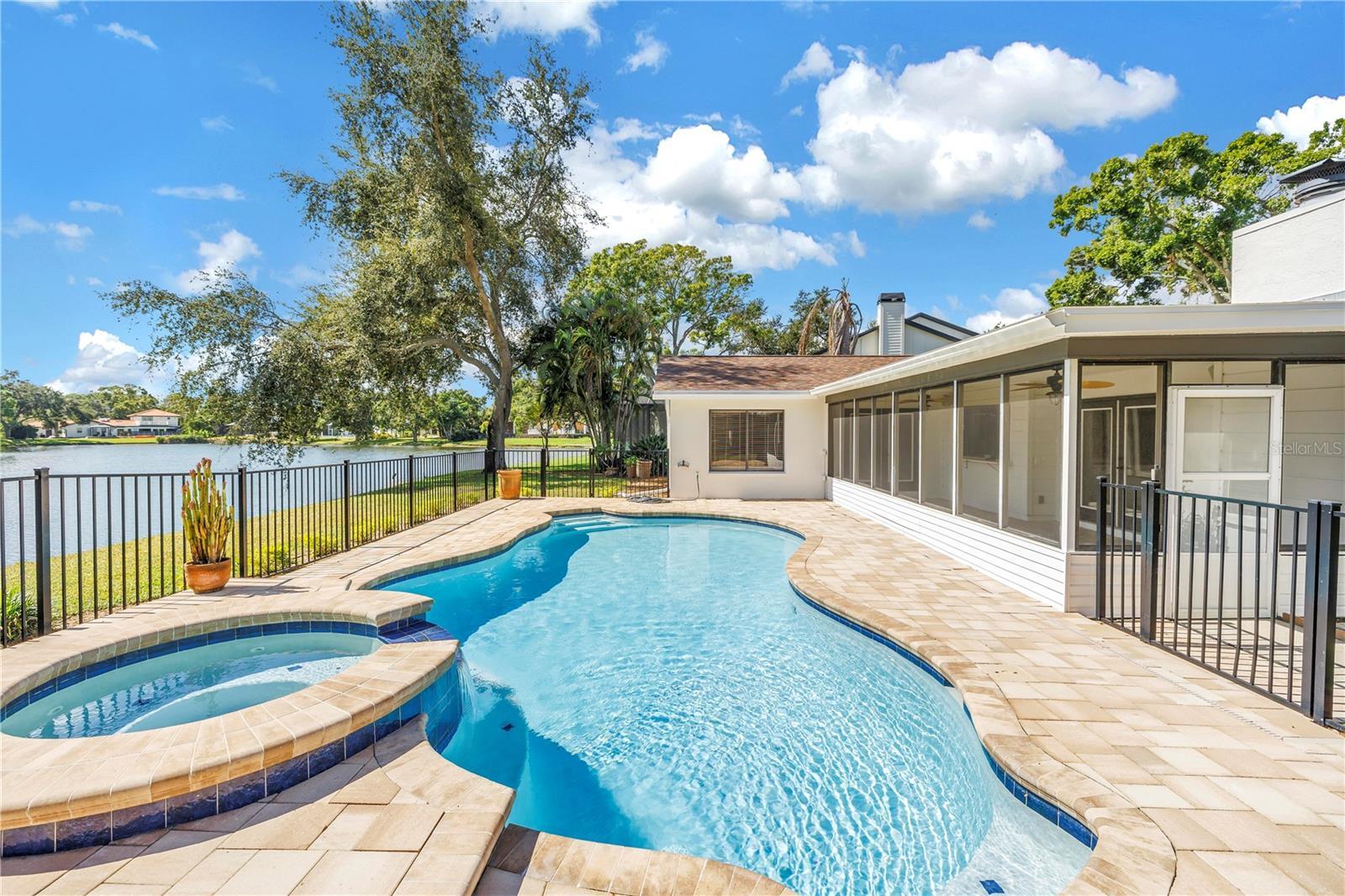 One or more photo(s) has been virtually staged. Where golf community living meets lakeside retreat… all just a short drive to the beautiful Gulf beaches. Now is your chance to secure a slice of the esteemed Seminole Lake Country Club Estates golf community with this almost half-acre property on the serene Baywood Park Lake. The home underwent massive renovation from 2023-2025, including but not limited to the beautifully updated kitchen and bathrooms, flooring throughout, pool resurfacing, new paver deck, and fresh exterior paint. In addition, the seller installed a $20,000 luxury Savant home automation system that transforms a regular house into an entertainer’s delight with the touch of a button, featuring indoor and outdoor speakers, security cameras, and endless opportunities for further smart home integration throughout the home. Ask for the list of updates and features… there are simply too many to list! And for added peace of mind, seller says the home did not experience any water intrusion from Hurricanes Helene & Milton! The flexibility in the spacious first level floor plan provides countless opportunities for designing a layout that works for your specific needs, excellent for hosting large gatherings or anyone wanting separate spaces. The kitchen boasts a massive island for additional bar seating and storage, stainless steel appliances, quartz counters, and a coffee bar. The lakeside great room with its vaulted ceilings and picturesque views allow natural light to pour in… designing your dream bonus area here will be a cinch. The expansive primary bedroom wing located on the first floor has a dreamy en-suite bathroom and walk-in closet. On the other side of the first floor is an indoor laundry room, the half bath, as well as a bedroom currently with built-in desk space for an office, homework or crafting room… again, you name it! The remaining three bedrooms are upstairs with an abundance of closet spaces and a beautiful hall bathroom. Two sets of French doors lead to the screened-in patio, where you can relax and unwind lakeside as you sip your morning coffee or evening libations. Finally, the fenced-in updated pool and spa invite you for a dip year-round thanks to the heater. Other substantial updates include new roof (2021); upstairs HVAC (2023); pool pump, heater, and chlorinator (2024/2025). Just blocks away, the Seminole Lake Country Club offers membership access to golf, tennis, pickleball, and club restaurant and activities. The opportunity to own a home of this stature in a neighborhood of this caliber is rare; don’t let it slip through your fingers.