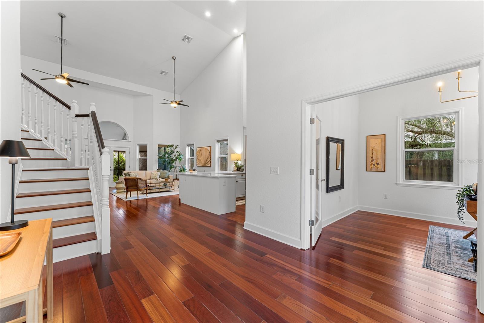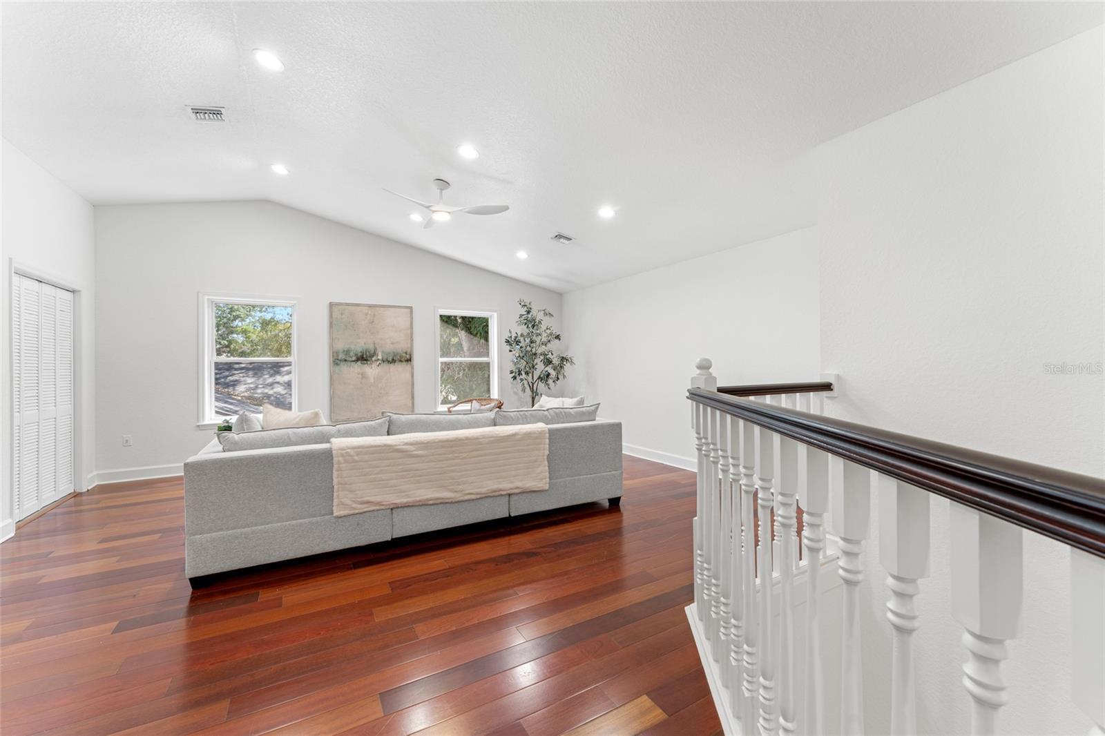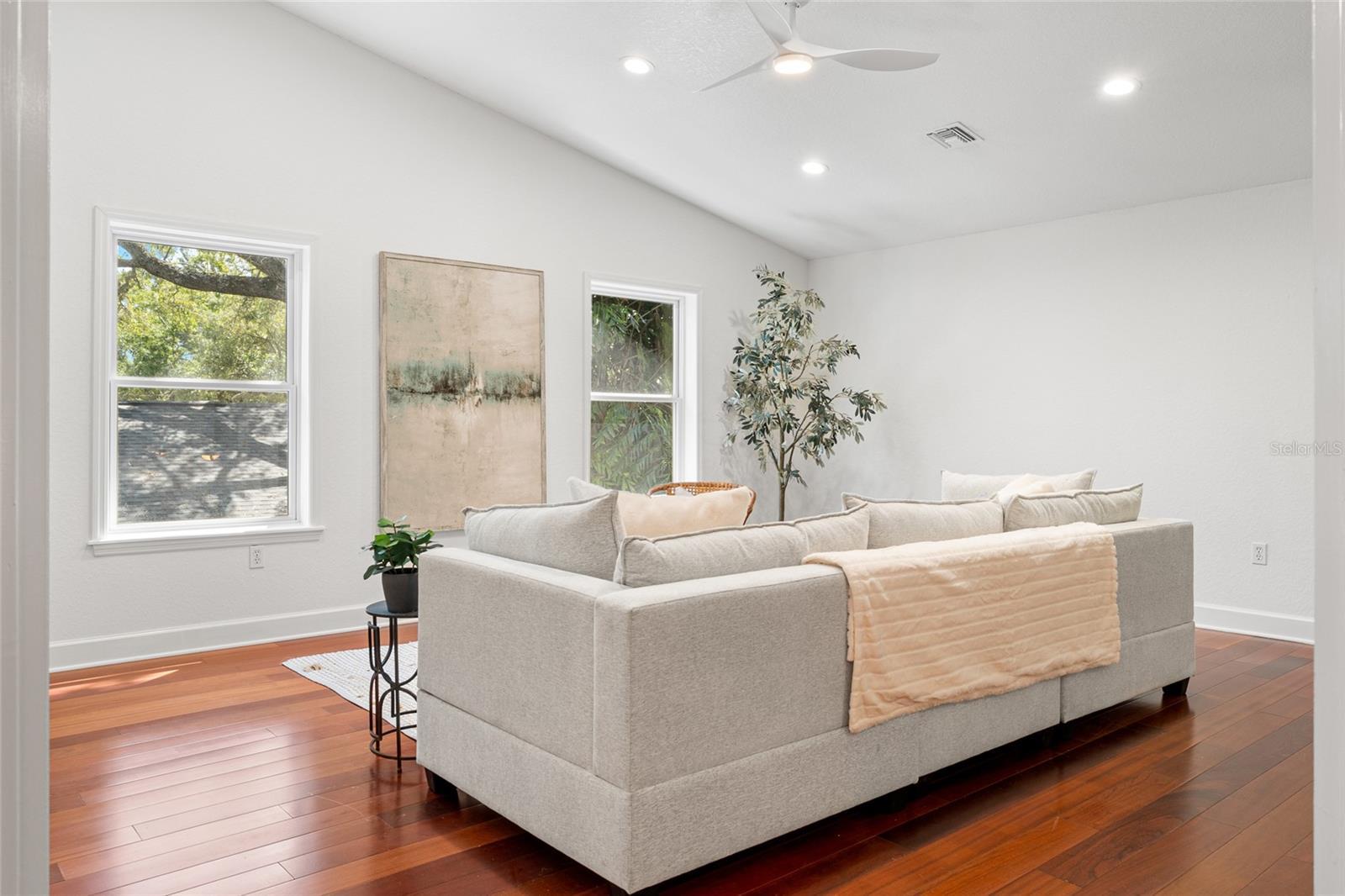 Under contract-accepting backup offers. Nestled in the heart of highly sought-after Bayshore Beautiful neighborhood, this expansive South Tampa residence spans over 3,200 sq ft on a generous 70x120 lot, offering both privacy and presence in a premier location. Open the elegant double glass doors to be greeted by soaring cathedral ceilings, rich hardwood flooring and an abundance of natural light. The open layout offers multiple living and dining areas, perfect for both entertaining and everyday comfort. Thoughtfully updated throughout, this residence blends timeless charm and fresh designer finishes. The updated kitchen is open to all of the living spaces, has quartz countertops and backsplash, real wood cabinetry, ss appliances and bronze hardware. All bedrooms are located on the first floor with split floor plan. Primary bedroom has french doors giving you access to screened in back porch, double walk in closets, ensuite bathroom with private water closet, linen closet, massive shower and double vanity. Secondary bedroom has updated ensuite bathroom and ample closet space. Bedroom 3 & 4 are spacious and in close proximity to the updated 3rd bathroom. Upstairs offers an additional loft with private insulated room that can be used as home theatre, 2nd home office, workout room, playroom, library, (easy convert to 5th bedroom), etc. Your imagination is the limit! Outside, enjoy a vaulted screened in porch, over looking plenty of backyard space with room for a pool. The exterior construction of the home is cement based Hardie board siding to resist moisture and pests. Originally built in 1943, home was completely rebuilt in 2001, and beautifully updated 2020-2025. This special home is only a few blocks from Bayshore Boulevard, offering easy access to scenic waterfront paths, parks, award winning restaurants and boutique shopping. Call to schedule your private tour of this truly special property.