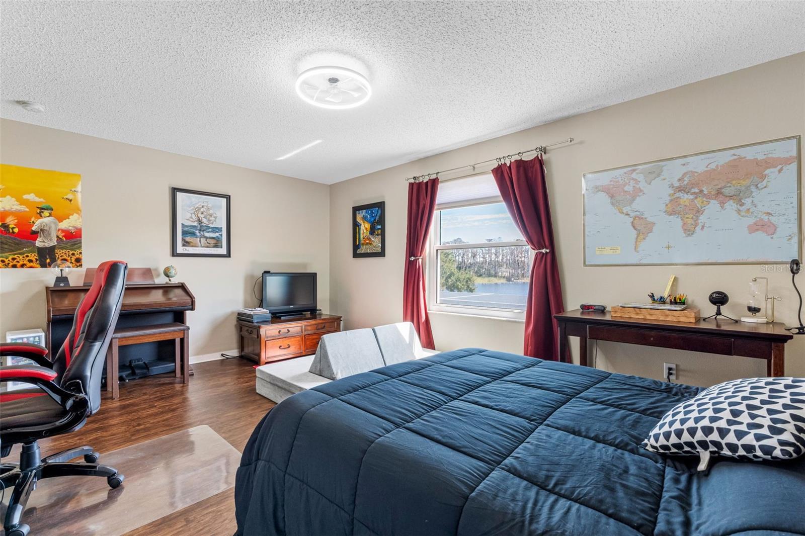Welcome to this 2-story house from 2001, with 5 spacious bedrooms with large closets and 3 full bathrooms, office, gym, heated pool with lake views, hurricane windows "2025", roof replacement "2019", exterior paint "2024", new appliances in the kitchen with granite countertop, within a small association of 103 houses and low annual fee. Distribution of the house: upstairs - 4 bedrooms, 2 bathrooms and family room. Ground floor - Guest room, 1 full bathroom, office, gym, living room, dining room, kitchen, dining room, laundry room with door for the dogs to a small and closed patio for them, swimming pool, garage for two cars. It is a safe, quiet and well-located area with excellent schools.
