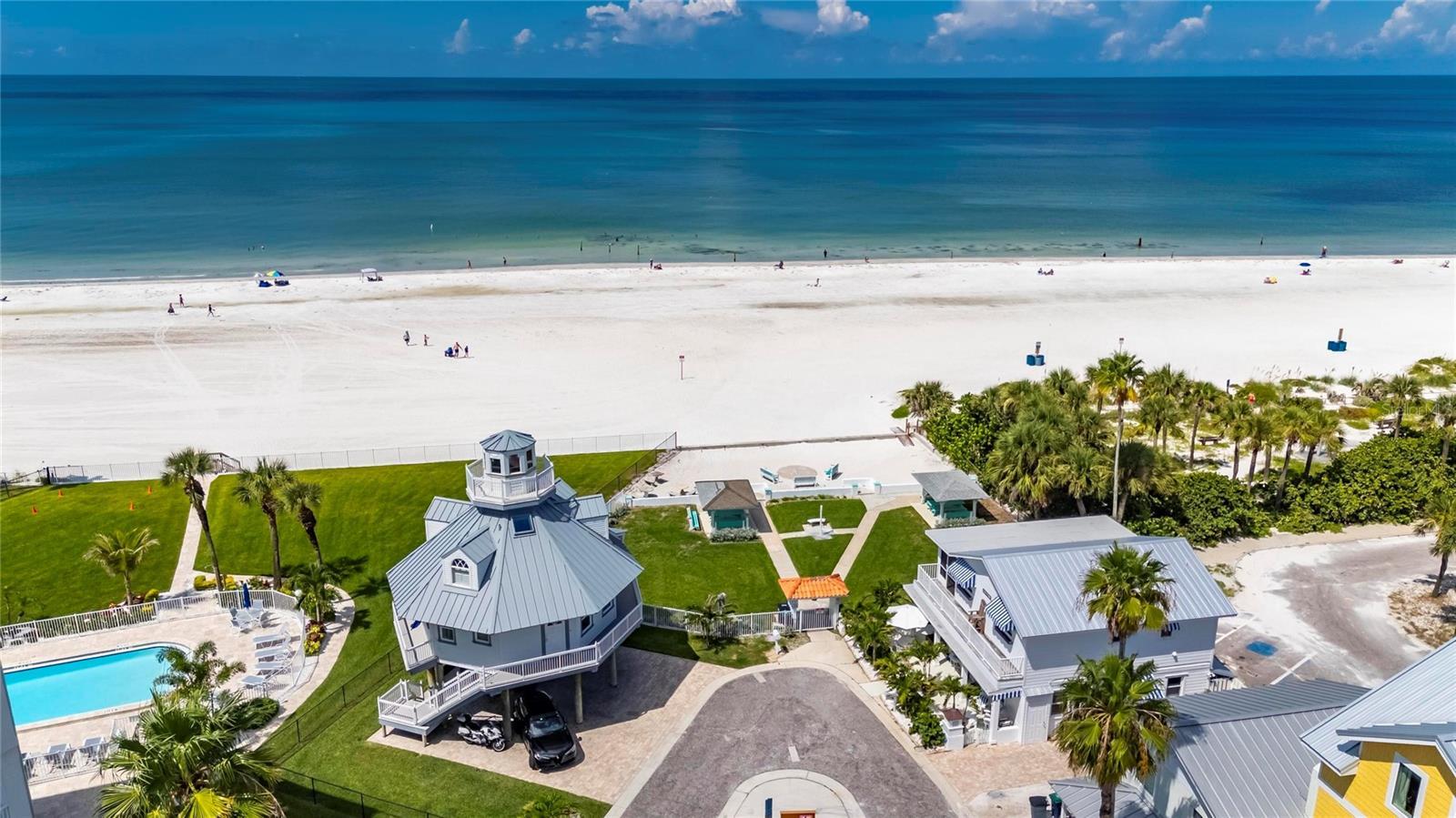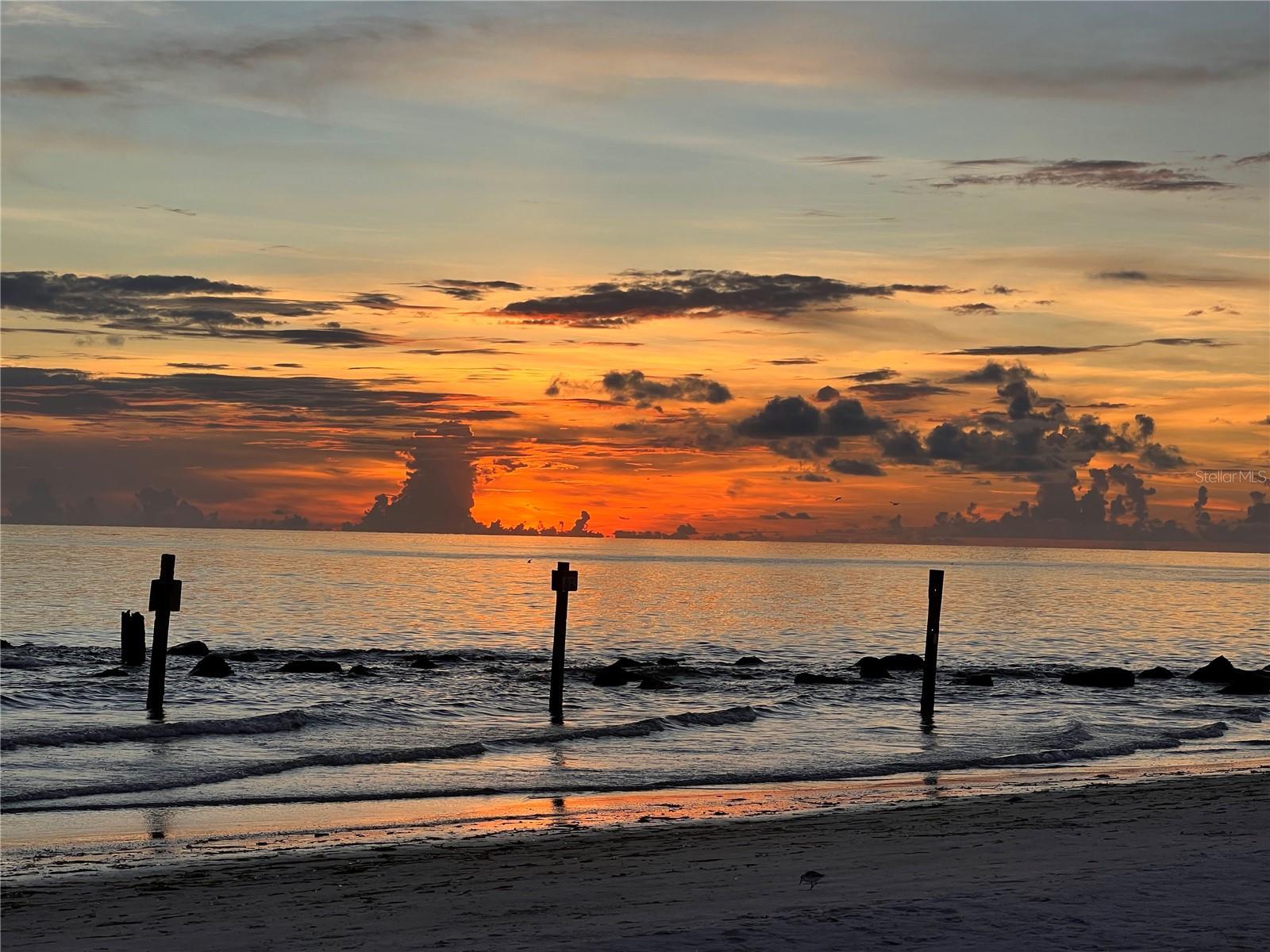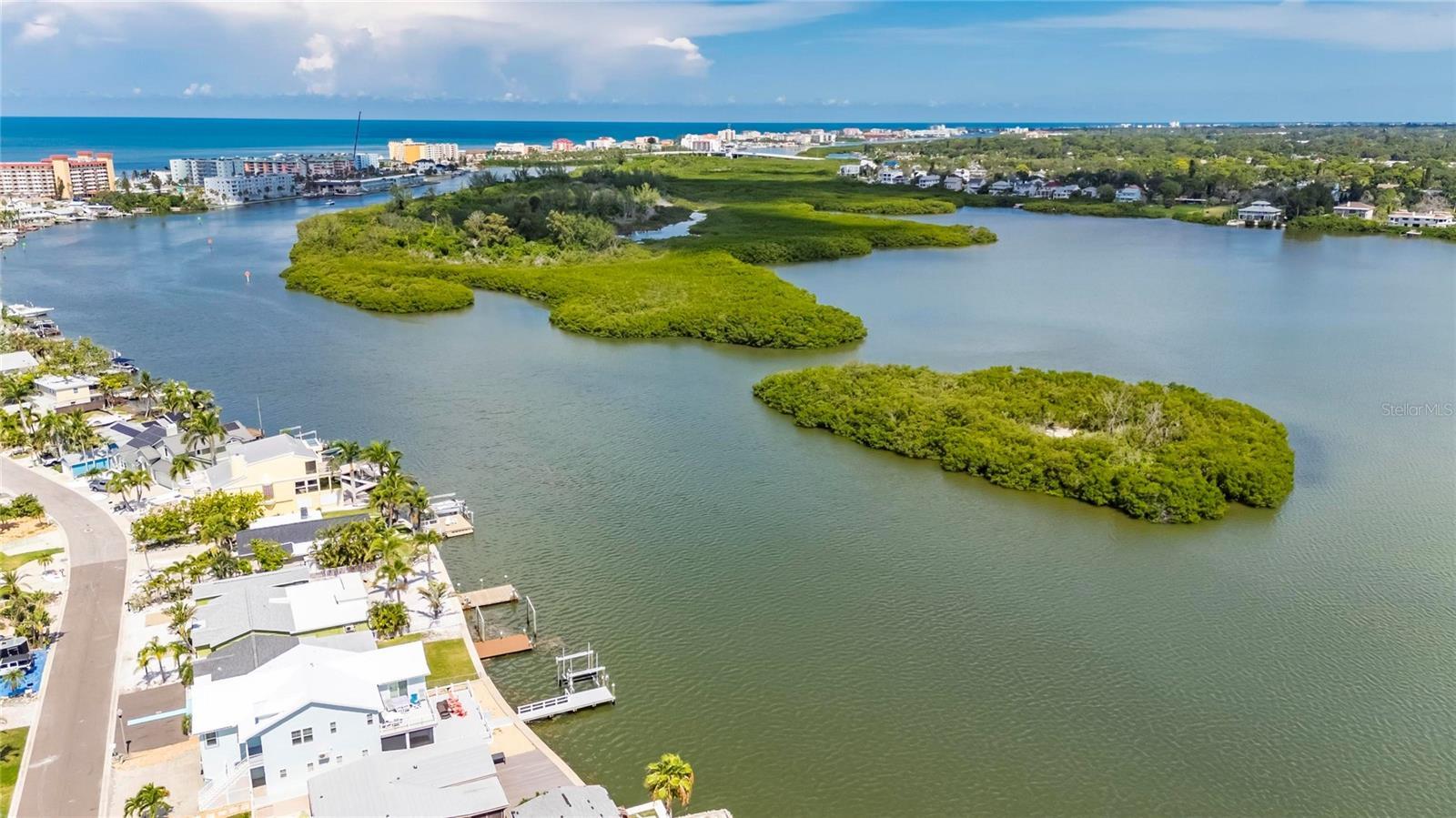 Under contract-accepting backup offers. Improved Price! Dreaming of the beach life? Come for a visit to this 3/2/2, 2-story, move-in ready home only a few blocks from your private beach access! Make a day of it and catch the sunset on the beach! This lovingly maintained home has been freshly painted, outfitted with new exterior fiberglass doors which won't weather or warp and its pavers resealed for its new Owners. Downstairs you'll find covered parking for two vehicles as well as a huge workshop space for all your hobbies. A fenced-in garden awaits a fire pit or your four-legged friends. Once upstairs, you'll immediately notice the light and airy feel of the open concept kitchen and living area and the sliding glass doors leading to your ample wooden deck with water views and coastal breezes; perfect for your morning coffee, an evening beverage or grilling out. The immaculate kitchen with all stainless steel appliances is bathed in natural light and has abundant storage. It's a home made for entertaining with its oversized stone top kitchen island and adjoining living area with easy-care, wood-look vinyl flooring. Enter the large primary bedroom for more water and palm tree views. The ensuite restroom is complete with a water closet, water-resistant cork flooring, a large shower with multiple shower heads, a built-in bench and a window for natural light. It's like having your own private spa! It gets better...walk through to find your enormous walk-in closet anyone would envy. The second bedroom is perfect as an office or den and the third bedroom will comfortably host family or friends. A second full bathroom holds a jetted tub for weekend or anytime relaxation. When you're not enjoying your beautiful, low maintenance home, stroll, jog, bike or ride to the shore, local eateries like the famous Candy Kitchen, a community playground or to the many local live music venues nearby. Don't wait to lock down one of the few, move-in ready, two-story homes on the market in Redington Shores. There's nothing like the beach life! Come find out for yourself.