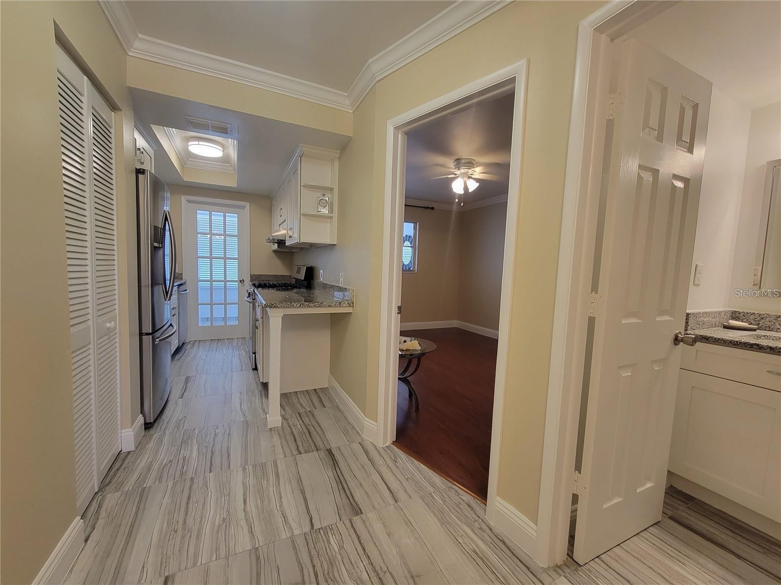 Discover this delightful 1 bed, 1 bath, with bonus room, long term rental. This well-maintained and UPDATED condo features wood-look vinyl flooring in the main living areas & ceramic tile in the kitchen, bath, and lanai. The condo is beautifully accented with crown molding & updated with granite countertops in both the kitchen and bathroom. The kitchen boasts STAINLESS STEEL APPLIANCES, soft-close white shaker cabinets, a pantry, DISHWASHER, and a GAS STOVE. A cozy breakfast bar/built-in desk is located at the end of the galley kitchen. The bathroom includes an exhaust fan for added comfort and has been updated! The spacious bedroom comes with a walk-in closet, and ceiling fans are installed in all living and sleeping areas. The finished lanai, filled with natural light from expansive windows, includes an IN-UNIT WASHER AND DRYER along with additional storage space. GAS, WATER, SEWER, AND TRASH ARE INCLUDED in the monthly rent, and One assigned parking spot is located next to the building, with ample guest parking available. The building does have an ELEVATOR only 2 doors down from this unit! Situated within minutes of Publix, Ace Hardware, and several restaurants, this condo is perfectly located. Rent is $1200 per month. First, last, and security deposit are due at lease signing. Tenant approval by the community is required. First Step is completing credit check application for the landlord (approx $40). Once that is approved, Second step is completing an online application for the association Town Arms that fee is $99. DO NOT APPLY until you've viewed the property AND passed the owners credit check.