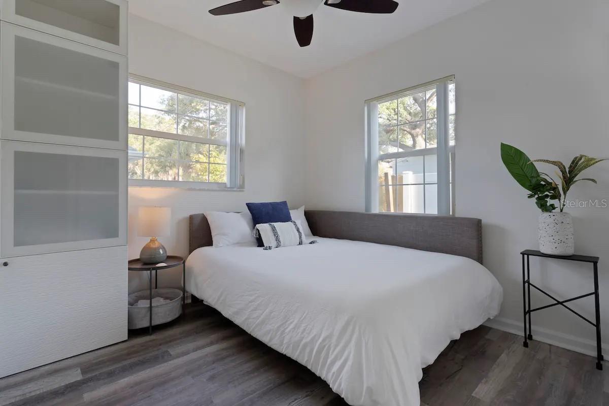 Discover this stunning Gulfport gem offering over 3,200 sqft of thoughtfully designed living space in a prime, walkable location—just minutes from the beach, marina, and downtown St. Pete. The main house features five bedrooms, including two luxurious master suites, three and a half bathrooms, two laundry rooms, and a 1-car garage with driveway. Also on the property is a detached pool house with ample living space, a full bathroom, kitchenette, and air conditioning—ideal for guests, a home office, gym, or creative studio. Optional fully furnished purchase available—just bring your suitcase! Inside the main home, enjoy two inviting living areas, a gourmet kitchen with granite countertops, stainless steel appliances, and breakfast bar, plus a dining room that comfortably seats ten. Step outside to your private backyard retreat featuring a heated pool and a grill area perfect for outdoor entertaining. Located outside of a flood zone and never impacted by storm or hurricane damage, this home offers peace of mind and unbeatable access to Gulfport’s vibrant shops, dining, and coastal charm. Utilities not included.