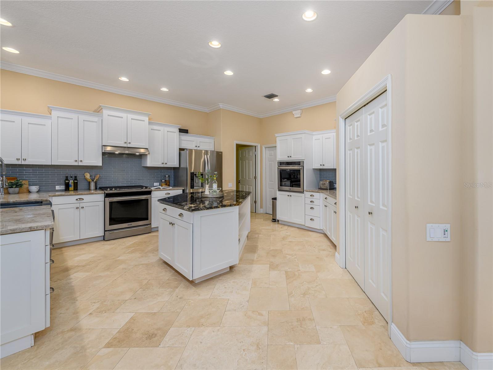 - Built-in Features, Ceiling Fans(s), Coffered Ceiling(s), Crown Molding, Eat-in Kitchen, Kitchen/Family Room Combo, Other, Primary Bedroom Main Floor, Stone Counters, Thermostat, Tray Ceiling(s), Vaulted Ceiling(s), Walk-In Closet(s)