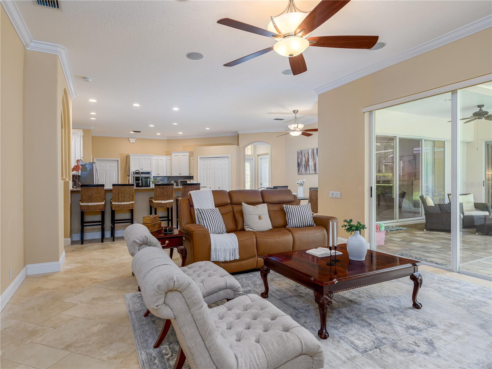 “Welcome to your exquisite beautifully maintained move in ready Arthur Rutenberg home situated behind 2 separate gates of the prestigious village of Enclave in Arbor Greene. Set on an oversized corner lot of more than half an acre, this home offers rare privacy with lush mature landscaping and quiet established conservation views. This family home has ample room for visiting guests. If desired, the perfect single level retirement home. The spacious floor plan offers 5 bedrooms (one with built in desks and storage), 3 full bathrooms and a large bonus room with conservation views. The main house is paved in Travertine stone, other areas with porcelain wood plank tile, and with brand new carpeting in the Primary Suite. Both the formal and informal living areas open seamlessly through disappearing pocket sliders to an oversized screened lanai and pool deck - perfect for entertaining, relaxing or simply enjoying Florida living at its best! The Chef’s Kitchen opens to the family room and has a large center island with extra storage, granite counter tops, 42” white wood cabinets with slow close drawers and doors, closet pantry, sprawling breakfast bar and breakfast nook with views of the pool and conservation land. Architectural bonuses feature a formal living room with coffered ceiling, private Primary Suite with tray ceiling, and office and family room built-ins. Primary suite features a large bedroom that has access to the pool lanai, with a wall of windows with plantation shutters that views the pool and conservation. The Primary suite includes two large walk-in closets. The Primary bathroom has separate sinks with granite counter tops, a Jacuzzi garden tub, and large walk-in shower. Two spacious secondary bedrooms share a Jack and Jill bathroom with double sinks with granite counter tops. The 4th bedroom near the back of the house, adjacent to a bathroom across the hall and the bonus room could be used as a guest or mother-in law suite. The saltwater pool, with an in floor cleaning system and solar heater, is surrounded by a paver deck, extended screened lanai and conservation views. House includes a 3-car Garage. Recent full home inspection, 4 point inspection, and certified roof inspection were performed. The roof received a 15-year certification from the licensed roof inspector. Arbor Greene residents enjoy 24 hour gated security, resort-style amenities, community pools, fitness center, tennis courts, playgrounds, and miles of walking trails. This property’s prime location offers both tranquility and convenience, with top-rated schools, shopping, dining, and major highways just minutes away. Don’t miss the opportunity to own one of the most desirable home sites in Arbor Greene—an oversized conservation lot paired with a meticulously cared-for home with truly outstanding curb appeal.”
