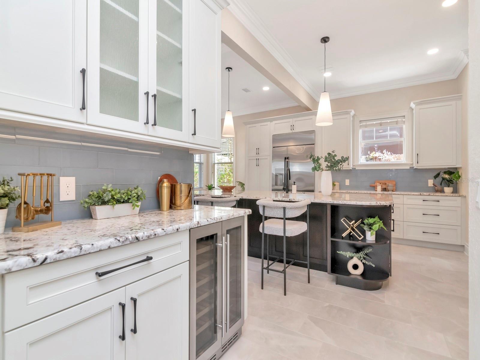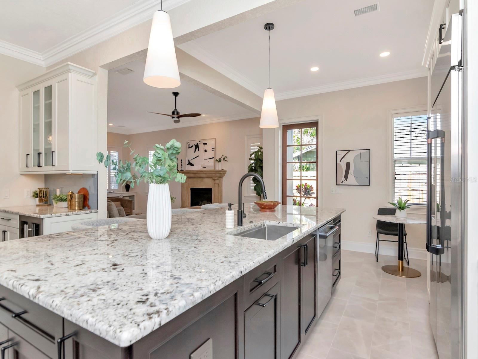 Welcome to this beautifully updated home in the heart of Palma Ceia Park in a top-rated school district where every detail has been thoughtfully designed - blending luxury upgrades with everyday functionality. This stunning home features a fully renovated chef’s kitchen with GE Café appliances, 2-zone wine fridge (reds and whites), Sharp drawer microwave, 6-burner gas range including a wok burner, custom backsplash, huge island with lots of additional storage and cookbook shelves, large single bowl stainless steel sink, new lighting including under the cabinet lighting, custom tile detail over the cooktop, granite counters, 42” cabinetry with crown detail, 2 pantries and a trash pull-out. The adjacent spacious family room has a gas fireplace, brick accent wall with twin built-ins on either side, and is open to both the kitchen and dining room. Located at the front of the home is a home office (French doors for privacy) or it could easily serve as a more formal space – a baby grand piano would be perfect in this space. The primary suite boasts an oversized bedroom, a massive custom closet, and a second closest for additional clothes, shoes or storage. The primary bathroom features a double vanity with undermount sinks, raised granite counter, jetted soaking tub, large walk-in shower with bench and two shower heads, linen closet, and a private WC. All secondary bedrooms are oversized with generous closets. The upstairs laundry room has upper and lower cabinets and a hanging bar. The downstairs powder room is outfitted with upgraded Kohler fixtures. Additional features to note: staircase risers with custom mosaic tiles, solid 8’ doors, plantation shutters and wood blinds throughout, crown molding, surround sound in family room, 1st level hallway, primary suite, and back porch. The pool and pavered deck are a lovely private oasis, and the backyard is completely fenced. Recent updates include new roof (2025), 1st-floor HVAC condenser (2025), 2nd-floor HVAC (2024), and tankless gas water heater (2023). Palma Ceia Park is centrally located in South Tampa – the Bayshore and over 20 restaurants are within walking distance! MacDill AFB, downtown Tampa and Water Street, Selmon Expressway and all major roads and shopping are just a short drive away. The following are not warranted: front and backyard fountains and water softener. Sellers and previous owners never had the need to use the pool heater; therefore, it is not warranted.