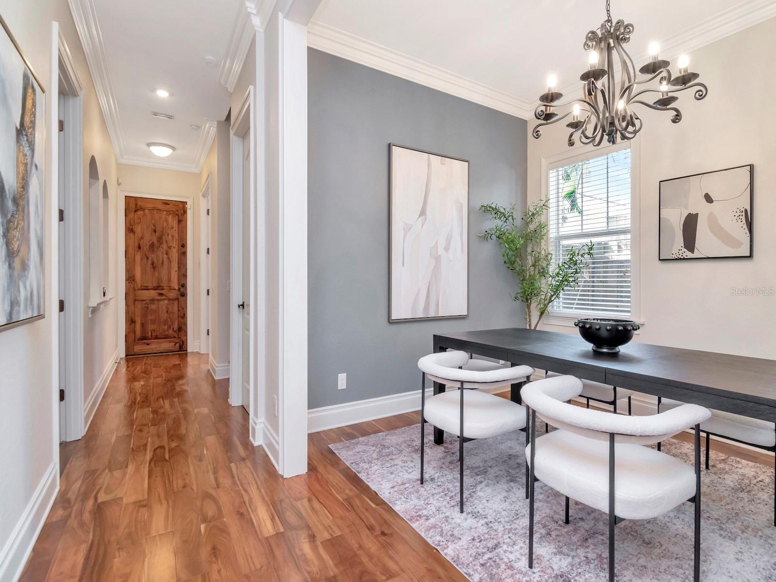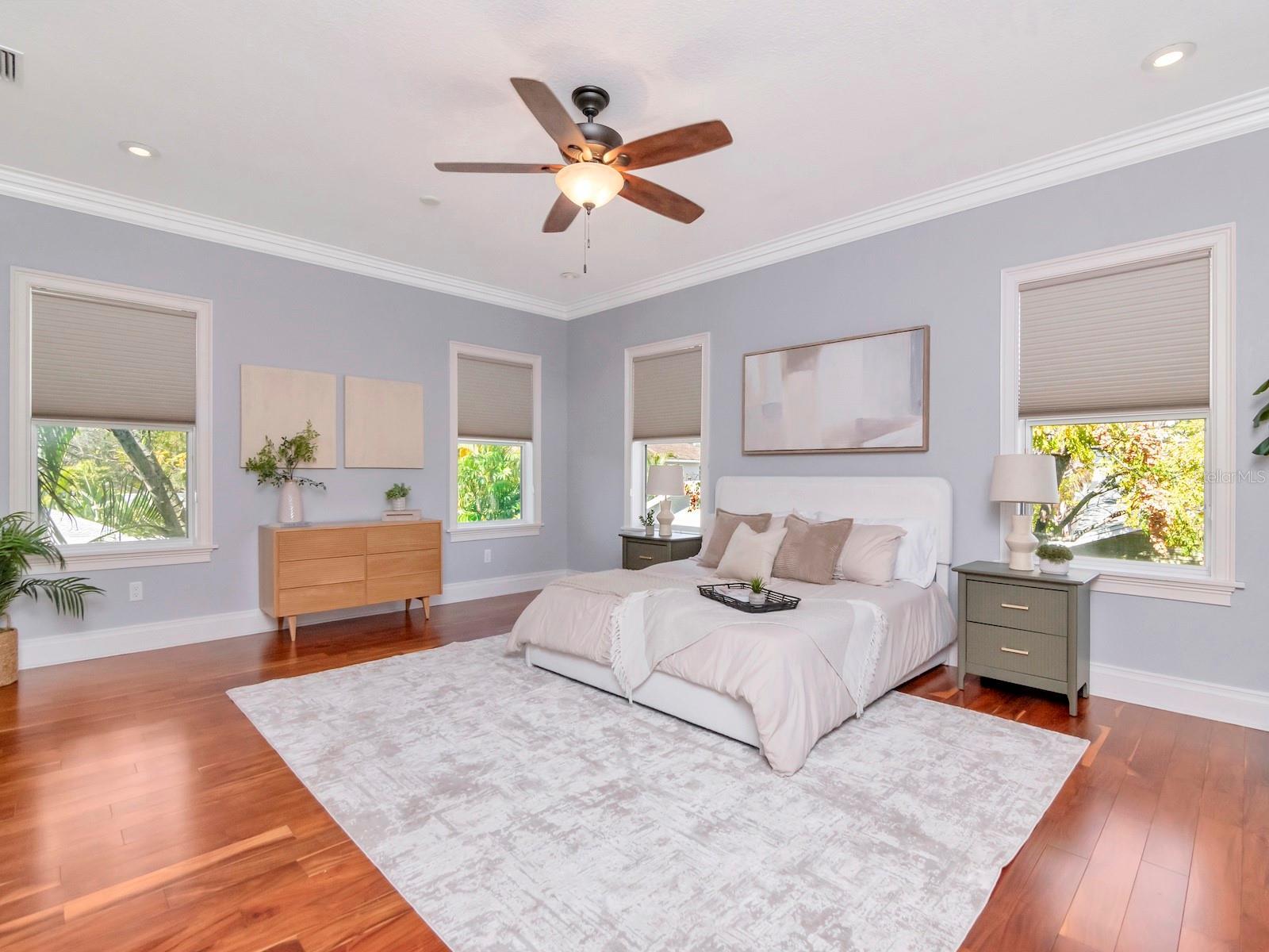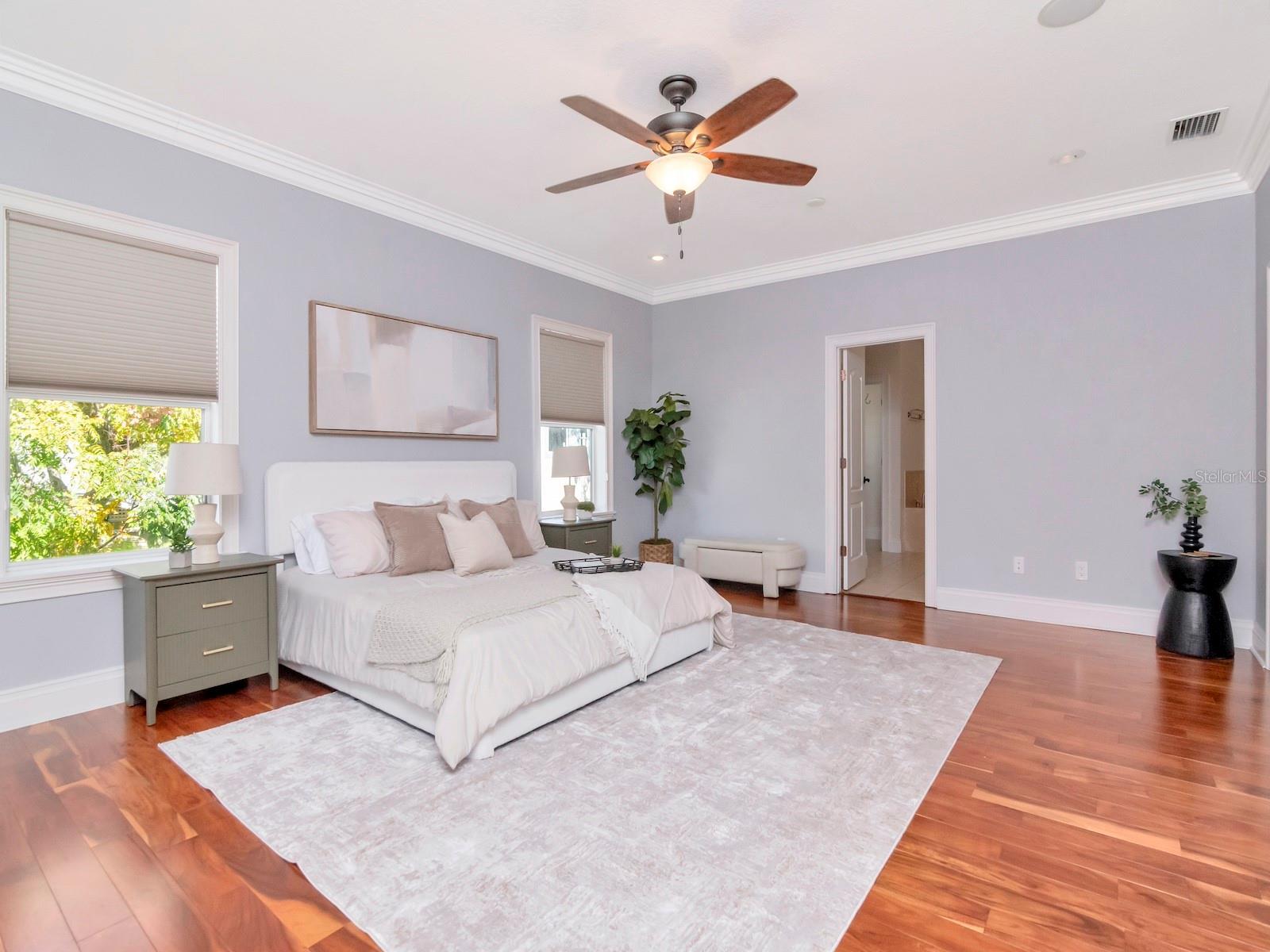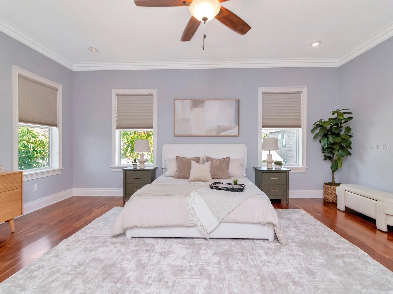 - Crown Molding, Eat-in Kitchen, High Ceilings, Kitchen/Family Room Combo, Open Floorplan, PrimaryBedroom Upstairs, Stone Counters, Walk-In Closet(s), Window Treatments