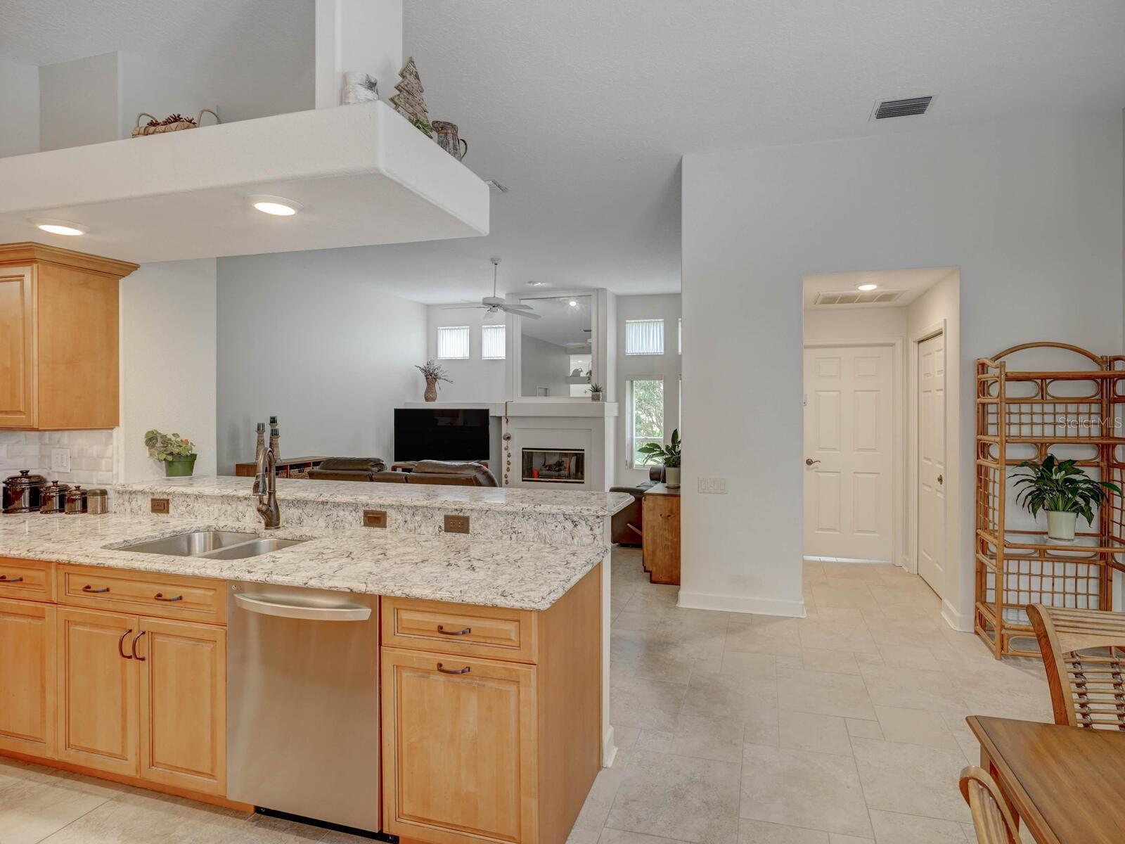 - Ceiling Fans(s), Eat-in Kitchen, High Ceilings, Kitchen/Family Room Combo, Living Room/Dining Room Combo, Solid Surface Counters, Solid Wood Cabinets, Split Bedroom, Walk-In Closet(s)