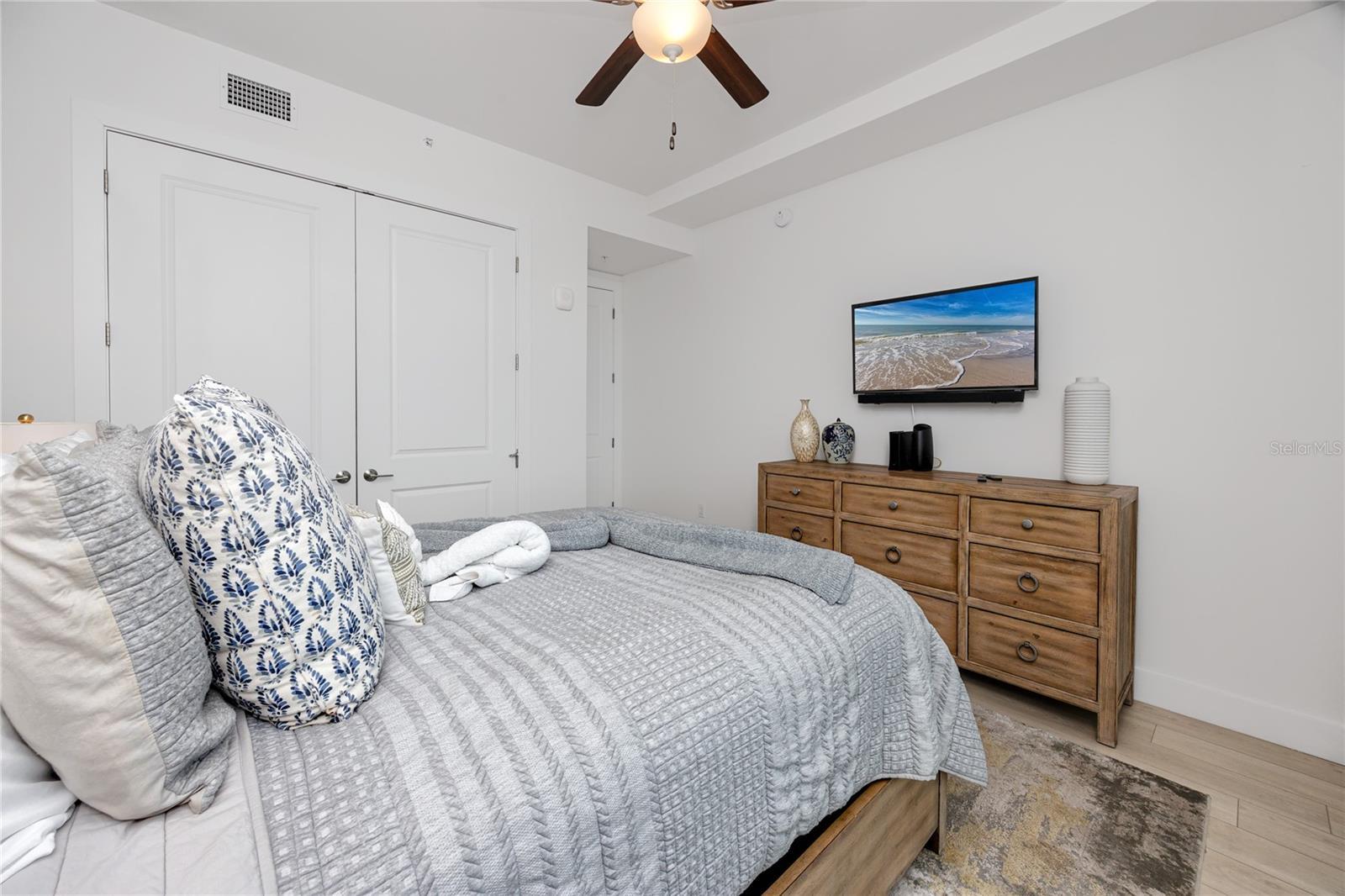 Under contract-accepting backup offers. Welcome to The Harbor at Madeira Beach, where modern coastal elegance meets exceptional investment potential. Built in 2022, this immaculate 3-bedroom, 3-bath luxury condo with a private office offers the rare combination of high-end finishes, spacious design, and short-term rental eligibility—making it ideal for both full-time living and income-producing use. Step inside and experience a bright, open layout with soaring ceilings, woodgrain luxury vinyl flooring, and designer pendant lighting. The chef’s kitchen is a true showpiece, featuring solid wood soft-close cabinetry, quartz countertops, a glass subway tile backsplash, premium stainless steel appliances, and a large center island with breakfast bar seating. Perfect for entertaining, the kitchen flows seamlessly into the dining and living areas, all opening onto a private balcony through hurricane-rated sliders with sweeping sunset views over Madeira Beach. The primary suite is a serene retreat, highlighted by an oversized walk-in closet with custom California-style built-ins, private balcony access, and a spa-inspired ensuite bath with dual vanities, quartz countertops, built-in shelving, a soaking tub, and a separate glass-enclosed shower. A split floor plan provides privacy, with two additional spacious bedrooms—each with custom closets and French door entry—plus two additional full baths. A dedicated office with French doors offers the flexibility of a work-from-home space or guest room. Designed for convenience, this condo includes an in-unit laundry with built-in cabinetry, two assigned under-building parking spaces, and private storage for beach essentials. Resort-style amenities enhance the lifestyle, including a heated pool and spa overlooking the harbor, a state-of-the-art fitness center, and secure key-fob access to the lobby and gated garage. Perfectly situated in Madeira Beach Town Center, residents are just steps from the waterfront recreation park, City Hall, library, and post office, and minutes from the world-famous John’s Pass Village & Boardwalk. With direct access to shopping, dining, and entertainment—and all the Gulf Coast beaches nearby—this location offers unmatched convenience and appeal. As one of the few luxury buildings in Madeira Beach allowing short-term rentals, The Harbor presents a rare opportunity to own a beautifully maintained, income-generating coastal property. Whether you’re seeking a personal retreat, a part-time residence, or a high-demand STR investment, this condo delivers on every level. Schedule your private showing today and discover why Madeira Beach continues to be one of Pinellas County’s most desirable destinations for both living and investing.