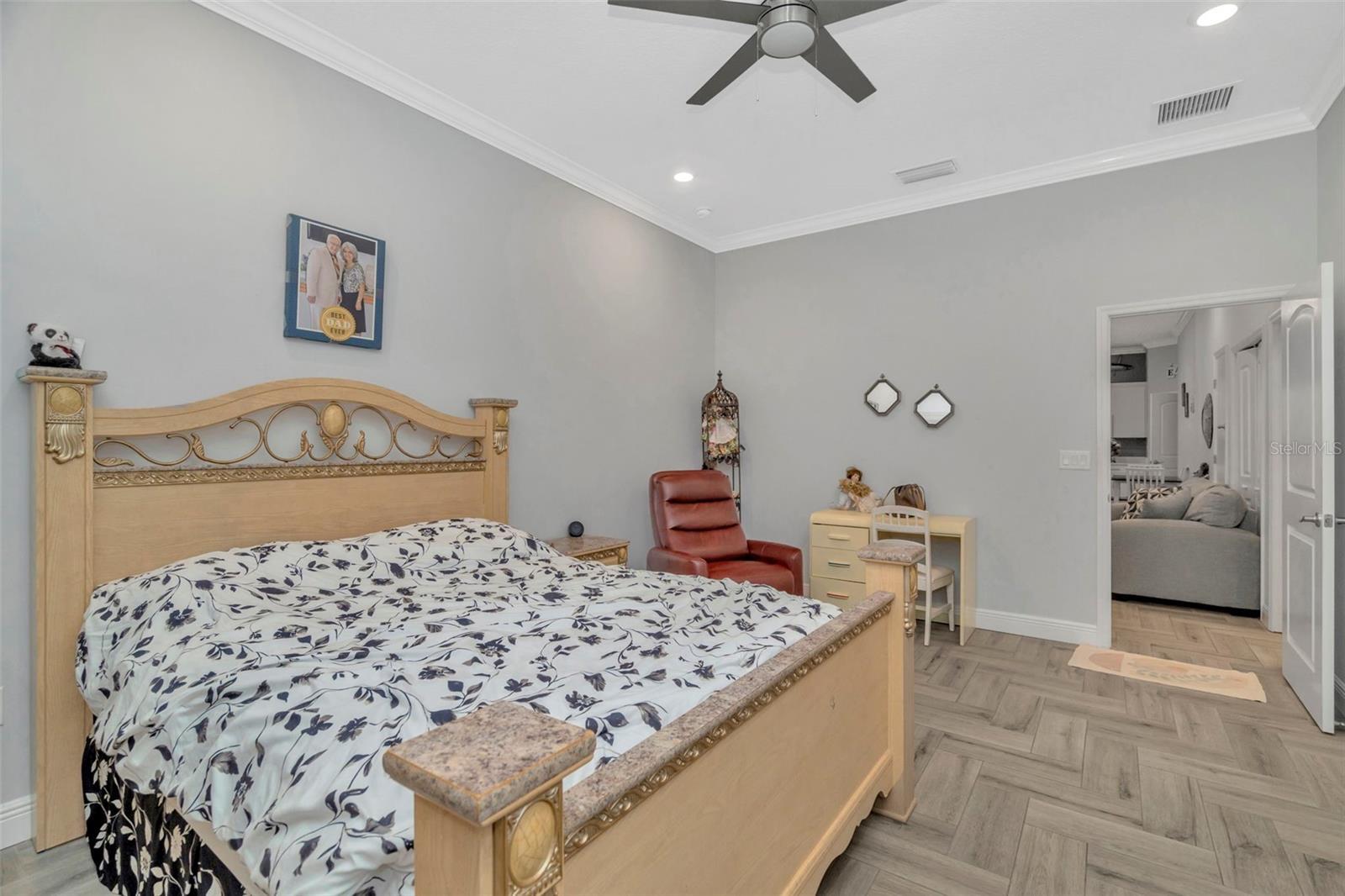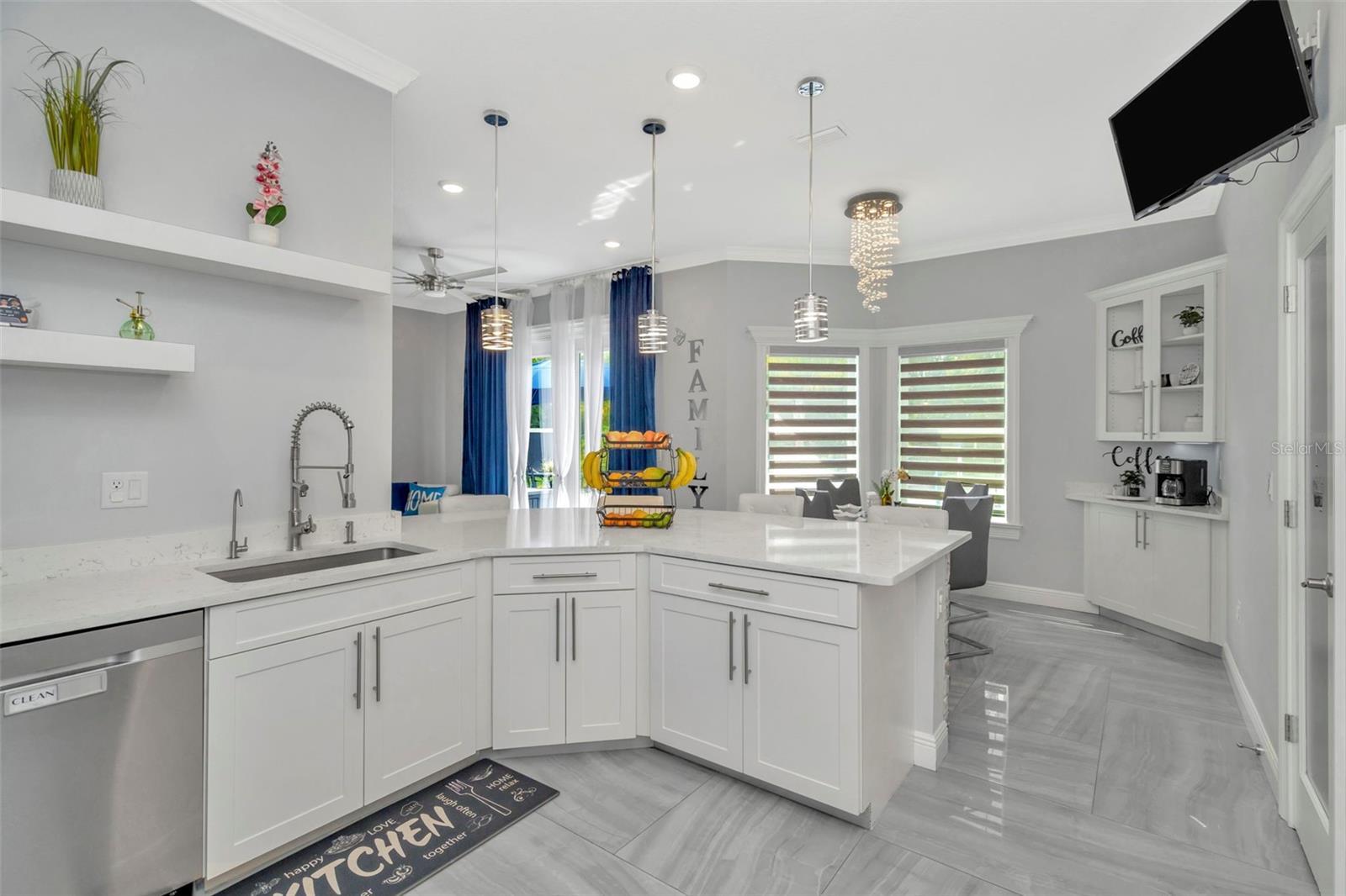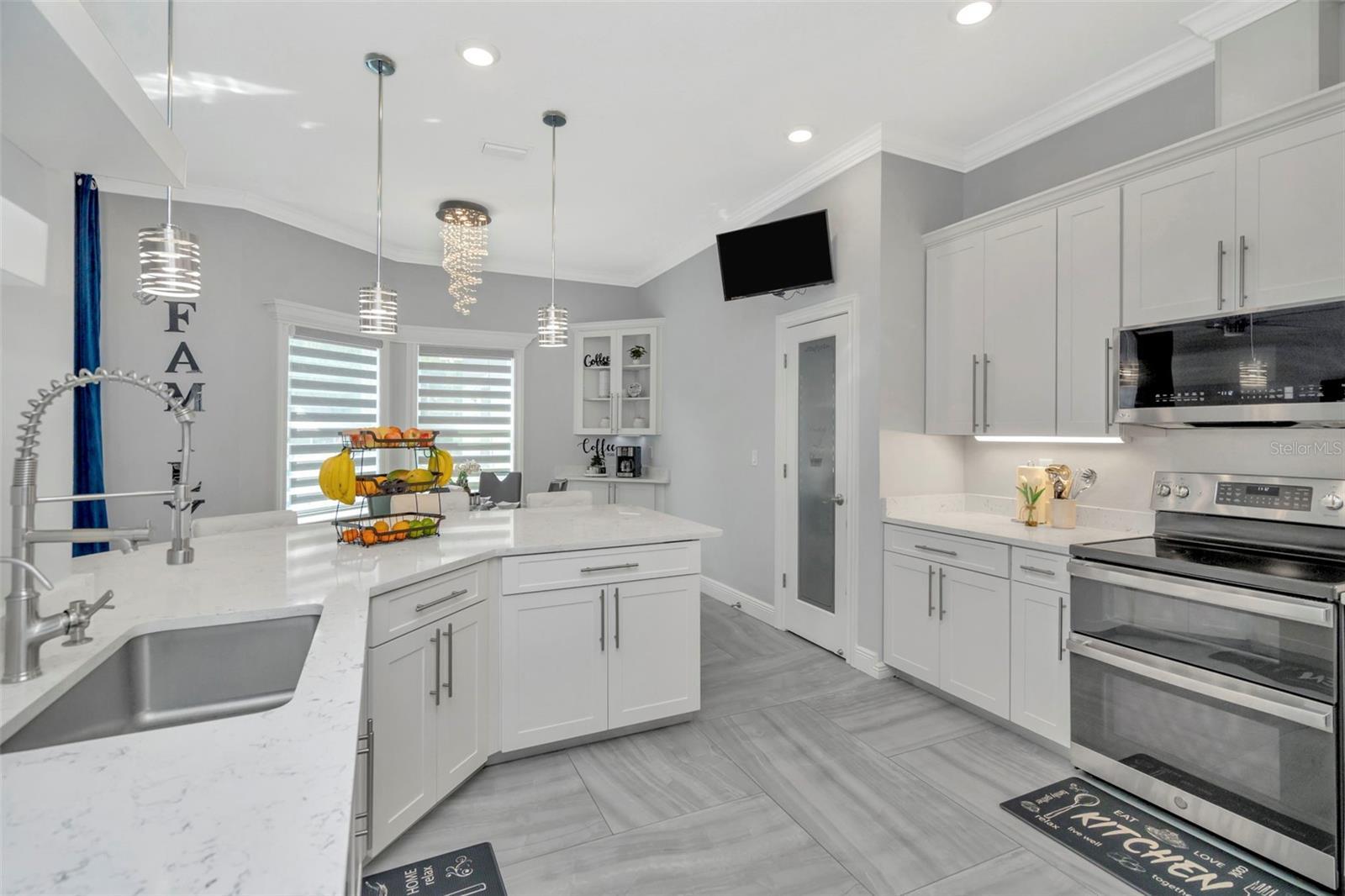 - Cathedral Ceiling(s), Ceiling Fans(s), Crown Molding, Eat-in Kitchen, High Ceilings, Primary Bedroom Main Floor, Solid Surface Counters, Solid Wood Cabinets, Stone Counters, Thermostat, Tray Ceiling(s), Vaulted Ceiling(s), Walk-In Closet(s), Window Treatments