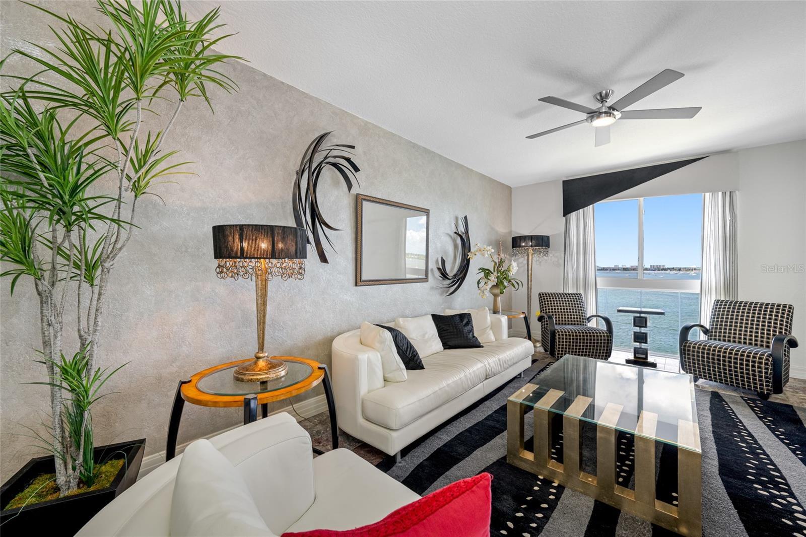 Now being offered for the very first time! An exceptionally rare and exquisite 5 bedroom, 4 bath, corner penthouse unit is now available in the "A Bldg" of Dolphin Cay. Enjoy the luxury of wide water views from the wraparound balcony or chose to unwind on one of the other two balconies with scenes of downtown St Petersburg and the Sunshine Skyway Bridge in the distance. This home includes many high end, custom improvements to include the kitchen, baths, marble flooring, shutters, and a gold foiled entry ceiling. The kitchen is a cook's dream with a Sub-Zero refrigerator, double ovens, generous storage and workspace and water views as you work! Two assigned under building parking spots are included in the sale along with an exterior, shared storage room. Dolphin Cay is a gated, manned security, resort style community offering pools, tennis courts, a fitness center with locker rooms and saunas, a private beach, a gathering center; "The Casino", electric car charging and car washing stations. The Milestone Inspection is complete and available for review upon request. Also, the Antigua building's roof and elevators have been replaced within the past three years, and exterior painting was completed in August 2025. Up to TWO pets under 30 pounds are welcome and annual rentals are permissible.