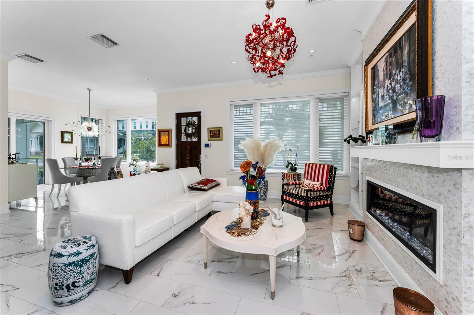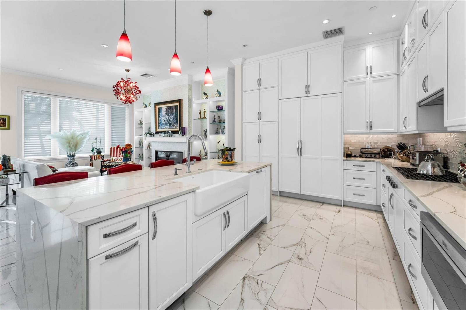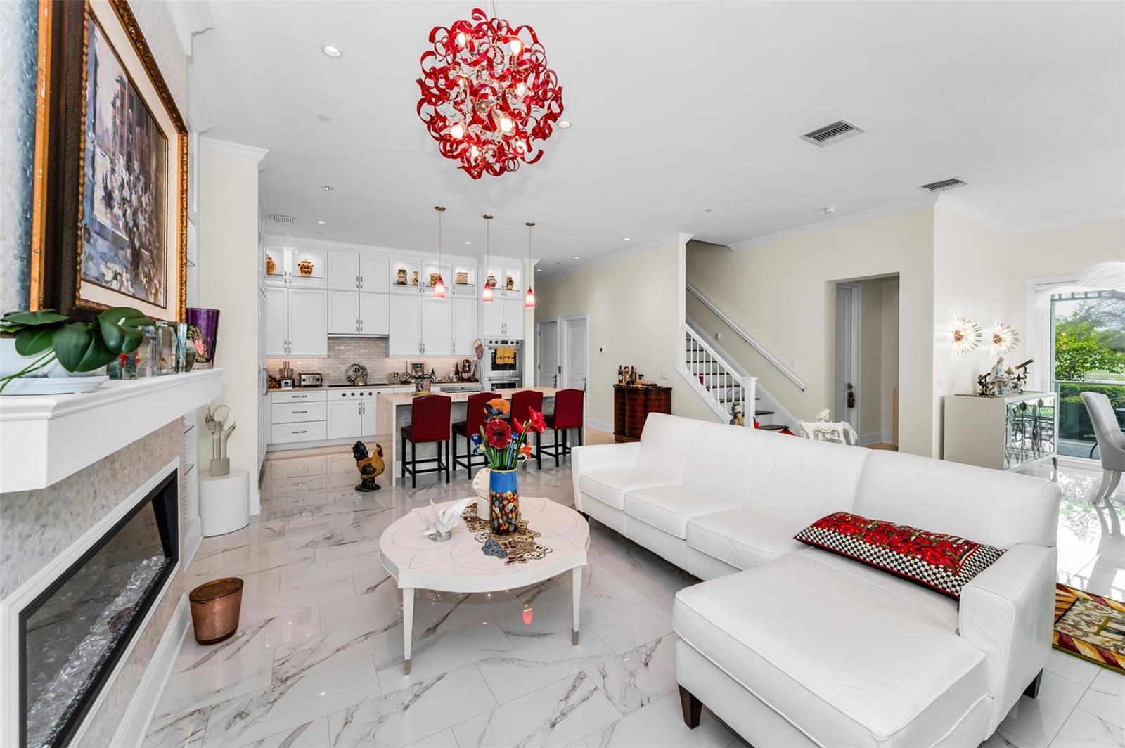 Experience Elevated Living in Carriage Homes at Belleview Place! This stunning 3-bedroom, 3-bath townhome offers luxury living in a prime location, nestled within the renowned Belleair Country Club and just minutes from the pristine Gulf beaches. Built in 2020, this home was constructed with the highest standards, this gated community provides comfort, security, and convenience with 24-hour security and a private in-unit elevator. Since it was built, there have been roughly $100k worth of updates done to truly make this a one-of-a-kind home! As you step inside, you're greeted by an abundance of natural light that highlights the spacious open-concept floor plan. Motorized blinds throughout the first and second floors allow effortless control of lighting and privacy. The main living area is anchored by a striking fireplace adorned with a mother-of-pearl backsplash, surrounded by an illuminated custom bookcase, also adorned with mother-of-pearl backsplash; a truly elegant focal point. In the living room, a stunning Murano lamp (included in purchase) from Murano, Italy adds a unique touch of European charm as well as a sense of uniqueness. The gourmet kitchen features custom cabinetry, sleek quartz countertops, SUB-ZERO, WOLF & COVE appliances, and a large walk-in pantry. The adjacent private wine room, which can also serve as an additional oversized primary suite, features a large Cedar closet, perfect for special items and fur coats. This room offers a serene retreat with earthy tones perfect for unwinding or entertaining. Upstairs, the primary suite includes a luxurious en-suite bath with a large linen closet, rainfall glass shower doors with water-repellent treatments, and rainfall shower head; exactly what can be throughout all of the en-suite bathrooms. The walk-in closet has a Cedar Closet built in as well; adding additional convenience when it comes to storing special items. Step out onto your private balcony, just outside of the primary bedroom. Here you will catch some of the most breathtaking sunsets Florida has to offer. Additionally, just off of the upper landing you'll find a cozy den offering another versatile space to relax or work. The air handler on the second floor, upgraded just 4 years ago, is equipped with a dehumidifier and air scrubbers (added 3 years ago) for enhanced indoor air quality and comfort. Additional highlights include: Motorized blinds throughout both floors, Mother-of-pearl accents on the elevator panels, Large 2-car garage in the rear with tankless water heater, water softener, and a small patio perfect for grilling, Laundry room on the first floor with custom cabinetry, granite countertops, and a Kohler farmhouse sink. No flood zone and no flood insurance required, as this property is situated on one of the highest points in Pinellas County. You’ll also enjoy access to golf, tennis, and marina amenities, making this a truly rare opportunity to own a slice of Belleair’s finest lifestyle. Schedule your private showing today and experience the perfect blend of elegance, comfort, and convenience. Furnishings negotiable.