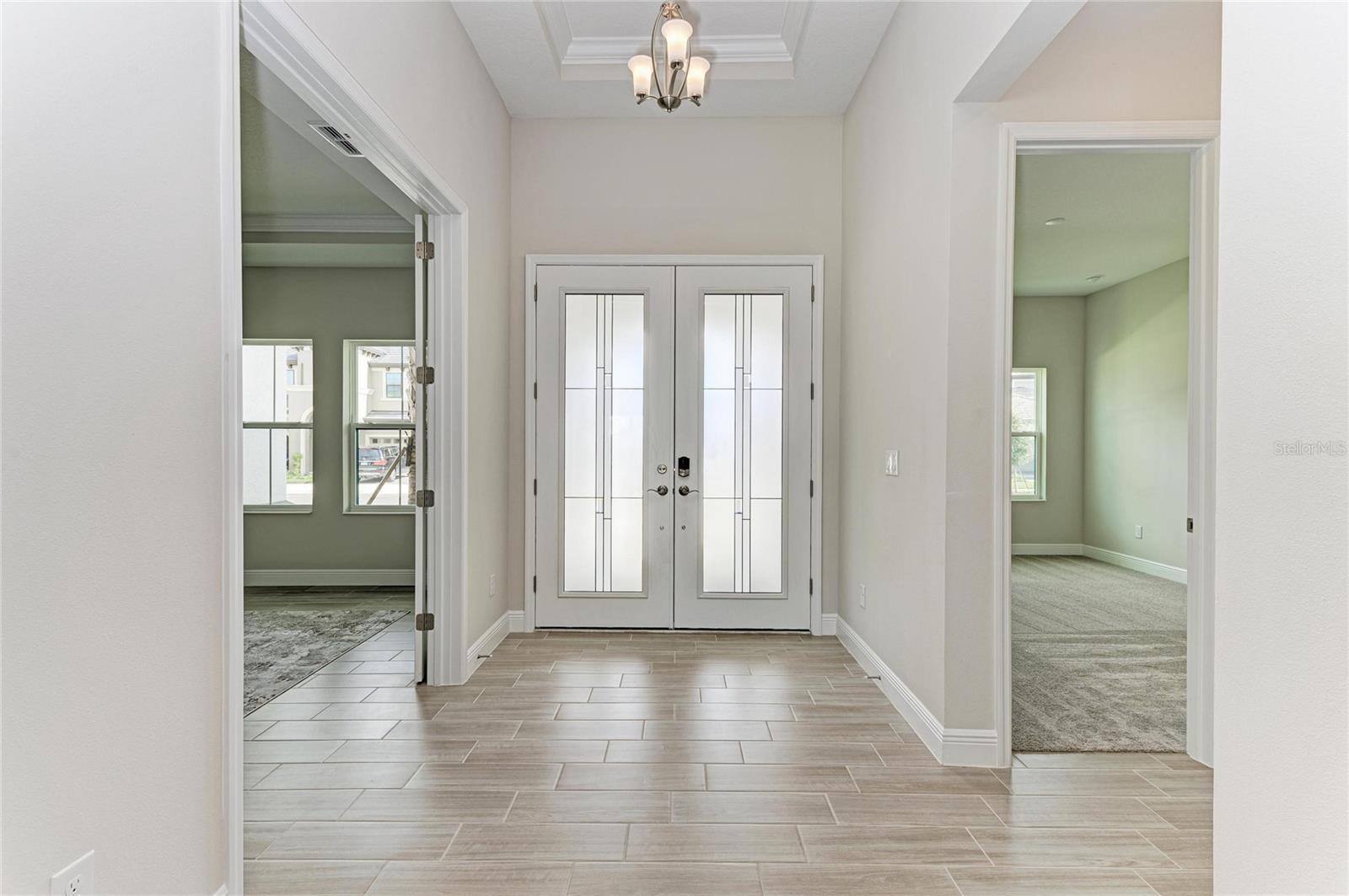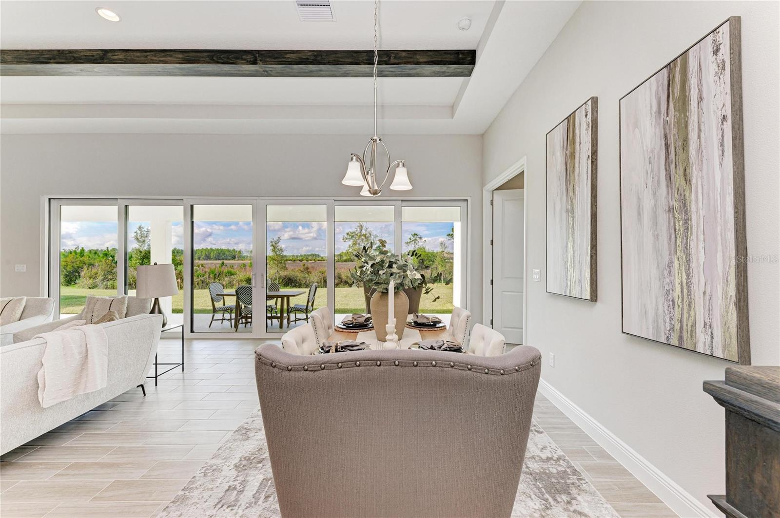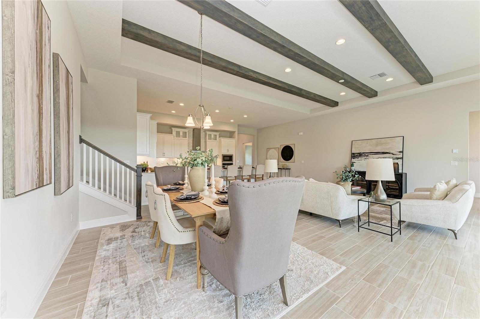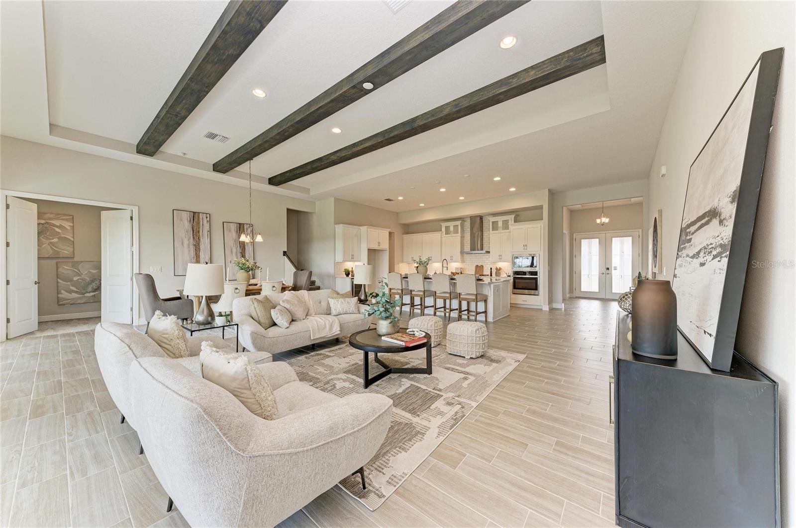 Cedar Key II - This Cedar Key II home is ready for move-in and features Sonoma Duraform Linen cabinets, Frost Whte MSI Quartz countertops, and Odyssey Renew Birch WLT flooring. The bright, breezy layout flows seamlessly from the foyer into the expansive living spaces. With impressive 12-foot ceilings in the foyer, formal dining room, grand room, and gourmet kitchen, the home offers a strikingly open atmosphere. The lavish downstairs owner's retreat has a double door entry, spacious walk-in closets, and a luxurious owner's bath. Additionally, the home includes ample secondary bedrooms, a generously sized laundry room, and expansive outdoor living space with a covered lanai. Upstairs, you'll find an extended bonus room, an extra bedroom, and a bath. Please note: This home is professionally staged.