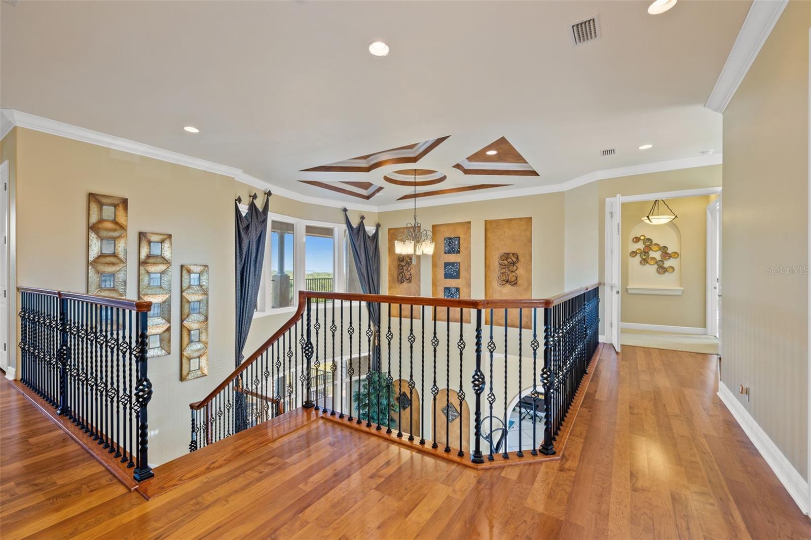 - Built-in Features, Ceiling Fans(s), Coffered Ceiling(s), Crown Molding, Eat-in Kitchen, Elevator, High Ceilings, Kitchen/Family Room Combo, Open Floorplan, PrimaryBedroom Upstairs, Solid Wood Cabinets, Split Bedroom, Stone Counters, Thermostat, Tray Ceiling(s), Vaulted Ceiling(s), Walk-In Closet(s)