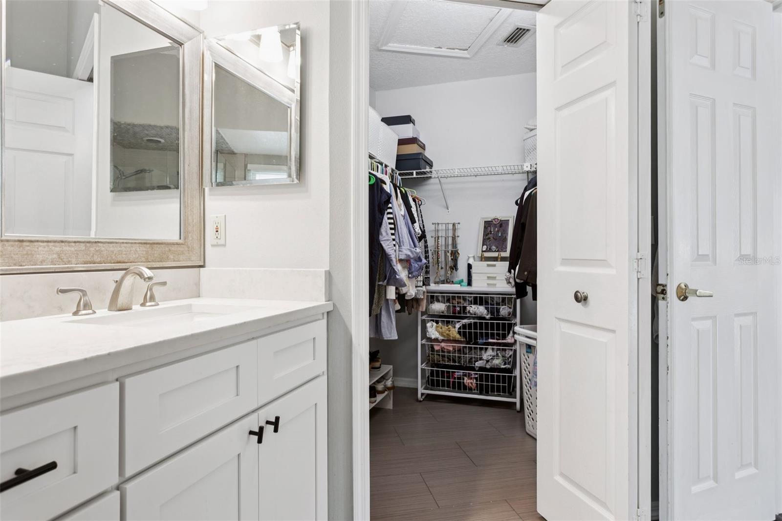 Under contract-accepting backup offers. CHECK OUT THE 3D VIRTUAL TOUR! Beautifully maintained 4BR/3BA pool home on a quiet cul-de-sac in the private Woodmont community of Citrus Park. ROOF 2024, A/C 2023 & Water Heater 2024 and BRAND NEW FRIDGE! Features include a renovated kitchen with shaker cabinets, wood flooring, downstairs primary suite, and an adjacent first-floor bedroom with a connecting door — ideal for an office or nursery. Upstairs offers two bedrooms, a full bath, and a versatile loft bonus space. Enjoy the screened-in pool, covered patio, and fully fenced backyard with NO visible rear neighbors on this OVERSIZED LOT (just about 1/4 acre!). Excellent location with easy access to the Veteran’s Expressway, Tampa International Airport, shopping, dining, and Florida’s best beaches.