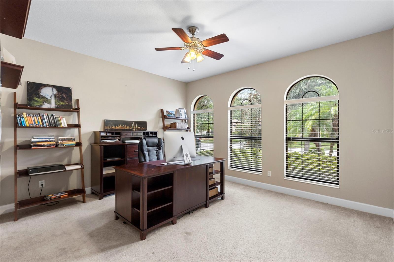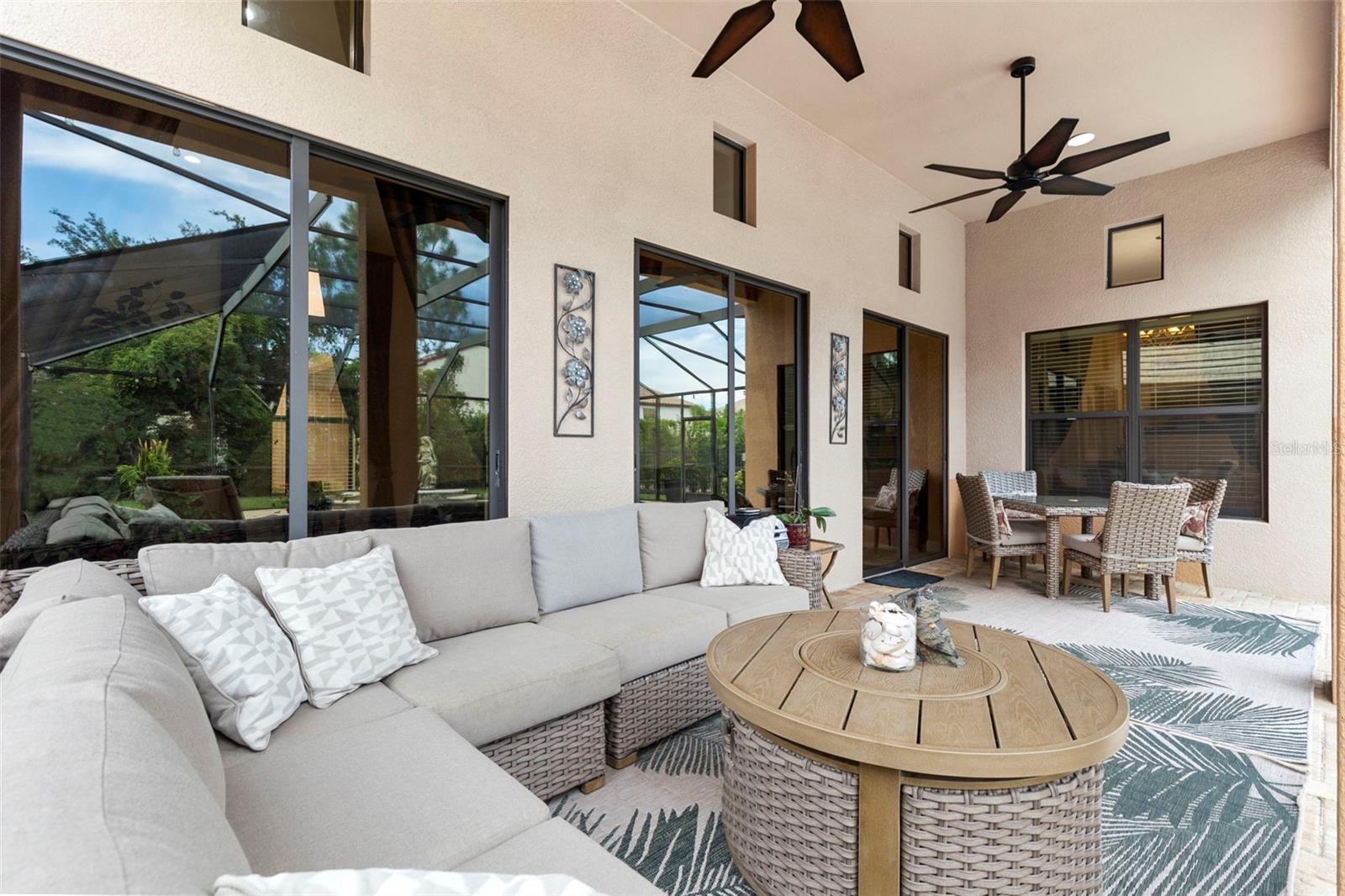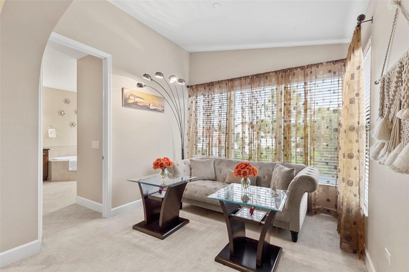 This stunning Mercedes-built two-story residence in the sought-after community of Grand Hampton offers 4 bedrooms plus a bonus room, 3 full bathrooms, 1 half bathroom, and 3,251 square feet of living space, complete with a 2-car tandem garage. From the moment you arrive, the curb appeal captivates with its covered balcony, contemporary architectural design, and lush landscaping framing the walkway to the covered entryway and double wood doors. Step inside, where natural light cascades into the grand foyer. Just off the entry, you’ll find a generously sized under-the-stairs storage closet, a custom storage area with granite countertops and cabinetry, and a stylish half bath. Adjacent is a large bonus room, ideal for a home office, media room, or play space. Continuing through the home, the living room impresses with soaring 14-foot ceilings, recessed lighting, and triple glass sliding doors that frame views of your outdoor oasis. The open floor plan flows seamlessly into the chef’s kitchen, thoughtfully appointed with white solid wood cabinetry, granite countertops, a large cooking island with seating, stainless steel appliances, a gas range, modern lighting, and a spacious closet pantry. Just off the kitchen, the dining area enjoys serene views of the outdoor living space, completing the first floor. Ascending the wrought-iron baluster staircase, the second floor reveals a versatile loft area perfect for reading, writing, or relaxing. The first upstairs bedroom offers built-in closets and a private en-suite bathroom. Bedrooms two and three also feature built-in closets and share a well-appointed full bath. A conveniently located laundry room with cabinetry adds function and ease. The primary suite is a true retreat, highlighted by wall-to-wall windows that flood the space with natural light, soaring ceilings, and a cozy seating area. The spa-inspired primary bathroom includes recessed lighting, a garden tub, a walk-in glass shower, dual sink vanity with granite countertops, and modern fixtures, creating the perfect space to unwind. The outdoor living area is breathtaking. Step onto the screened, covered, paved lanai designed for year-round enjoyment, with privacy curtain and multiple seating areas overlooking the sparkling crystal-blue pool accented by a tranquil water feature. Whether hosting gatherings or enjoying quiet evenings, this private outdoor retreat is truly an extension of the home. Notable upgrades include Pool heater (2017), and recent kitchen appliance updates, with a new refrigerator and dishwasher installed in 2025 as well as a fan installed in the garage. The Grand Hampton community provides a wealth of amenities, including a 24-hour manned gate, state-of-the-art clubhouse, fitness center, playgrounds, lake access, and heated pools—including a lagoon-style pool with slide and a lap pool. Additional recreational features include tennis courts and basketball courts. Conveniently located near major highways I-75 and I-275, this property is just a short drive to local attractions such as Advent Hospital, PHSC, AdventHealth Center Ice, The Shops at Wiregrass, and Tampa Premium Outlets. Don’t miss the opportunity to own this exceptional home. Schedule your private showing today! For a virtual tour, click the provided link and experience the beauty of this remarkable property.