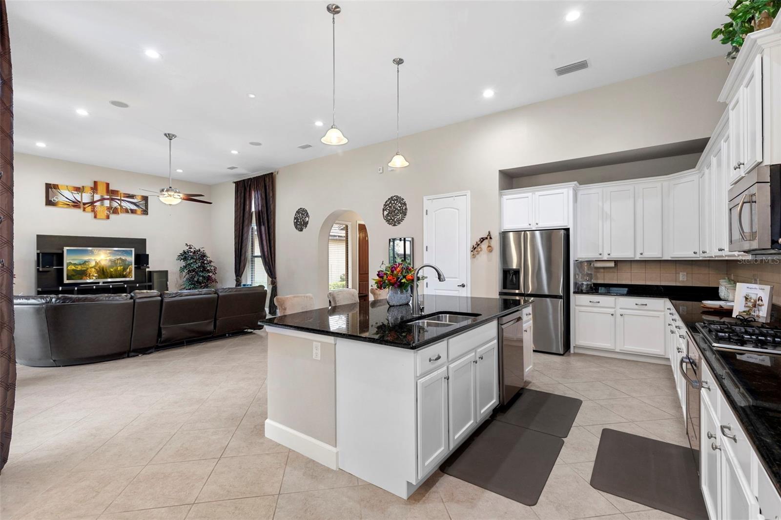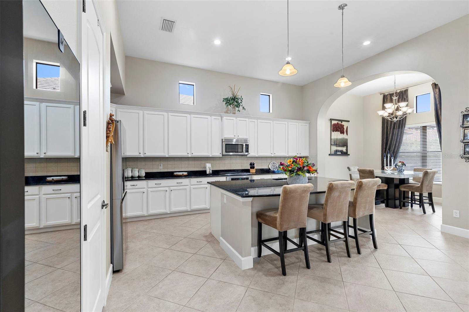- Ceiling Fans(s), Eat-in Kitchen, High Ceilings, Kitchen/Family Room Combo, Open Floorplan, PrimaryBedroom Upstairs, Solid Wood Cabinets, Stone Counters, Thermostat, Walk-In Closet(s)