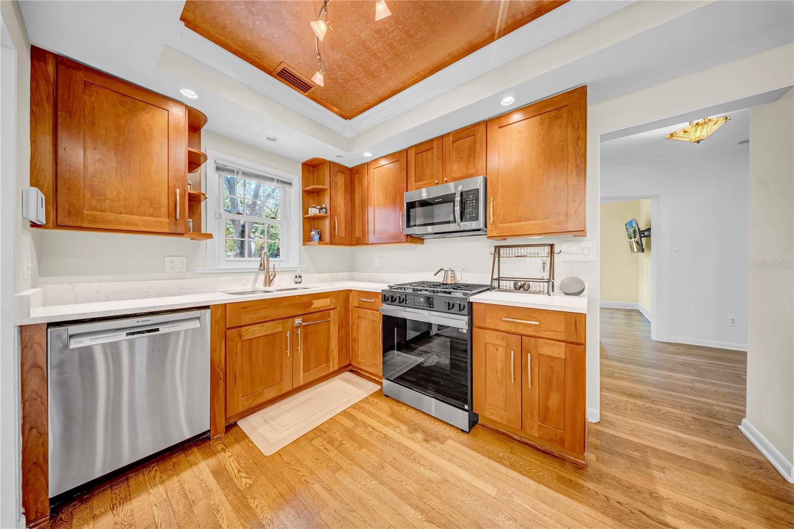 - Built-in Features, Ceiling Fans(s), Solid Wood Cabinets, Vaulted Ceiling(s), Window Treatments