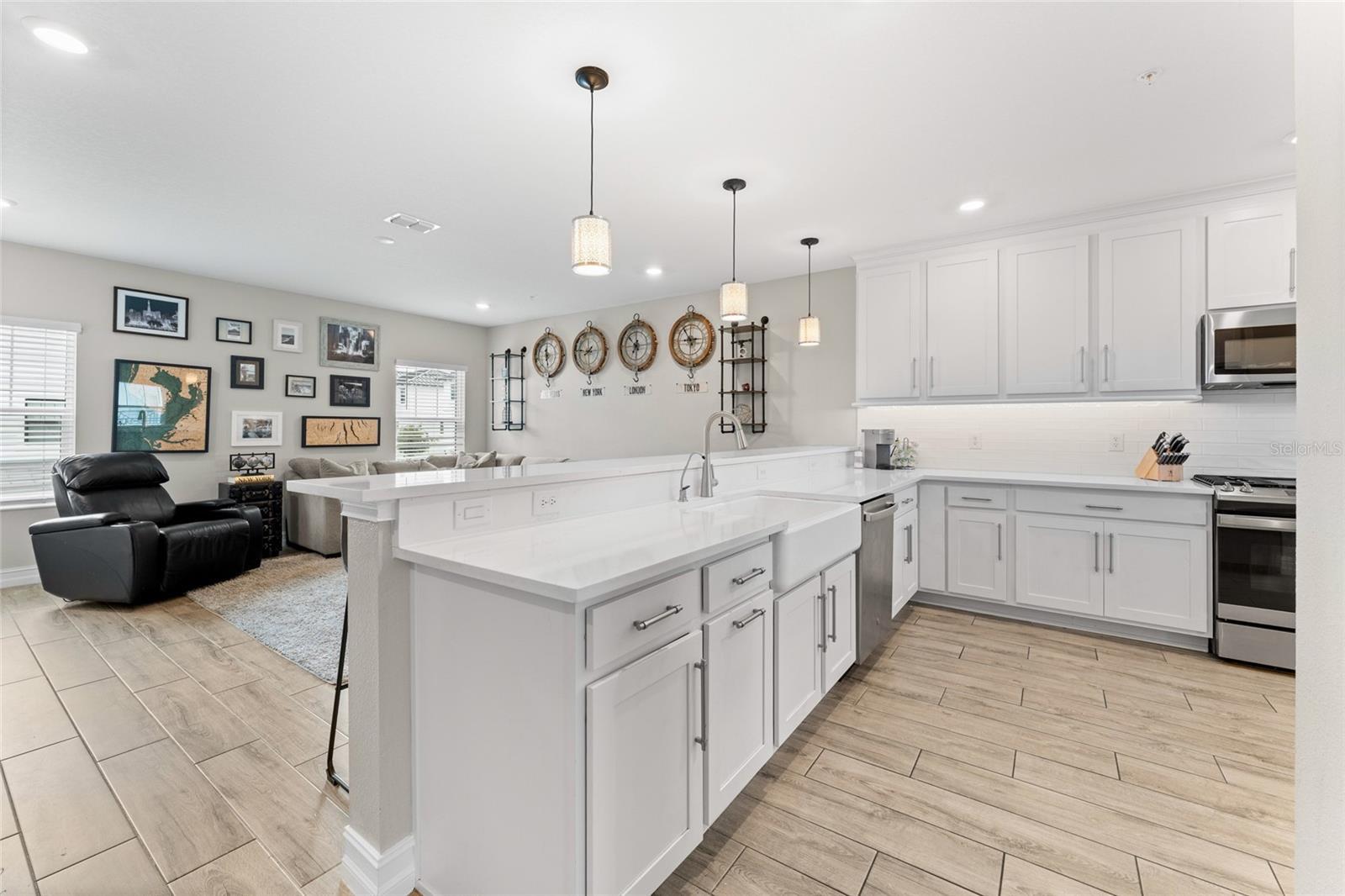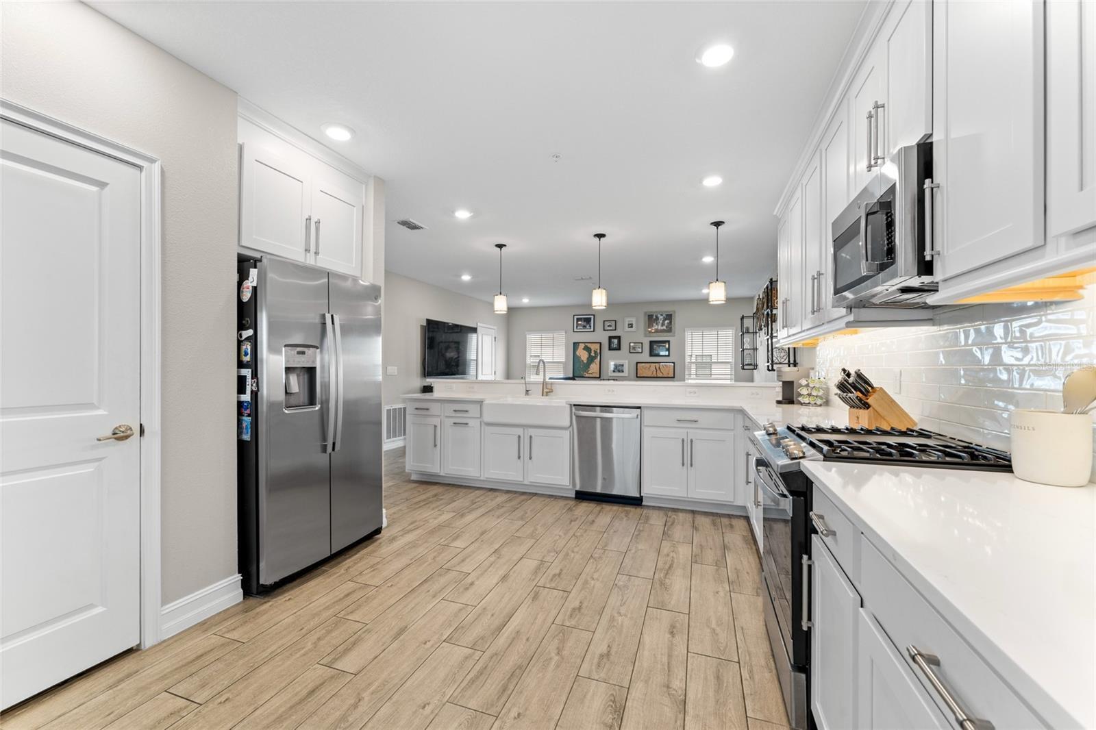 - Eat-in Kitchen, Kitchen/Family Room Combo, Open Floorplan, PrimaryBedroom Upstairs, Solid Surface Counters, Solid Wood Cabinets, Stone Counters, Walk-In Closet(s)