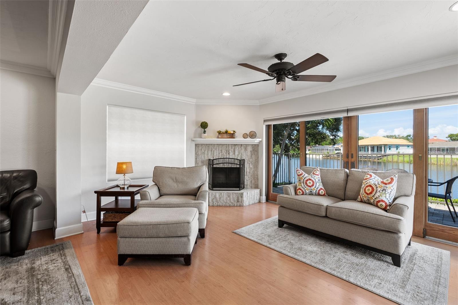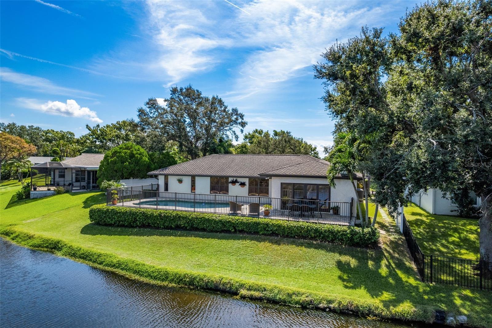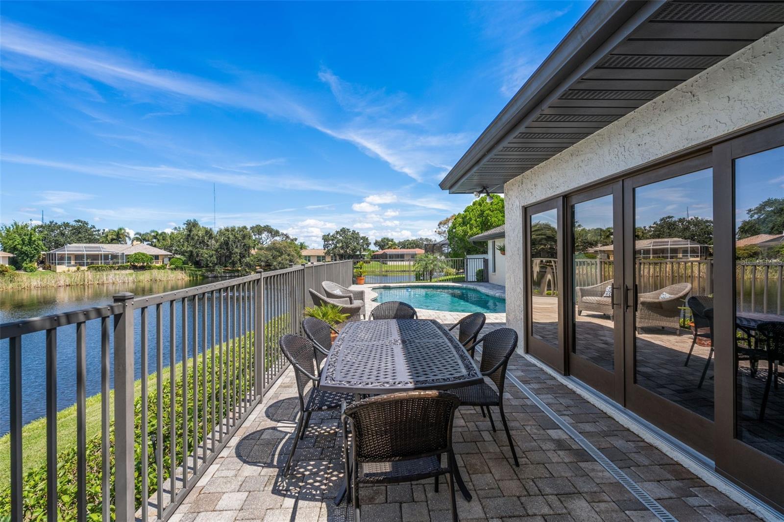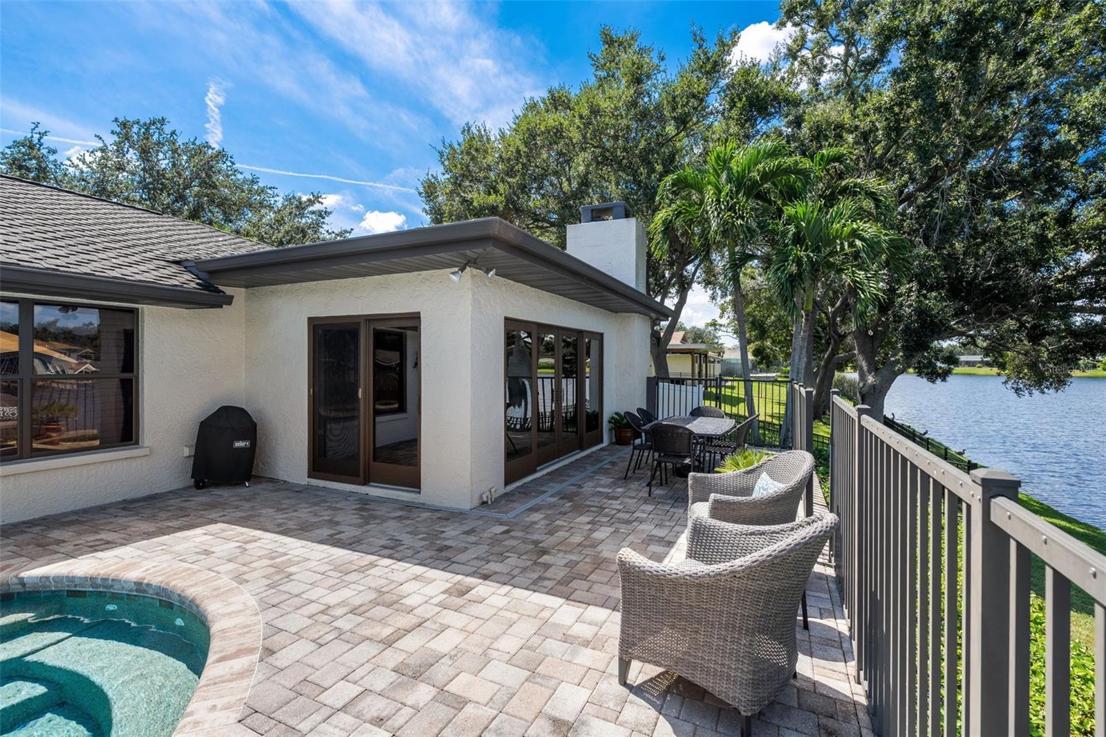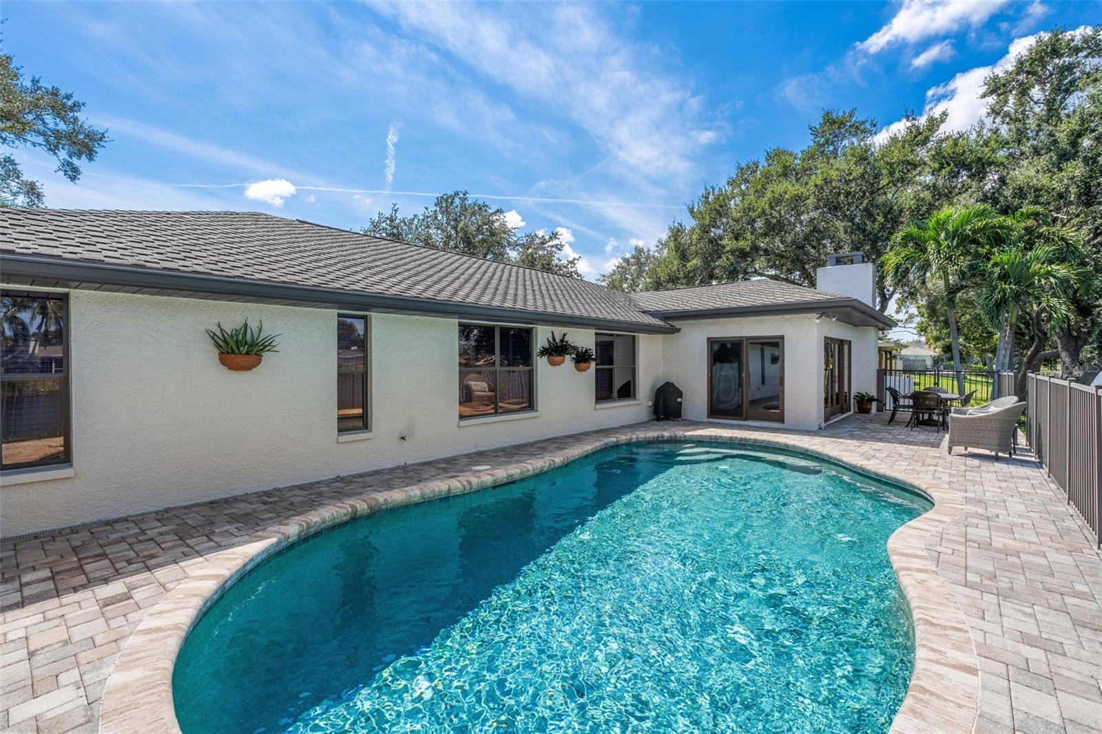 Under contract-accepting backup offers. Discover the elegance of Riviera Bay, an established waterfront community, with this meticulously maintained lakefront pool home—a true rarity. Important to note: this home has never flooded! As you approach, you'll be impressed by the mature landscape, paver driveway, and inviting entry that set the tone for this unique property. Step inside to a welcoming foyer adorned with travertine tile floors, leading you to rooms that boast beautiful water views. Enjoy the warmth of the sunroom's wood-burning fireplace or entertain in the beautiful dining and living rooms. For dining al fresco, the tranquil poolside setting by the quiet lake offers the perfect ambiance, day or night. Inside, the kitchen stands out with white Kraftmaid cabinets, some featuring glass fronts for displaying your cherished items. It is complemented by granite countertops, stainless steel appliances, and a spacious breakfast bar. Adjacent, the large family room, enhanced by custom cabinetry, provides a cozy space for gatherings or TV time. Retreat to the primary bedroom, a serene space with an en suite bath, walk-in shower, and custom vanity. The generously sized second bedroom also features an en suite full bath, while the versatile third bedroom can serve as a home office, workout space, nursery, or playroom, conveniently located near the third full bath with a jacuzzi tub. This home showcases attention to detail, with features like a sizable laundry room, plantation shutters, crown molding, recessed lighting, custom cabinetry, aluminum pool deck fencing, exterior lighting, and an irrigation system using reclaimed water. The property's prime location offers proximity to Tampa, Clearwater, downtown St. Petersburg, shopping, and dining, just minutes away. Schedule your private showing today!