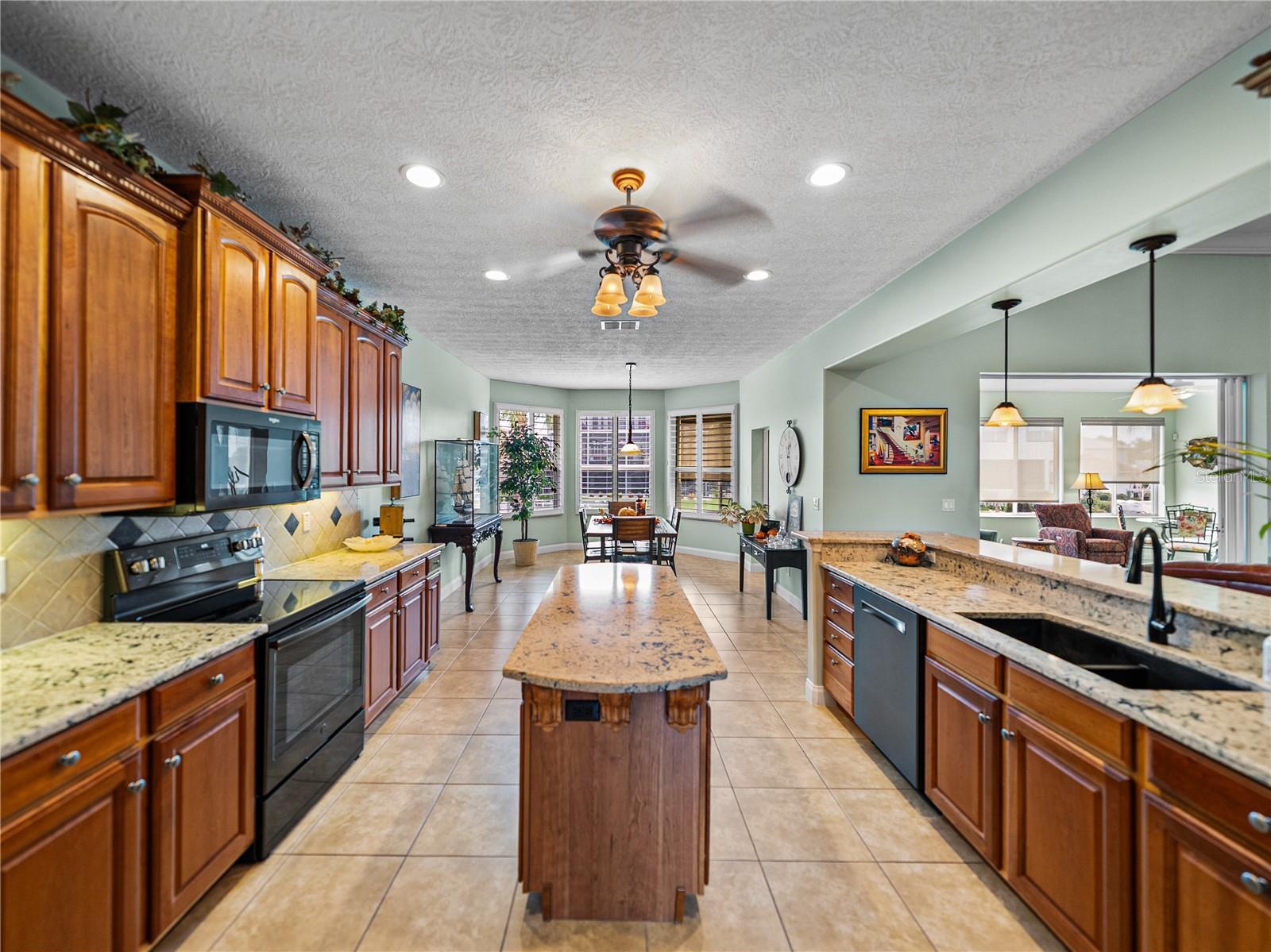 - Cathedral Ceiling(s), Ceiling Fans(s), Coffered Ceiling(s), Crown Molding, Eat-in Kitchen, High Ceilings, Open Floorplan, Solid Wood Cabinets, Split Bedroom, Stone Counters, Thermostat, Walk-In Closet(s), Window Treatments