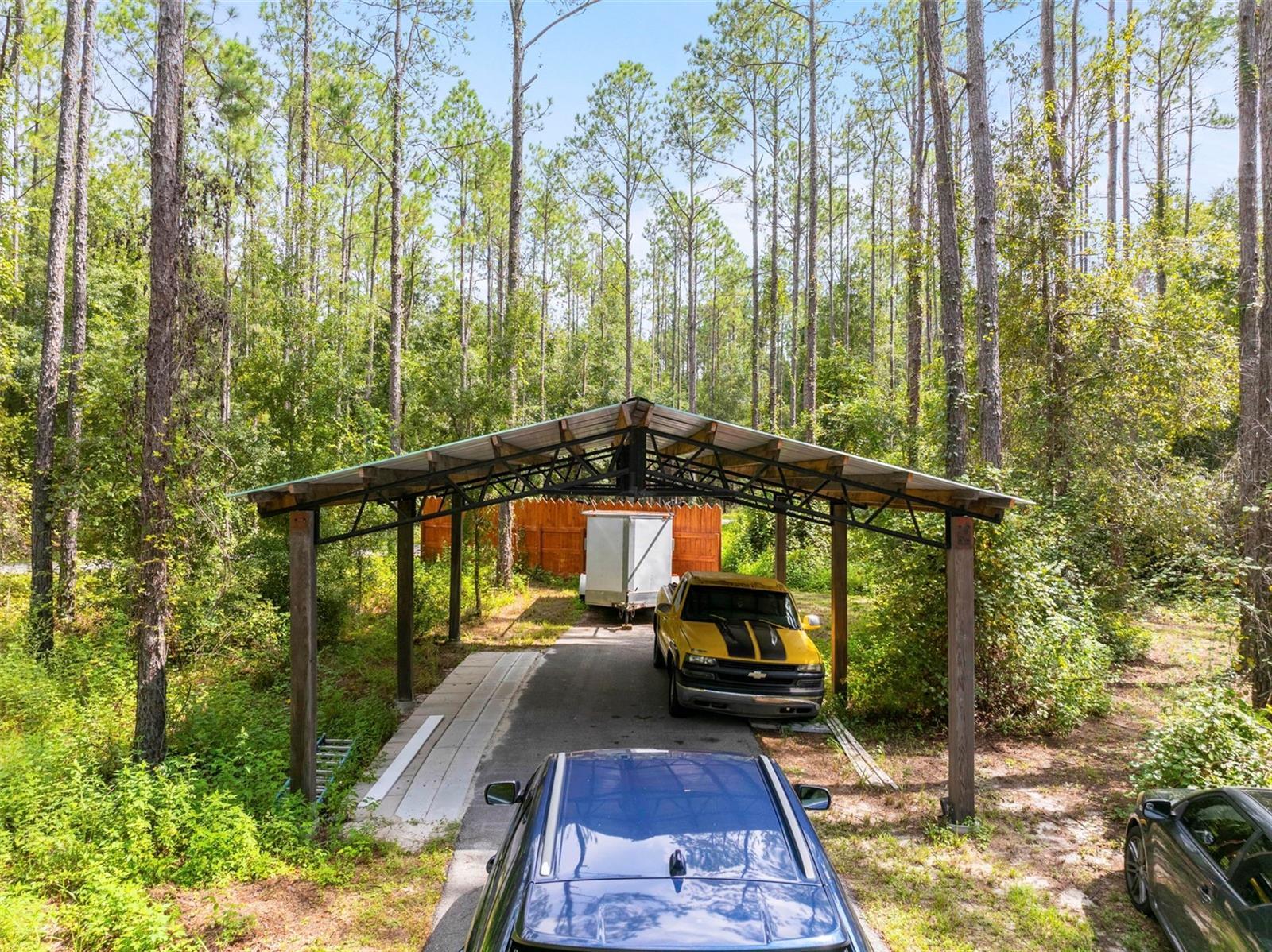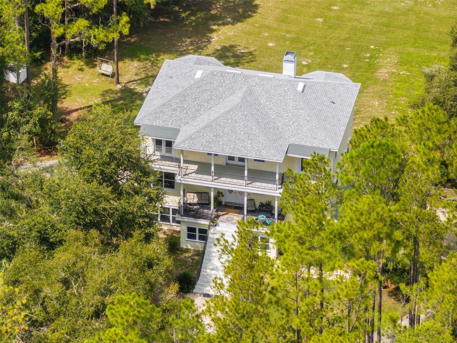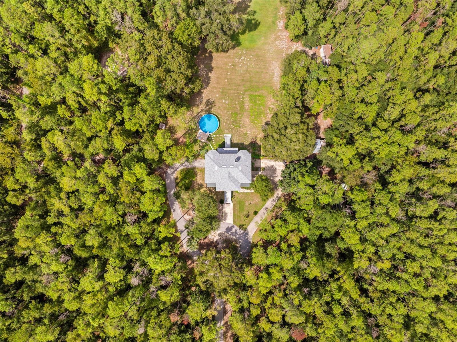 Welcome to your private retreat nestled on over 8 acres of natural beauty. Surrounded by tall trees, this home offers unmatched privacy and tranquility. You won’t see a neighbor, but you will enjoy frequent visits from deer and other native wildlife. Inside, the home offers 5 bedrooms and 4.5 bathrooms thoughtfully spread across three levels. The third floor features a spacious loft area an en-suite bedroom, along with two other bedrooms, and an additional bathroom, making it ideal for guests or family. The second floor serves as the heart of the home with a large kitchen, dining room, and an expansive living room boasting soaring ceilings and a fireplace. The primary bedroom suite is located on this floor, complete with a luxurious soaking tub surrounded by windows that frame views of the serene property. On this first floor, you’ll find a versatile bonus area with plenty of storage, and another bedroom and full bathroom, offering flexibility for multi-generational living, entertaining, or work-from-home needs. Step outside to enjoy partially cleared acreage, a brand-new above-ground pool added last summer and a chicken coop—perfect for those interested in a homestead lifestyle. A new roof installed in 2022 adds peace of mind, while the surrounding landscape offers endless potential for gardening, recreation, or simply soaking in the quiet of nature. There is also a wood-framed workshop, and a tiny home on the property both with power connected. This home is the perfect blend of modern living and natural seclusion—all just minutes from Brooksville conveniences.