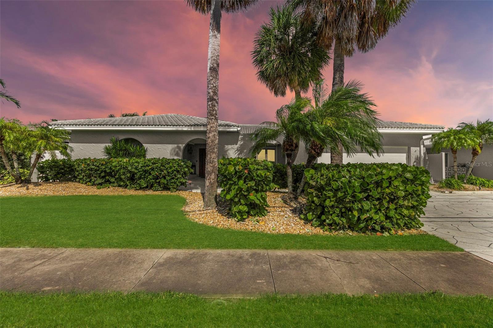 Tropical waterfront living at its finest—this spacious Island Estates home offers stunning, unobstructed views straight down the channel. With privacy landscaping on both sides and no flooding from recent hurricanes, you’ll enjoy peace of mind and postcard-worthy scenery from your Great Room, Kitchen, and Primary Suite. Just under 3,000 square feet, this 3-bedroom, 2.5-bath home has plenty of room to spread out. The kitchen features granite countertops and rich wood cabinetry, while the oversized Great Room comes loaded with built-ins. The full-size laundry room includes a Maytag Centennial washer and dryer, and the 2-car garage has an epoxy floor, overhead storage, and a wide driveway perfect for guests. Step outside to a beautifully manicured lawn with palm trees and tropical shrubbery. The large pool deck surrounds a saltwater pool and outdoor shower, just steps from your private dock and boat slip—ideal for a vessel up to 30 feet. The newer vinyl fencing wraps the property for added privacy. This home is built for comfort and protection, with a high-efficiency Carrier HVAC system (2018), Anderson windows and sliding glass doors, electric roll-down storm shutters, impact-rated accordion shutters, and Lexon translucent covers for side windows. It also includes a built-in speaker system, ADT wireless fire and smoke monitoring, Whirlpool water softener, and ProSystems filtration. Island Estates is one of Clearwater’s most sought-after boating communities, known for its deep channels and unbeatable location. You’ll be within walking distance of Publix, restaurants, a UPS store, and even the Clearwater Marine Aquarium. Clearwater Beach is just minutes away by bike, car, or the Jolley Trolley. This is a rare opportunity to own a large, storm-resilient waterfront home in a prime location—offered at a very attractive price in today’s market. Don’t wait to schedule your showing.