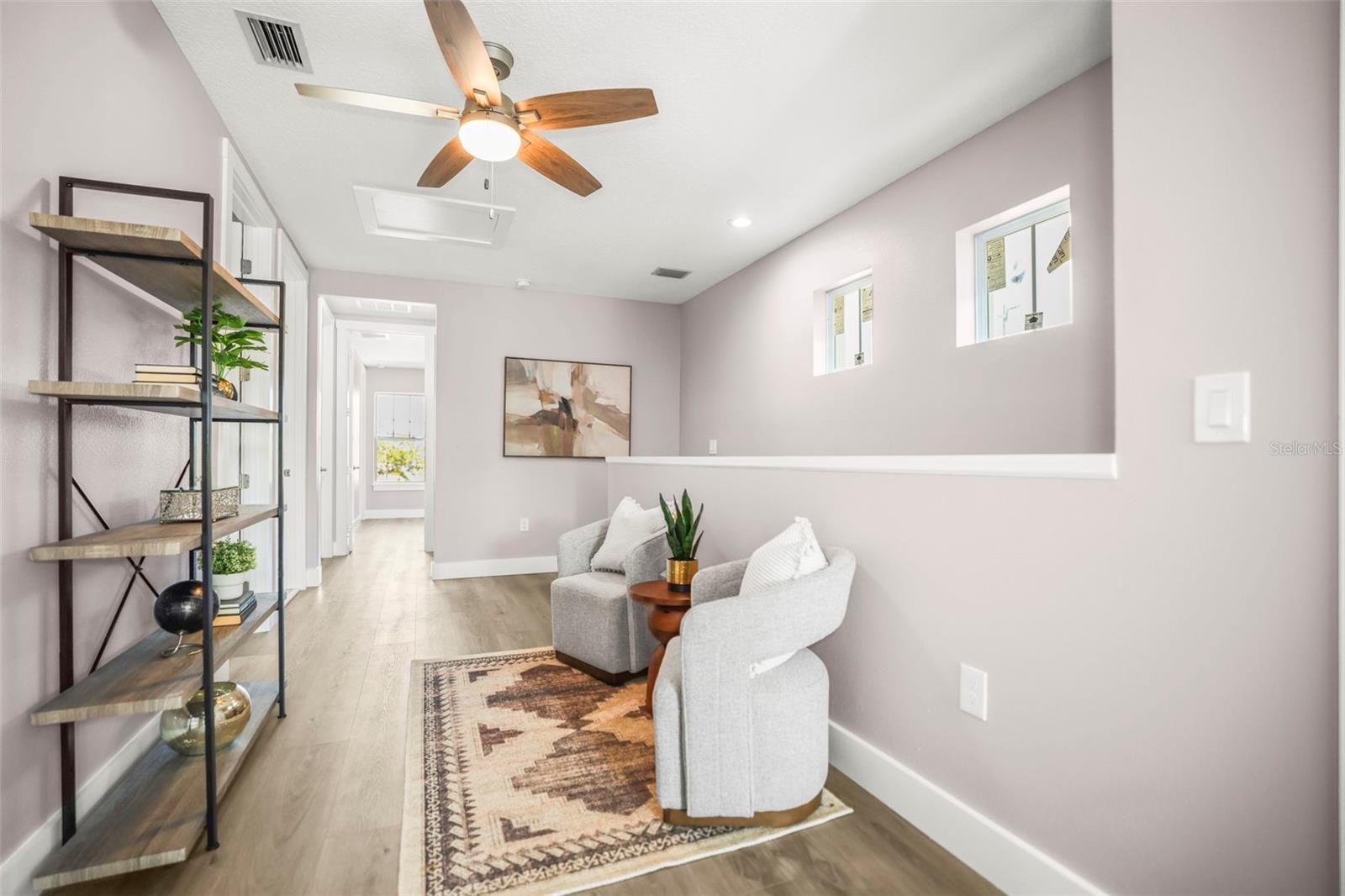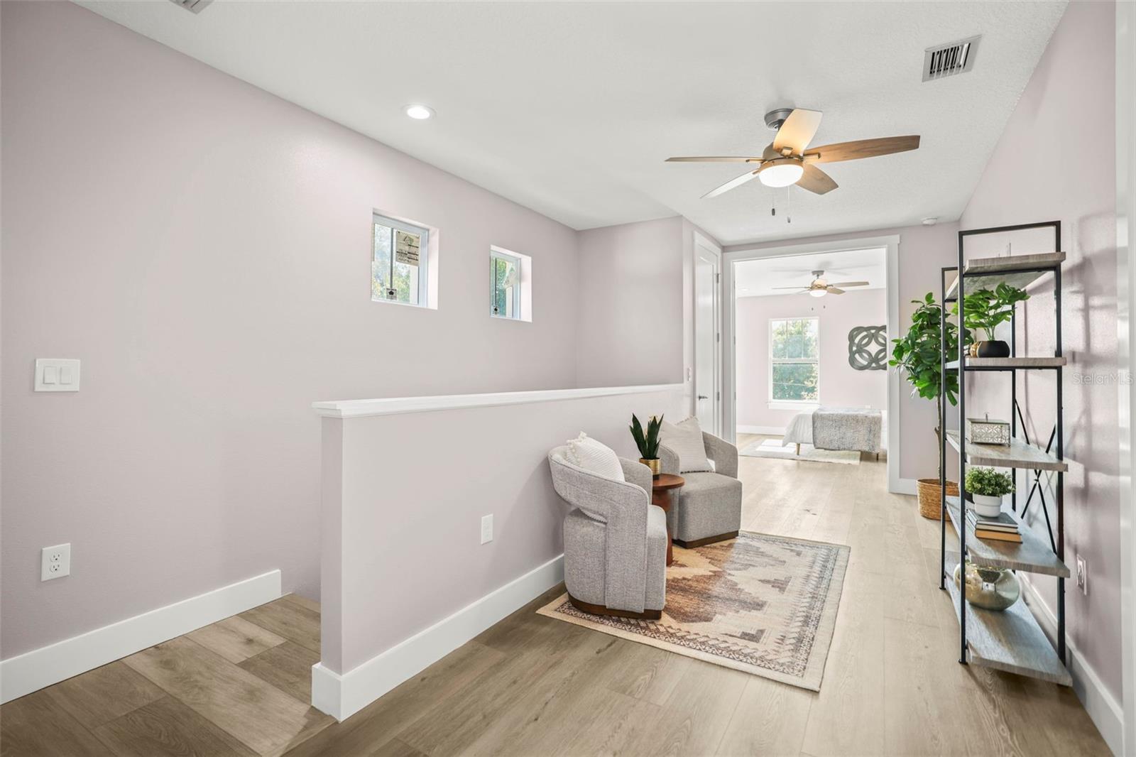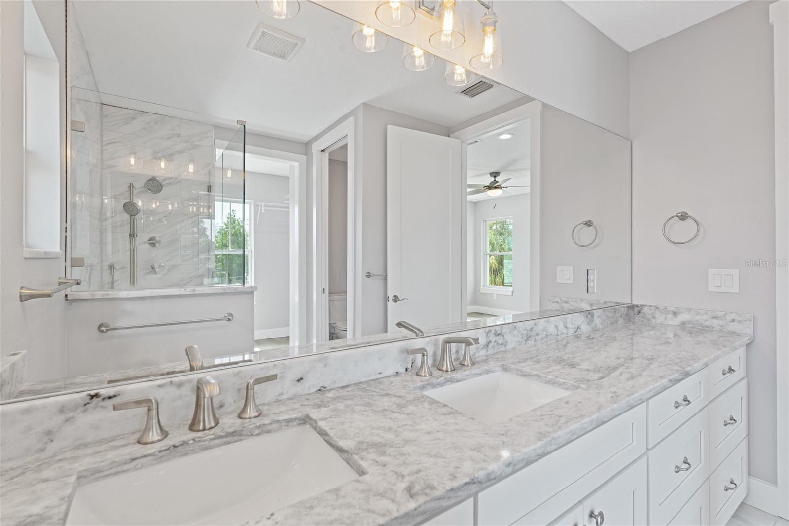 - Ceiling Fans(s), Eat-in Kitchen, High Ceilings, Open Floorplan, PrimaryBedroom Upstairs, Stone Counters, Thermostat, Walk-In Closet(s)