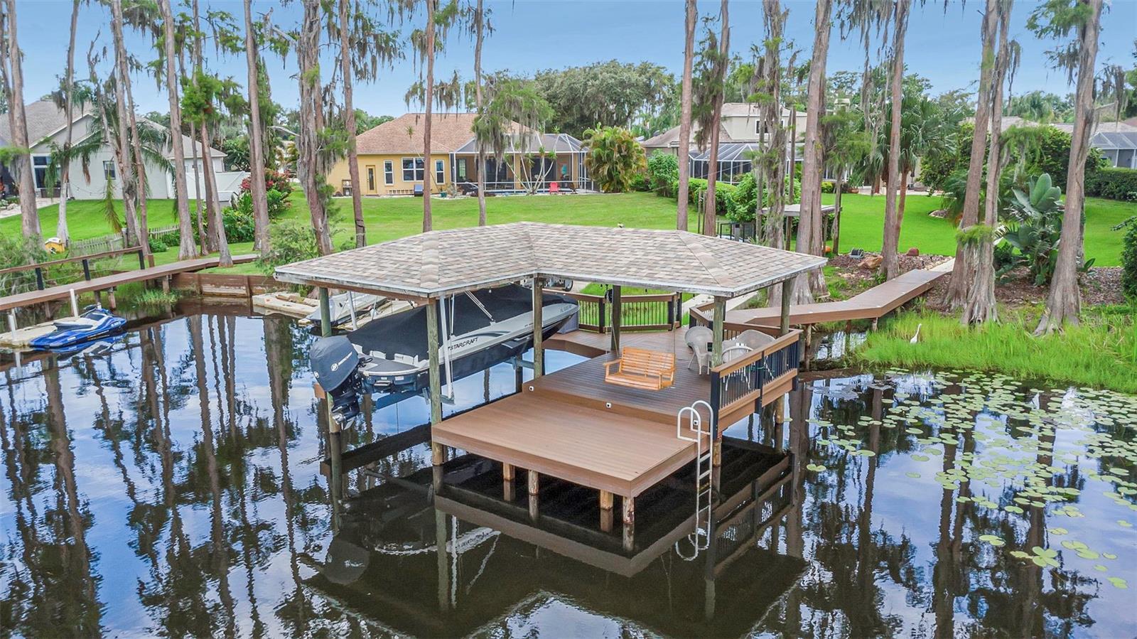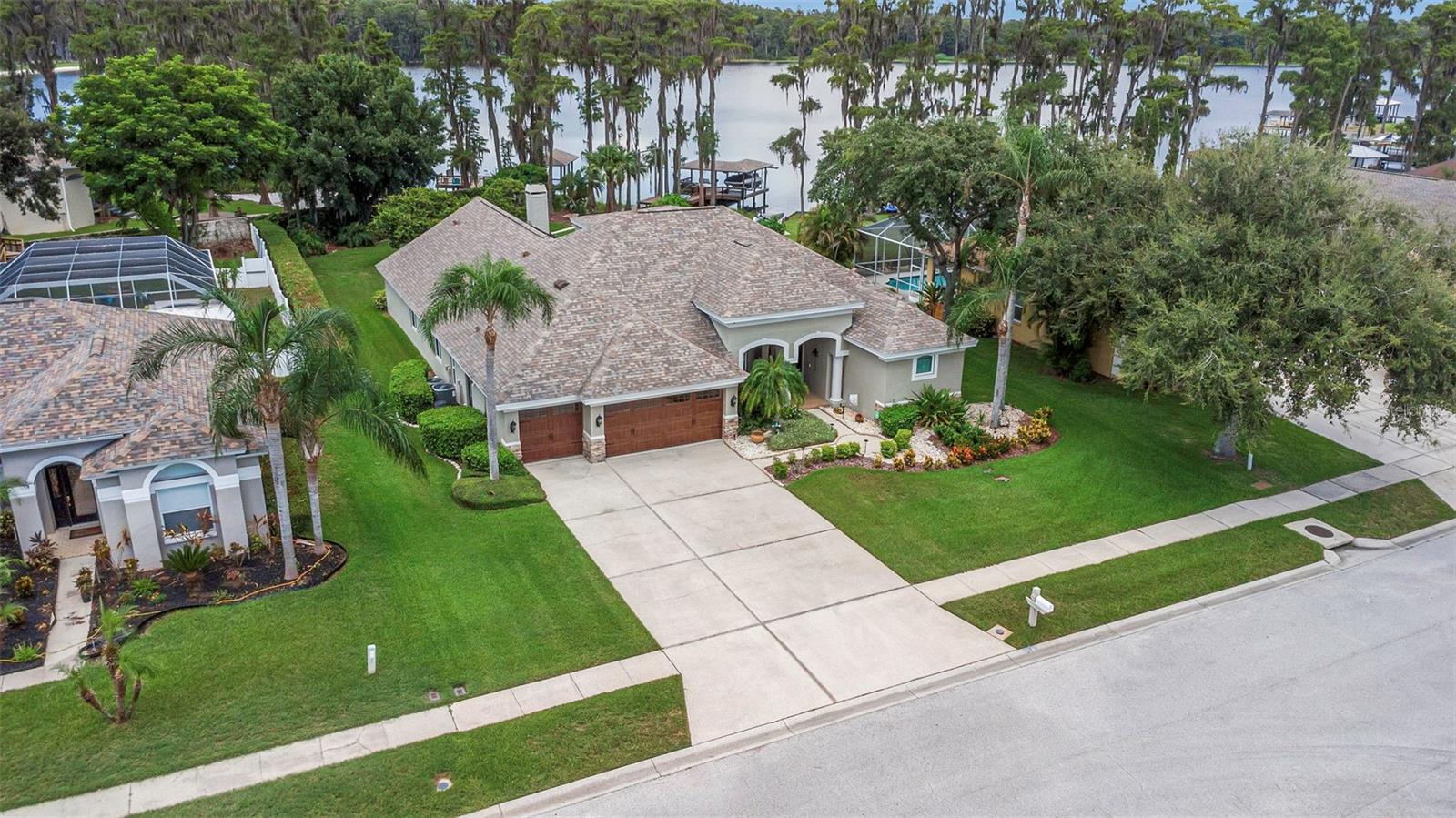 Enjoy boating, skiing, and breathtaking views on Lake Ann, a 97-acre private-access lake from your own backyard. This spacious 5-bedroom, 3-bath home with over 3,300 sq. ft. offers a perfect blend of comfort, luxury, and thoughtful updates. The chef's kitchen, completely renovated in 2019, features custom cabinetry, premium appliances, and a hidden walk-in pantry. A bit of history caps the enormous island. It is reclaimed from the historic Belleview-Biltmore Hotel in Clearwater. A beverage refrigerator and steam oven are just a couple of thoughtful touches in this warm, inviting kitchen. The primary suite features a lovely view of the lanai and lake. A spa-like bath, elegantly updated in 2024, completes the owner's sanctuary. Engineered hardwood floors flow through the main living areas, primary suite, office, and 2nd bedroom, with plush carpet in the remaining bedrooms. The 2nd bedroom, bath, and office enjoy a private entrance from the backyard, ideal as an in-law suite. Upstairs, the expansive 5th bedroom/bonus room overlooks the lake. Enjoy the outdoors with a deep front porch and fountain, pergola with sweeping lake views, and a sparkling pool and spa. A scenic, lushly landscaped yard leads to the tranquil lake and dock. A covered boathouse provides an oasis for restoration and refreshment. A two-sided gas fireplace warms the family room and office. Propane also fuels the grills and spa. Additional highlights include hurricane impact windows (2018), a whole-home generator (2023), upgraded landscape lighting (2024), a 3-car garage, roof (2020), and AC units (upstairs 2023 & downstairs 2025). Come take a look! This exquisite home offers year-round lakefront recreation, combining modern updates with a setting designed for relaxation and entertaining.