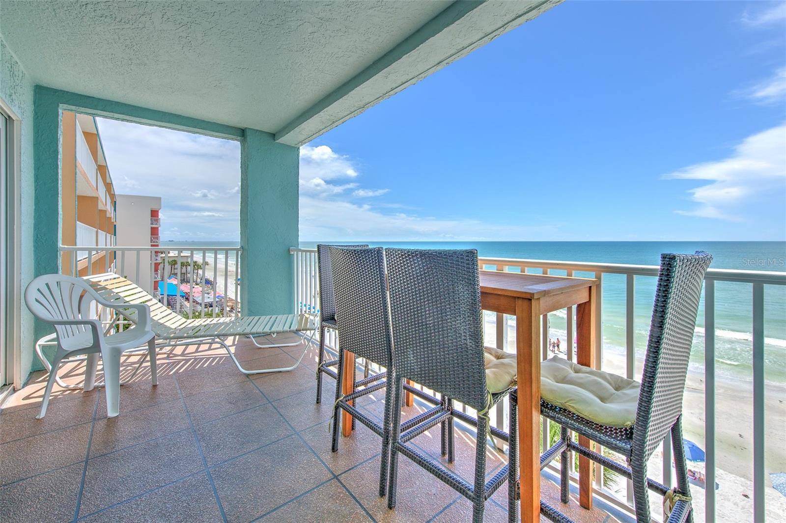 EXCEPTIONAL NEW PRICE!!!! -RAM SEA 401– DIRECLTY BEACH FRONT/CORNER LOCATION. Sweeping panoramic views of beach and Gulf. This spacious two-bedroom two bath condo offers 1205 square feet of glorious coastal charm. The living room opens onto a private waterfront balcony. Ram Sea 401 is beautifully furnished and turnkey ready. The condo is well appointed and “eclectically beachy”. Many recent upgrades including new flooring throughout. Stainless steel appliances as well. Ram Sea 401 is the perfect second home and/or short-term rental property. A definite income producing opportunity. Rental information and rental history available on request. Professional management is on site should you want to be fully at leisure regarding the property. Ram Sea offers the rare luxury of management with an on-site guest/owner services desk for anyone wanting to enjoy the benefits provided. There is a large, heated pool and Jacuzzi spa, also, expansive sun decks and tiki areas. Spa and pool decks, tiki huts, deck furniture, and showers are all brand new in 2025. Also new to the property are the beachside natural gas grills. Condo has PGT high impact/storm rated windows and glass doors. Enjoy world class sunsets along beautiful sugar sand beaches. Centrally located between the TOP-RATED BEACHES OF ST PETE/CLEARWATER. Just 20 minutes from St Pete/Clearwater International Airport (PIE). Don’t let this one pass you by.