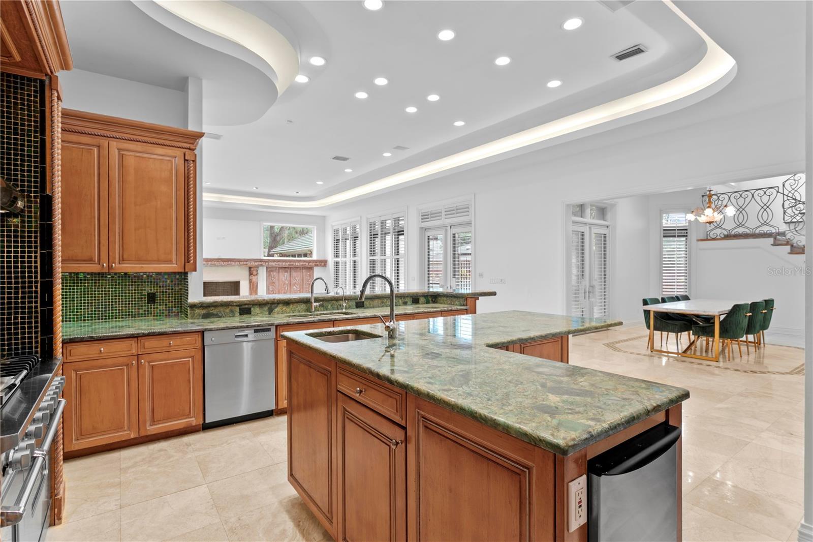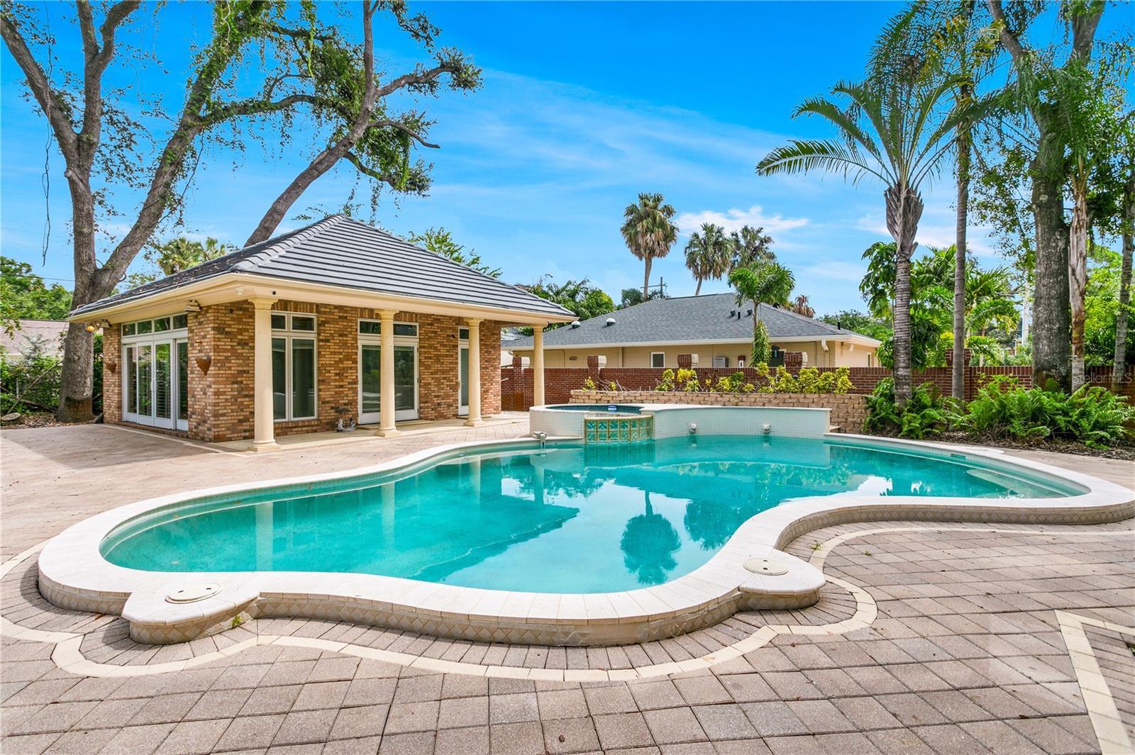 Welcome to 4407 W Dale Avenue, a Mediterranean-inspired estate in the highly desirable Beach Park neighborhood of South Tampa. This custom-built residence blends timeless architecture with modern conveniences, offering more than 7,200 square feet of living space on a beautifully landscaped .40-acre lot. Set among tree-lined streets and mature oaks, this impressive two-story brick home combines privacy, elegance, and comfort in one of Tampa's most sought-after communities. The grand entry sets the stage with a 22-foot foyer framed by stone columns and wrought-iron accents, creating a dramatic first impression. Inside, expansive living and dining areas flow seamlessly, highlighted by soaring ceilings with natural light pouring through oversized windows. Intricate crown molding, solid-core 10-foot doors, and travertine details showcase the home's craftmanship, while an elevator provides convenience across levels. Every space is thoughtfully designed, offering formal and casual areas that are ideal for family living and entertaining. At the heart of the home, the gourmet kitchen is equipped for both chefs and everyday cooks. Featuring dual Sub-Zero refrigerators, granite countertops, a center island, professional-grade gas range, and stainless-steel appliances, this kitchen is as functional as it is beautiful. A breakfast area overlooking the backyard creates the perfect setting for morning coffee or casual meals, while adjoining living spaces make hosting effortless. The expansive primary suite is a private retreat, complete with a sitting area. dual walk-in closets, and a unique dressing space with sink and refrigerator. The spa-like bath offers dual vanities, a soaking tub and walk-in shower, creating a resort-style experience. Generously sized secondary bedrooms each feature en-suite baths, providing comfort and privacy for family and guests. Outdoor living is equally impressive. A sparkling pool, spa, and multiple patio areas provide both tranquility and space for entertaining. A cabana/guest house provides additional flexibility-perfect for visitors, extended family, or a private home office. Whether you're hosting gatherings or simply unwinding by the pool, the backyard feels like a private oasis. Additional features include multiple living areas, a three-car garage. ample storage, and thoughtfully designed spaces that can be customized to suit your lifestyle.