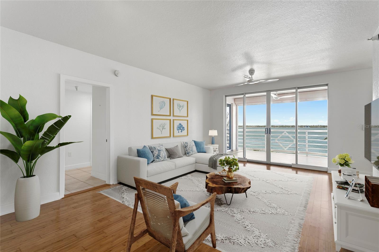 One or more photo(s) has been virtually staged. Welcome to this beautifully reimagined 3-bedroom, 2.5-bath waterfront residence where modern sophistication meets relaxed coastal living. Spanning 1,868 square feet, this meticulously remodeled condo showcases a seamless open-concept design that flows effortlessly onto an expansive veranda overlooking the wide-open waters of Boca Ciega Bay. Sunlight fills the interiors by day, while evenings are framed by breathtaking sunset vistas. The chef’s kitchen combines style and functionality with crisp white cabinetry, striking blue tile accents, generous storage, and a built-in wine cooler. Adjacent, the dining area—surrounded by a wall of windows and opening directly to the veranda—creates the perfect backdrop for both intimate dinners and guest gatherings. The primary suite offers a private retreat, complete with sweeping water views, electric window treatments, a custom walk-in closet, and a spa-inspired bath. A thoughtfully designed split floor plan ensures privacy, with two additional bedrooms—one with an adjacent full bath and the other accented by plantation shutters—plus a convenient half bath for guests. Recent upgrades include updated windows and a brand-new 2024 HVAC system and water heater. A reserved garage parking space adds everyday convenience. Hurricane shutters throughout. Bacopa Bay is one of St. Petersburg’s most coveted gated communities, recently completing Florida’s milestone inspections and an extensive list of updates, including new roofs, elevators, seawall replacement, fresh landscaping, and infrastructure improvements. Residents enjoy resort-style amenities, such as two heated pools (including a 25-meter lap pool), a jetted hot tub, Har-Tru tennis courts, a state-of-the-art fitness center, EV charging, a lagoon with waterfall, a private beach, and lushly landscaped grounds—all within a secure 24/7 guard-gated setting. Ideally situated, this community places you just minutes from the Gulf beaches, Ft. De Soto Park, vibrant downtown St. Petersburg, and only 30 minutes from Tampa International Airport. Discover the perfect balance of luxury, convenience, and coastal serenity in this exceptional Bacopa Bay residence.