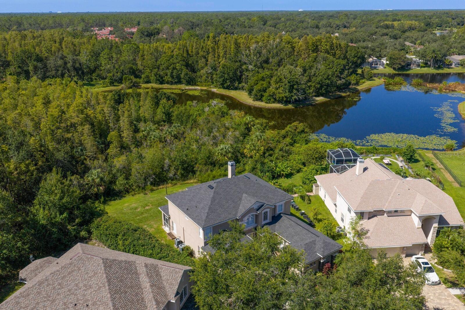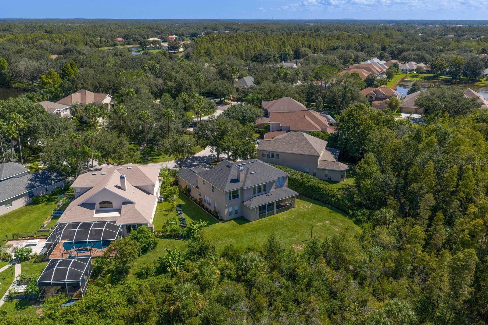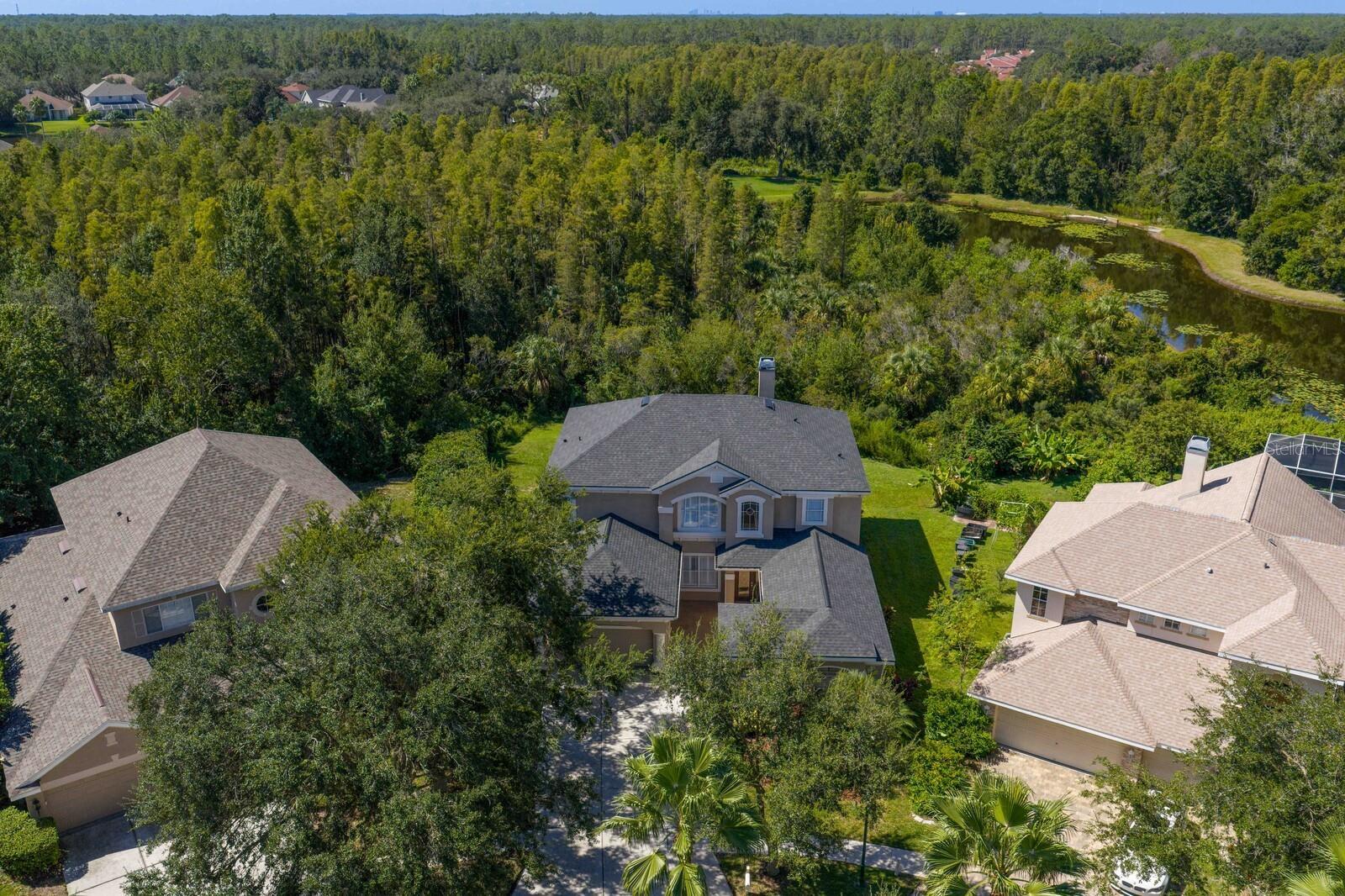 Welcome to this stunning residence in the gated Arbor Greene community. Located within the sought-after Parkview Village, this custom-built home is perfectly positioned on an oversized lot at the end of a quiet cul-de-sac with expansive conservation views and a community open space directly across from the home for added privacy and a park-like setting.Offering 5 bedrooms, 3.5 baths, a theater room, and a game room, it delivers the space and flexibility today’s buyers crave. The inviting courtyard entry and separate three-car garage create a warm first impression. Step through the leaded, beveled-glass door and you’ll immediately feel the difference: soaring two-story ceilings in both the entry foyer and family room flood the home with natural light. Beautiful finishes include engineered wood flooring in the formal dining room, oversized baseboards, and 18x18 tile laid on the diagonal throughout the foyer, kitchen, family room, and breakfast nook. A stack-stone wood-burning fireplace with wood mantle and built-ins anchors the family room. The gourmet kitchen is a chef’s dream, showcasing 42” maple cabinetry with dental molding and glass-front uppers, granite countertops, stainless steel double ovens, a walk-in pantry, and pendant lighting. The adjacent breakfast nook overlooks the lanai and lush backyard, while the powder bath is conveniently located just off the main living space. Flexible living continues on the main floor with a bonus room featuring double-door entry, a guest bedroom with custom built-in bookshelves, and an in-home theater room, perfect for entertaining. Upstairs, rich wood flooring flows throughout all bedrooms. The primary suite offers a luxurious retreat with a custom walk-in closet, granite-topped maple cabinetry, a pebblestone shower, and an oversized jetted Jacuzzi tub. All secondary bathrooms have been updated with granite as well. A utility closet upstairs provides added convenience. Outdoor living is equally impressive. A spacious lanai with built-in grill overlooks the large, private backyard and wooded conservation views — ideal for gatherings or quiet evenings alike. Residents of Arbor Greene enjoy resort-style amenities including a fitness center, lap pool, resort-style pool with slide, tennis and basketball courts, dog park, playgrounds, and miles of scenic walking trails, all with modest HOA fees. This extraordinary Parkview home combines luxury finishes, thoughtful upgrades, and a prime location just minutes from top-rated schools, shopping, dining, I-75, I-275, and USF.