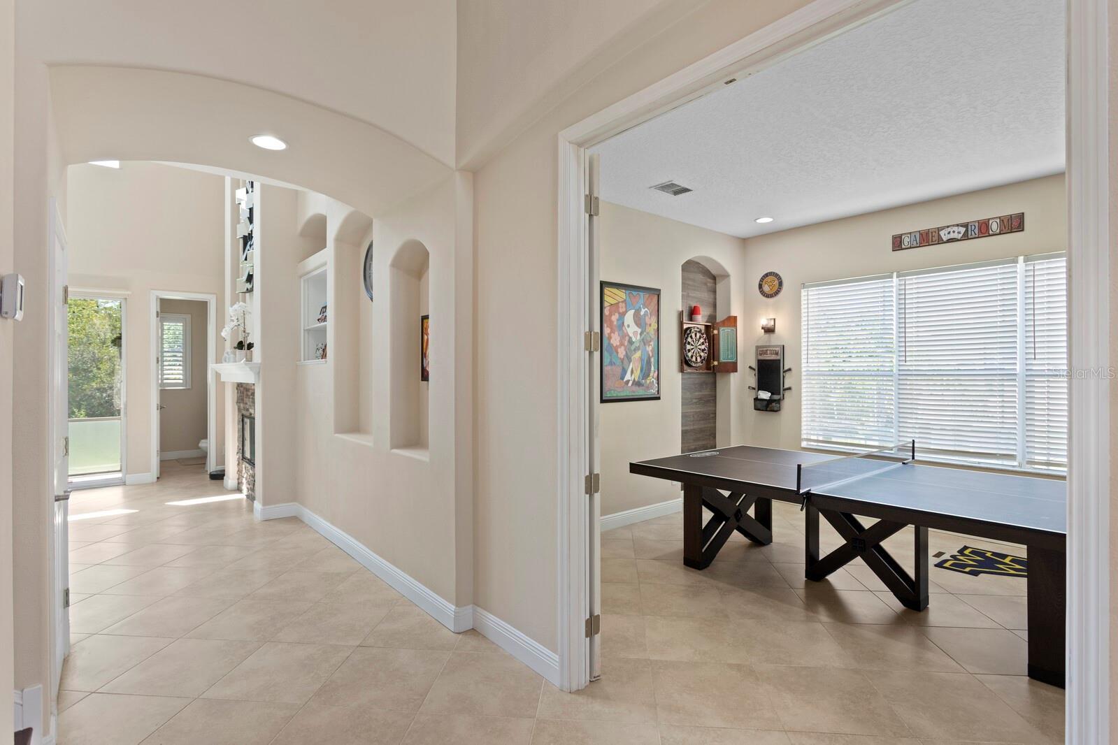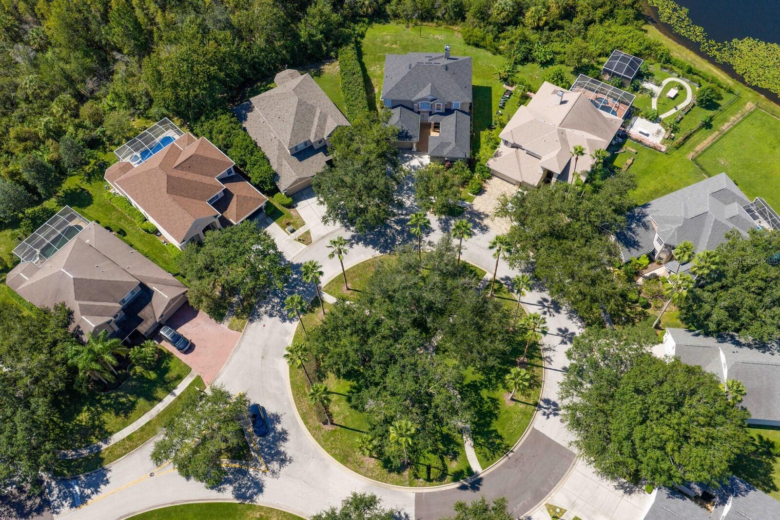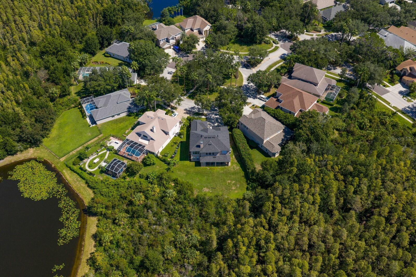 Welcome to this stunning residence in the gated Arbor Greene community. Located within the sought-after Parkview Village, this custom-built home is perfectly positioned on an oversized lot at the end of a quiet cul-de-sac with expansive conservation views and a community open space directly across from the home for added privacy and a park-like setting.Offering 5 bedrooms, 3.5 baths, a theater room, and a game room, it delivers the space and flexibility today’s buyers crave. The inviting courtyard entry and separate three-car garage create a warm first impression. Step through the leaded, beveled-glass door and you’ll immediately feel the difference: soaring two-story ceilings in both the entry foyer and family room flood the home with natural light. Beautiful finishes include engineered wood flooring in the formal dining room, oversized baseboards, and 18x18 tile laid on the diagonal throughout the foyer, kitchen, family room, and breakfast nook. A stack-stone wood-burning fireplace with wood mantle and built-ins anchors the family room. The gourmet kitchen is a chef’s dream, showcasing 42” maple cabinetry with dental molding and glass-front uppers, granite countertops, stainless steel double ovens, a walk-in pantry, and pendant lighting. The adjacent breakfast nook overlooks the lanai and lush backyard, while the powder bath is conveniently located just off the main living space. Flexible living continues on the main floor with a bonus room featuring double-door entry, a guest bedroom with custom built-in bookshelves, and an in-home theater room, perfect for entertaining. Upstairs, rich wood flooring flows throughout all bedrooms. The primary suite offers a luxurious retreat with a custom walk-in closet, granite-topped maple cabinetry, a pebblestone shower, and an oversized jetted Jacuzzi tub. All secondary bathrooms have been updated with granite as well. A utility closet upstairs provides added convenience. Outdoor living is equally impressive. A spacious lanai with built-in grill overlooks the large, private backyard and wooded conservation views — ideal for gatherings or quiet evenings alike. Residents of Arbor Greene enjoy resort-style amenities including a fitness center, lap pool, resort-style pool with slide, tennis and basketball courts, dog park, playgrounds, and miles of scenic walking trails, all with modest HOA fees. This extraordinary Parkview home combines luxury finishes, thoughtful upgrades, and a prime location just minutes from top-rated schools, shopping, dining, I-75, I-275, and USF.
