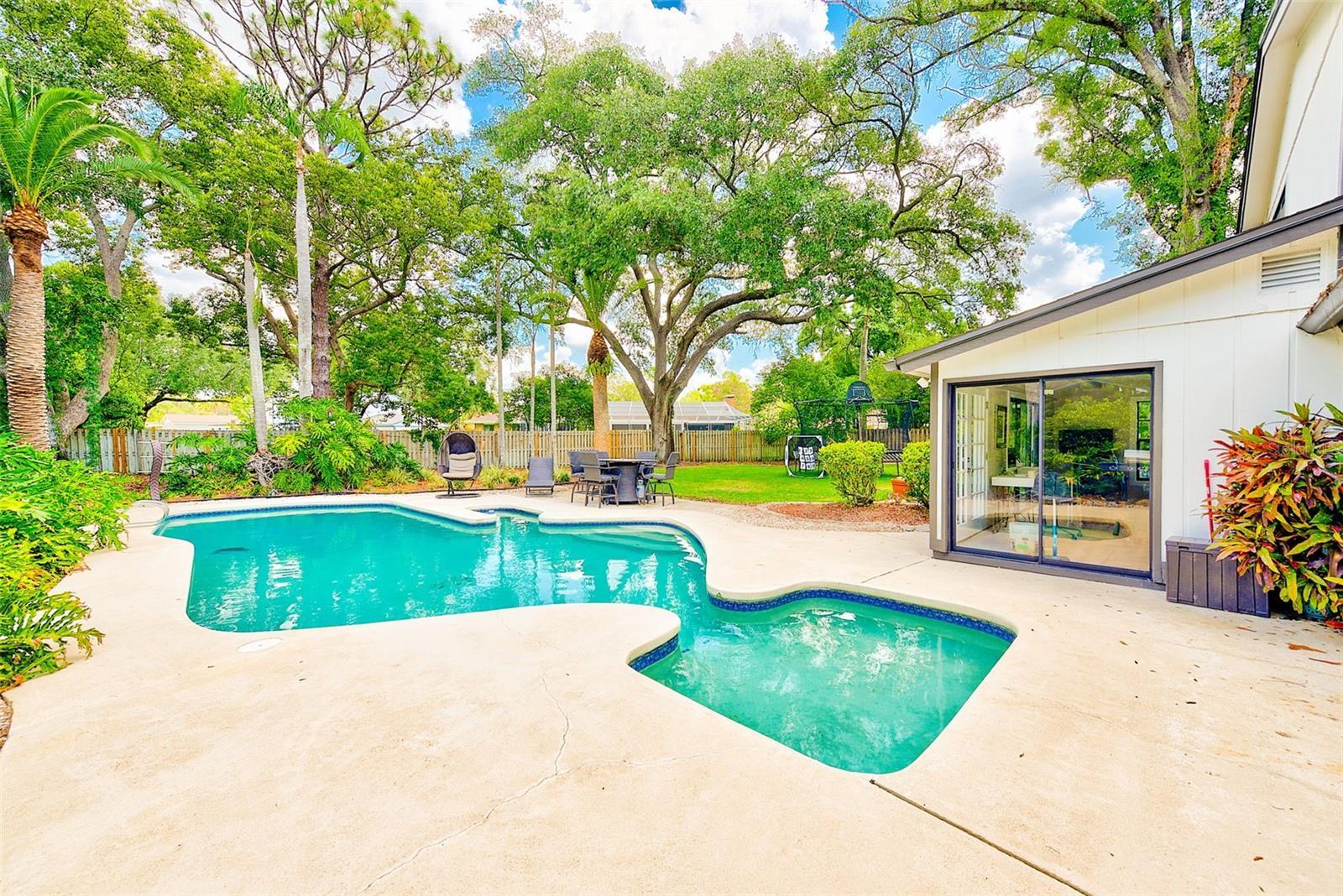 Price Improvement--- This beautiful newly renovated 4-bedroom/3-bathroom home in Phase One Carrollwood Village is sited on nearly ½ acre. As you walk through the front doors, the cathedral ceilings welcome you into a large formal living room. The formal dining room affords seating for eight. Open floor plan combines the kitchen, family room and breakfast bar together in one large room. Gorgeous cabinetry, stainless steel appliances and quartz countertops! Grab a beverage from the wet bar beverage center and a seat on the couch! Watch television or the fire crackle in the stone wall fireplace. Natural light pours in from every angle! Choose Sliding glass doors or French doors to enter the well-manicured backyard, complete with a custom pool making this entertainers paradise! A first-floor office or guest room overlooks a lush front yard. The upper floor includes the primary bedroom and two secondary bedrooms with guest bath. Freshly painted inside and out! Luxury vinyl plank flooring throughout. Updated fixtures and lighting throughout! Oversized two car side entry garage that doubles as a gym, completed with a sauna for one. Take your golf cart to see what Carrollwood Village offers: Golf and Tennis Club, Cultural Center with Farmer’s Market and Jazz, Community Garden, 21 acre park with splash pad, outdoor adult exercise station, Ninja Park, outdoor gyms for pre-teens and teenagers, 2 dog parks, butterfly garden, walking path, pond with fountains and bridge, and so much more! 2023-Water Heater, Washer/Dryer, Security System, Gym. 2022 Water Softener. 2022 Roof. AC 2014. Schedule a showing today!!