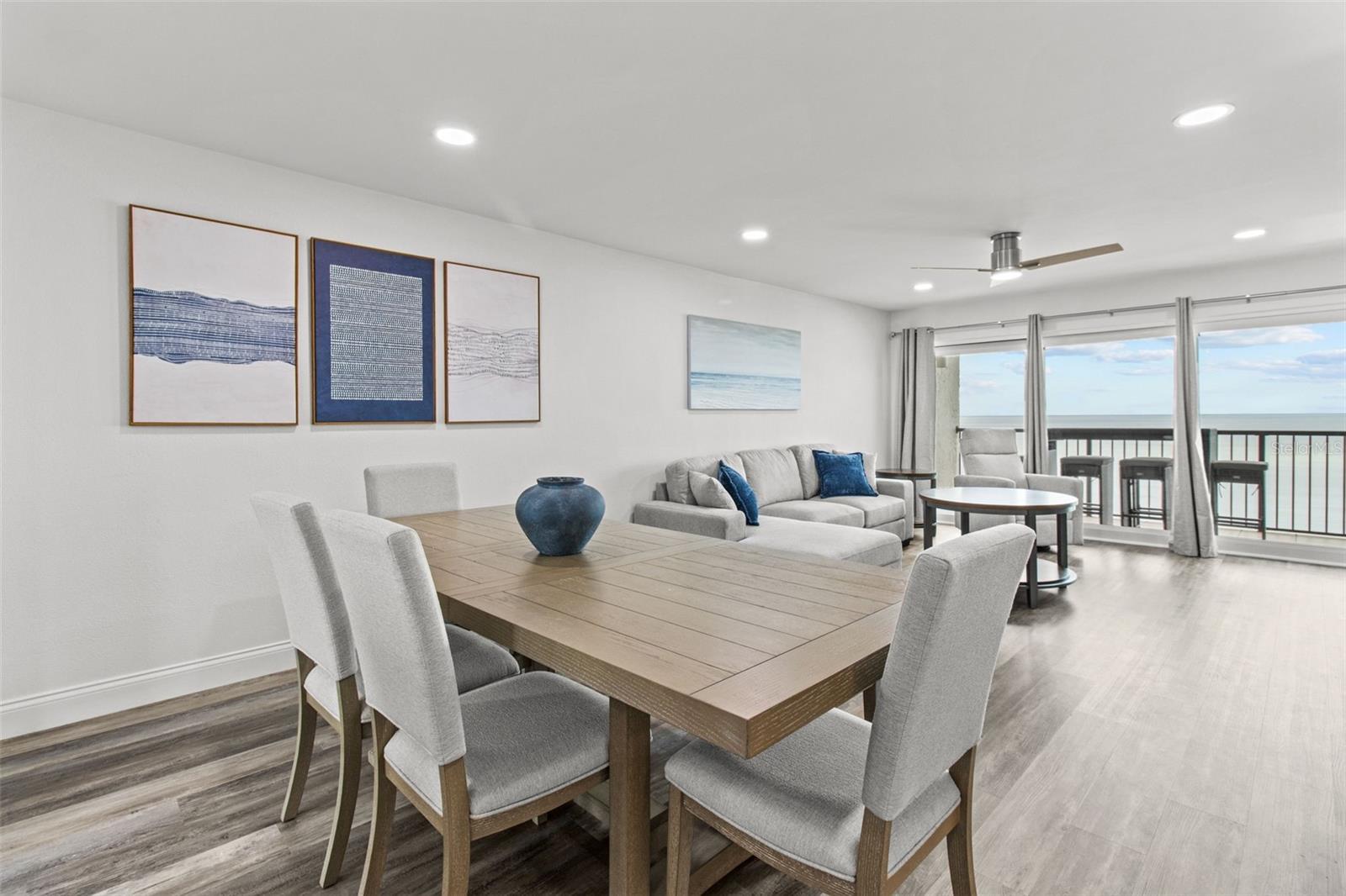 Architectural Digest on the Gulf Welcome to a residence where design and coastal beauty meet in perfect harmony. This exquisite 2-bedroom, 2-bath condo has been elevated to a standard worthy of Architectural Digest, with every detail thoughtfully curated and every finish chosen for both sophistication and comfort. At the heart of the home, the gourmet kitchen impresses with a striking island, custom cabinetry, wine bar, and professional-grade stainless steel appliances. Wide-open living and dining spaces are framed by brand-new hurricane-rated windows and sliding doors, showcasing breathtaking, unobstructed views of the Gulf of Mexico. The primary suite is a sanctuary of style, with serene water views and a spa-inspired en suite bath. Guests will feel equally indulged in the second bedroom, paired with its own elegantly updated bath. A discreet laundry closet with full-size washer and dryer enhances convenience without compromising the sleek design. Step onto your private balcony and let the romance of coastal living surround you—sunsets that set the horizon ablaze, dolphins and manatees playing in the surf, and the soothing rhythm of waves that feels like your own personal soundtrack. Beyond beauty, this condo also offers remarkable value. With a two-week rental policy, it presents excellent investment potential as both a luxurious personal retreat and an income-generating opportunity. Ocean Sands pampers residents with resort-style amenities: a beachfront heated pool and spa, shuffleboard courts, tiki hut, BBQ area, and direct access to one of Florida’s most beloved stretches of sand. Reserved under-building parking ensures peace of mind and convenience. More than a home, this is an experience—where luxury design, smart investment, and the magic of the Gulf Coast all come together.