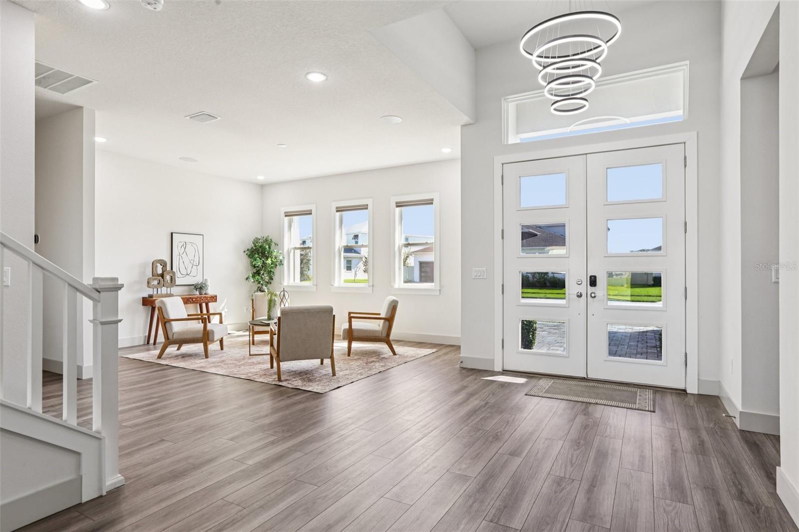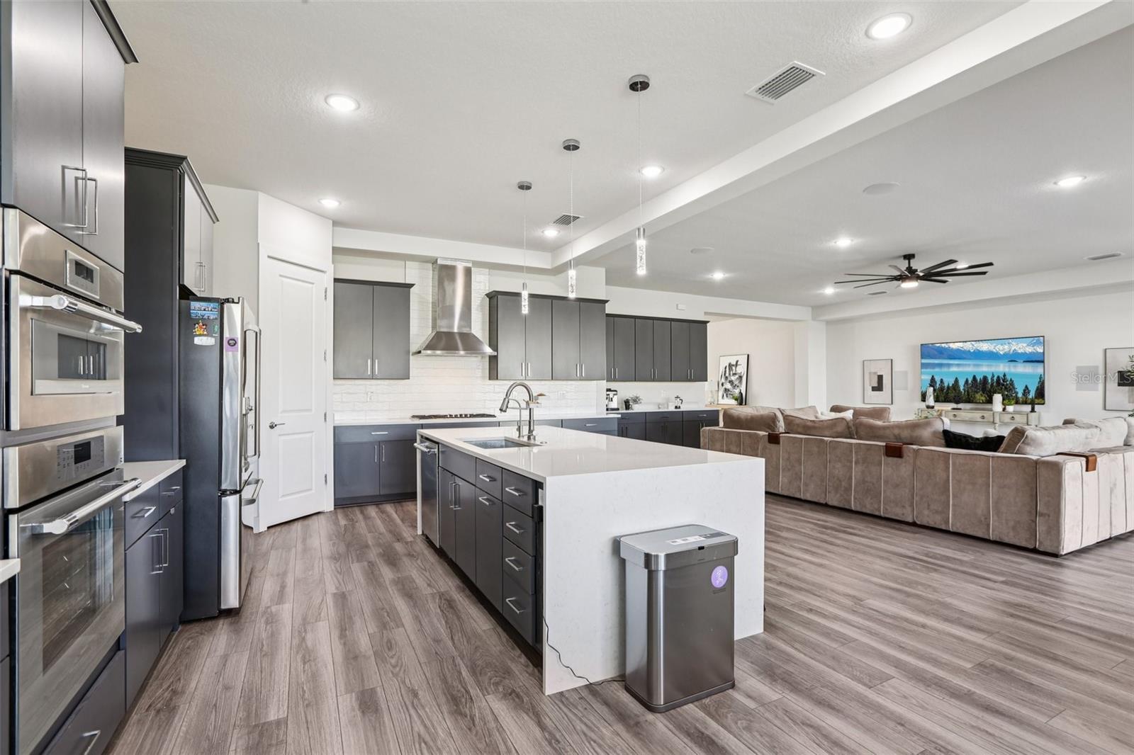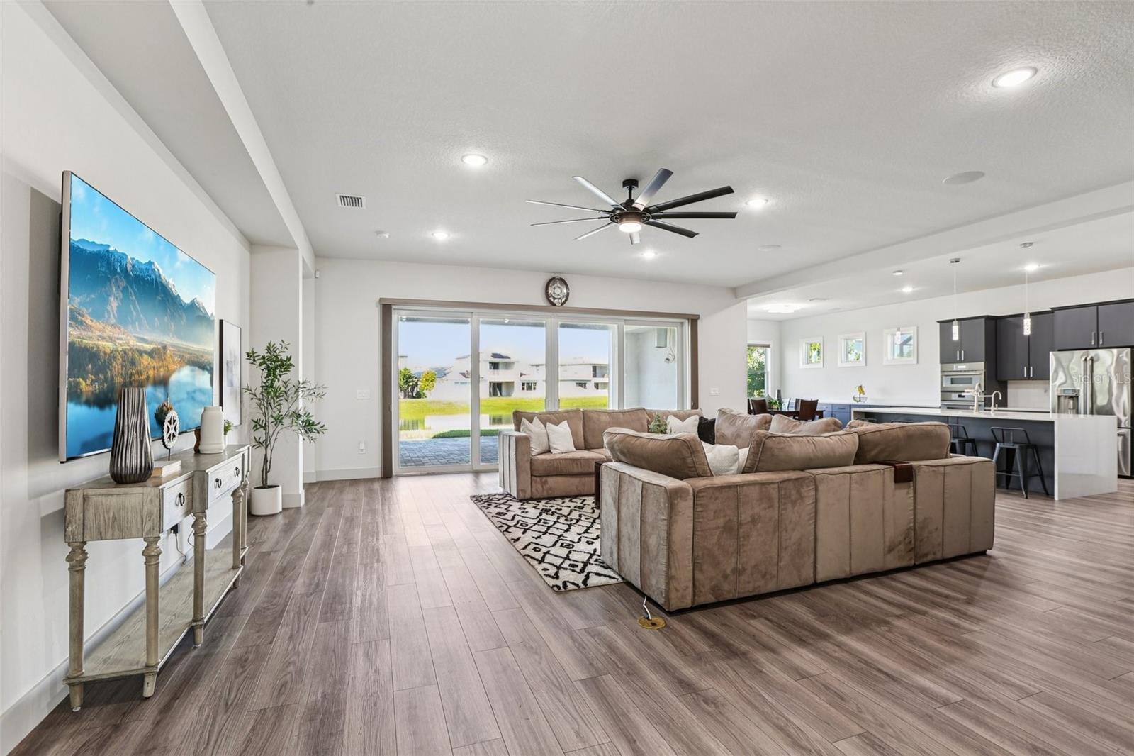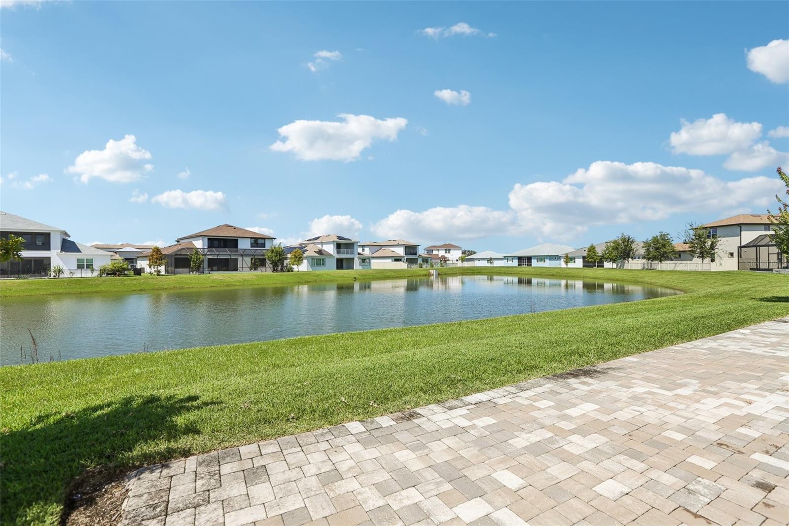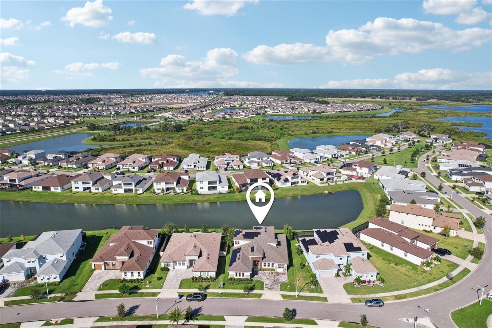 One or more photo(s) has been virtually staged. Seller very motivated!!!! STUNNING WATERFRONT HOME in exclusive gated community! This exceptional 6BR/4BA residence sits on one of the most desirable water-view lots in this 80-home enclave. Open floor plan showcases a gourmet kitchen with upgraded Thermador appliances (range, oven, microwave, dishwasher), stone counters, wall oven, extended cabinetry with coffee/wine station, and buffet bar perfect for entertaining. First-floor primary suite features water views, a large walk-in closet, and a spa-like ensuite with dual sinks and a huge walk-in shower. Three additional bedrooms with walk-in closets are also on the main level. BONUS: Private in-law suite with kitchenette - perfect for multi-generational living or rental income. Upstairs loft connects two more bedrooms and a bath, plus a media room with a projector screen and balcony overlooking nature with no backyard neighbors. PREMIUM UPGRADES: 29KW solar panels, whole-home water softener/distilled water system, Cat 6 cabling throughout, 30 premium speakers with 3 subwoofers, mosquito mist system, custom cabinetry in mud room/laundry/office, luxury vinyl plank main level with carpet upstairs, complete gutter system, garage with Floortex Polyaspartic coating, overhead storage racks, slat walls, and bike racks. Home warranty through 2027 included. Covered paver patio with serene water views. VASTU COMPLIANT: Thoughtfully oriented to promote well-being, prosperity, and harmonious living. The Epperson community offers lagoon access with 7 acres of crystal-clear water, a swim-up bar, kayaking, paddleboarding, cabanas, live music, golf cart parades, top-rated schools, and included high-speed internet. Minutes from shopping/dining, 35 minutes to Tampa International Airport. KEY FEATURES *Gated waterfront community* Open floor plan* Gourmet kitchen with Thermador appliances* First floor primary suite* In-law suite with kitchenette* Media room with projector* 29KW owned solar system* Premium sound system (30 speakers/3 subs)* Whole-home water treatment* Professional garage organization system* No backyard neighbors* Resort-style community amenities* Home warranty included through 2027*- See attached floor plans and documents.
