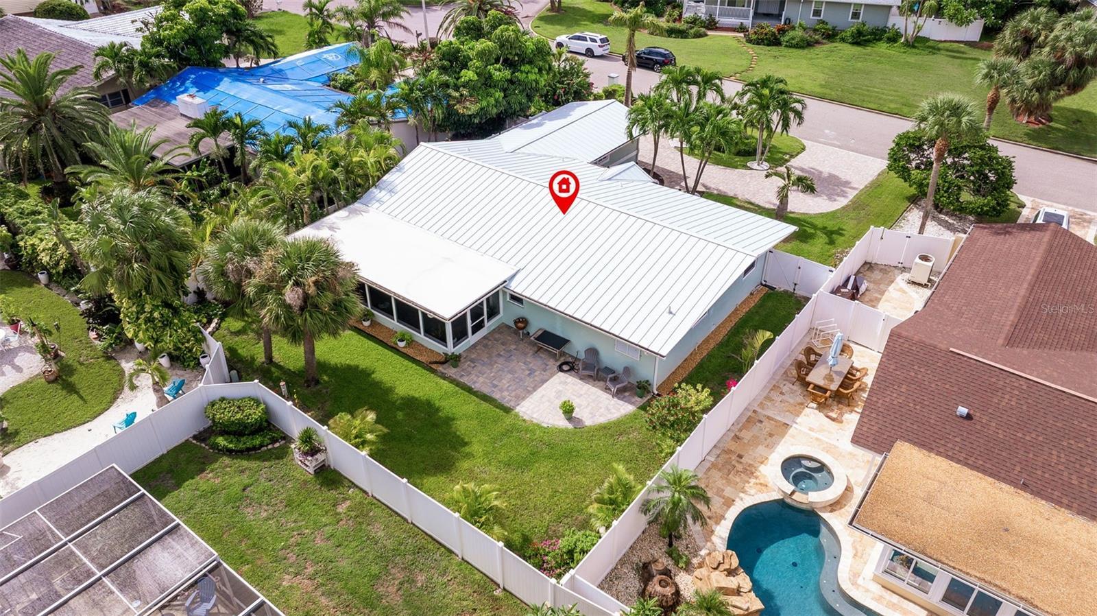 NEW PRICE! Warm, Welcoming, and Wonderfully Updated – Your Ideal Home in Tierra Verde! Tucked away in the heart of Tierra Verde, this beautifully refreshed 3-bedroom, 2-bath home combines effortless charm with modern convenience—offering a peaceful, low-maintenance lifestyle just moments from the water. With exceptional curb appeal and every detail already taken care of, all that’s left to do is move in and make yourself at home. From the moment you arrive, the inviting circular driveway, lush landscaping, and new front door create a sense of warmth and welcome. Step inside to sunlit living spaces wrapped in soft, neutral tones and framed by elegant plantation shutters. Restored travertine flooring adds timeless style and is a breeze to maintain—perfect for everyday island living. The open-concept layout seamlessly connects the living, kitchen, and dining areas, making it easy to entertain or simply enjoy a cozy night in. The contemporary kitchen is a dream for cooks and hosts alike, with a stunning oversized quartzite island (seats four!), sleek newer stainless steel appliances, a pantry closet, and generous prep space. Throughout the home, thoughtful updates provide peace of mind, including a brand-new metal roof, (2024) impact-rated windows and doors, new gutters, updated plumbing from street to house, an energy efficient water heater (2019), and a new AC (2019/2024) all in excellent condition. NO FLOOD HISTORY, no popcorn ceilings, no stress—just easy, comfortable living. Both bathrooms have been completely remodeled with stylish, high-end finishes including a dual-sink vanity for the master. The indoor laundry room is conveniently located just off the kitchen—practical, polished, and perfect for everyday life. Step outside to your private backyard oasis—beautifully landscaped with palm trees, orchids, and a charming stone path that invites quiet morning walks or evening reflection. There’s even space to add a pool, although the screened-in patio may quickly become your favorite spot to unwind, host friends, or enjoy the gentle island breeze. The one-car garage offers ample storage options for your tools, toys, and treasures as well as an extra fridge too. With nearby marinas and boat clubs, getting out on the water is as easy as it is tempting. Best of all, you’re just minutes from local restaurants, fishing bridges, and scenic bike paths that lead directly to Fort De Soto Park and award-winning beaches. With easy access to I-275, you’re only 10 minutes from vibrant Downtown St. Pete offering world-class dining, shopping, culture, and sports whenever you want it. Whether you’re looking for a peaceful retreat, a coastal getaway, or a full-time island home, this Tierra Verde gem checks every box. Stylish, serene, and fully move-in ready—it’s the perfect place to put down roots and start your next chapter. Pool renderings are professionally produced by a certified pool designer who conducted on-site measurements. While conceptual, they accurately reflect the dimensions and layout feasible for the property.