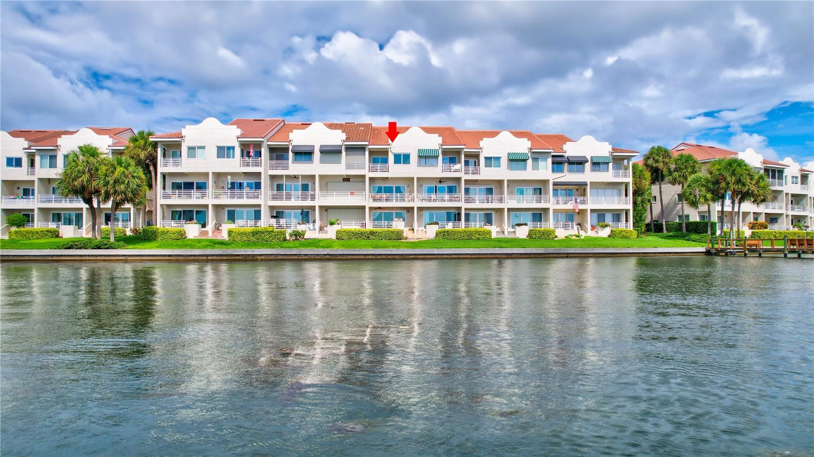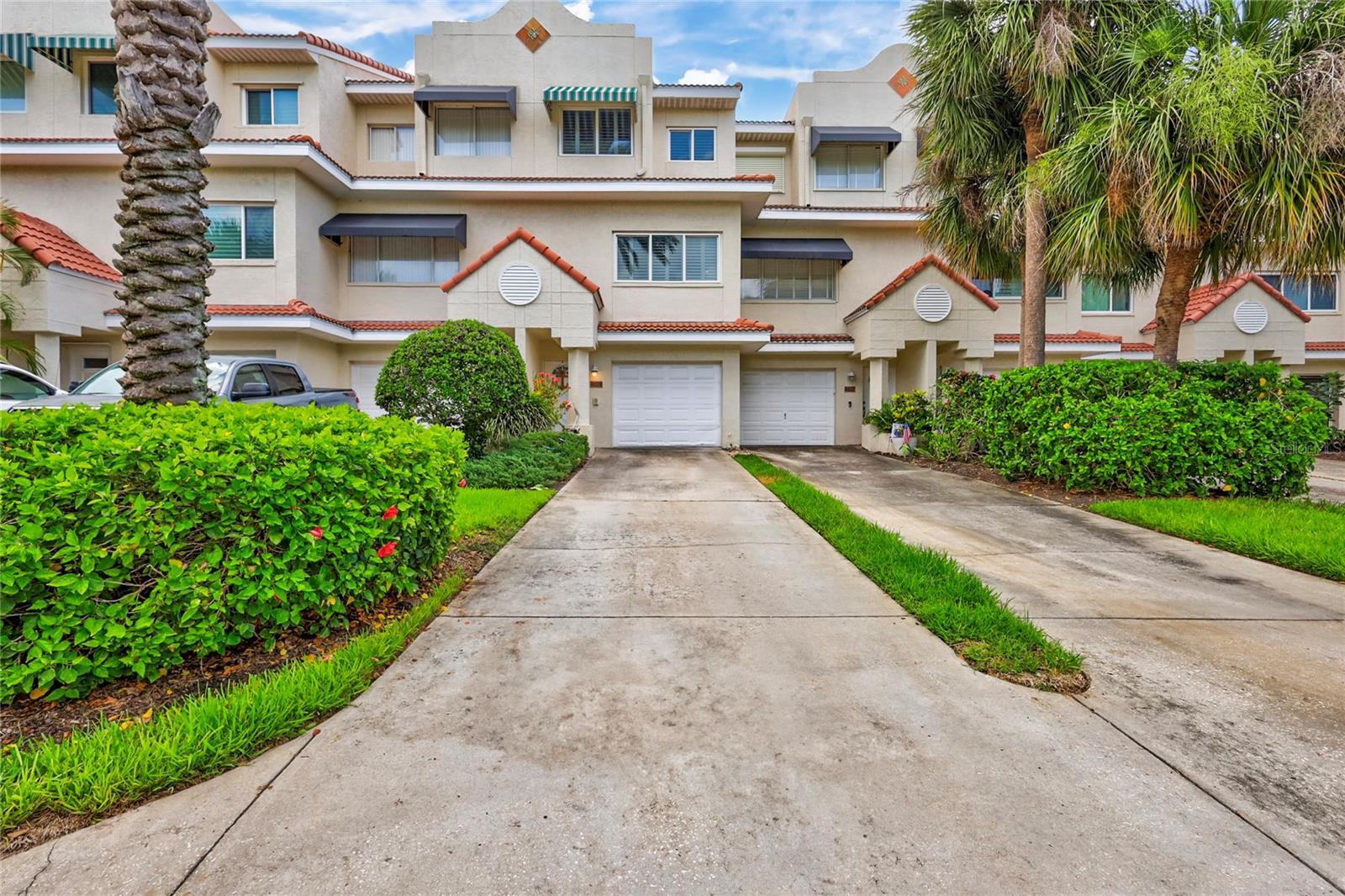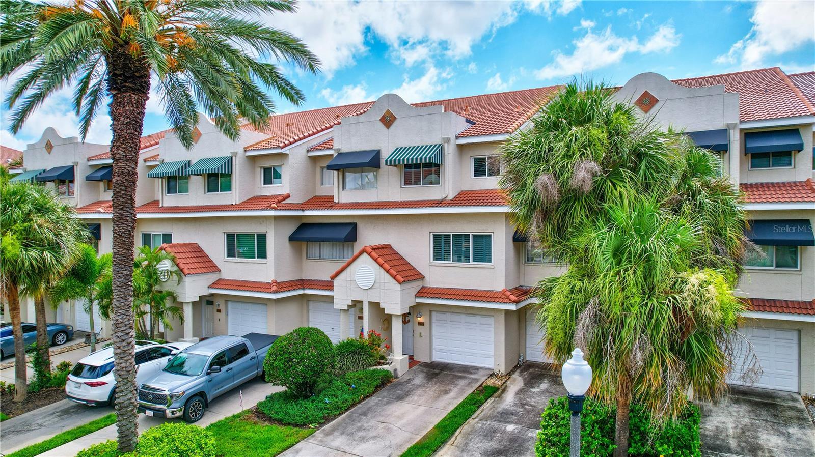 INCREDIBLE VALUE IN THE BEST TOWNHOME COMMUNITY ON THE BEACH - HIGH AND DRY, NO FLOODING! Stunning, executive waterfront townhome nestled in the serene, private enclave of St. Pete Beach. Offering picturesque open water views of Boca Ciega Bay and a relaxed coastal atmosphere, this residence combines coastal charm with modern elegance. The meticulously updated interior includes four bedrooms, four baths, hurricane impact windows and sliders, and luxuriously remodeled bathrooms. The kitchen boasts glass door and solid maple cabinets, stainless steel appliances, and ample storage. Enjoy breathtaking open water views from private balconies on all levels and an extended patio perfect for watching dolphins and manatees glide by. The primary suite features a dramatic vaulted ceiling, open water views with its own private balcony, and two large walk-in closets. The outdoor living is enhanced with a built-in gas barbecue grill set in a stone countertop on the large, extended, first-floor tile patio. This home has many unique details and finishes with modern conveniences including plantation shutters, custom window treatments, an updated HVAC system (2020), a newer hot water heater (2020), a new tile roof (2016), portable generator, and a whole house water filtration and softener system. The one car garage boasts even more storage and a newer epoxy painted floor- use it for parking or a workshop and still be able to park two cars in the driveway. Located in the prestigious Mirabella Estates community, this home is just a short walk to the beach. Residents enjoy amenities such as a heated pool, day dock, kayak launch, fishing pier, and guest parking spots. NO MILESTONE INSPECTION needed, and the very LOA HOA fee covers all landscaping, road care, pool maintenance, recycling, trash pickup, water, sprinklers, high-speed internet, and premium cable TV. Mirabella is also pet-friendly, allowing up to two pets with no weight restrictions. This home can be rented for 3 month minimums. Don't miss this rare opportunity to own a piece of paradise in St. Pete Beach with low HOA fees, luxury updates, and splendid water views. Seller financing is available.